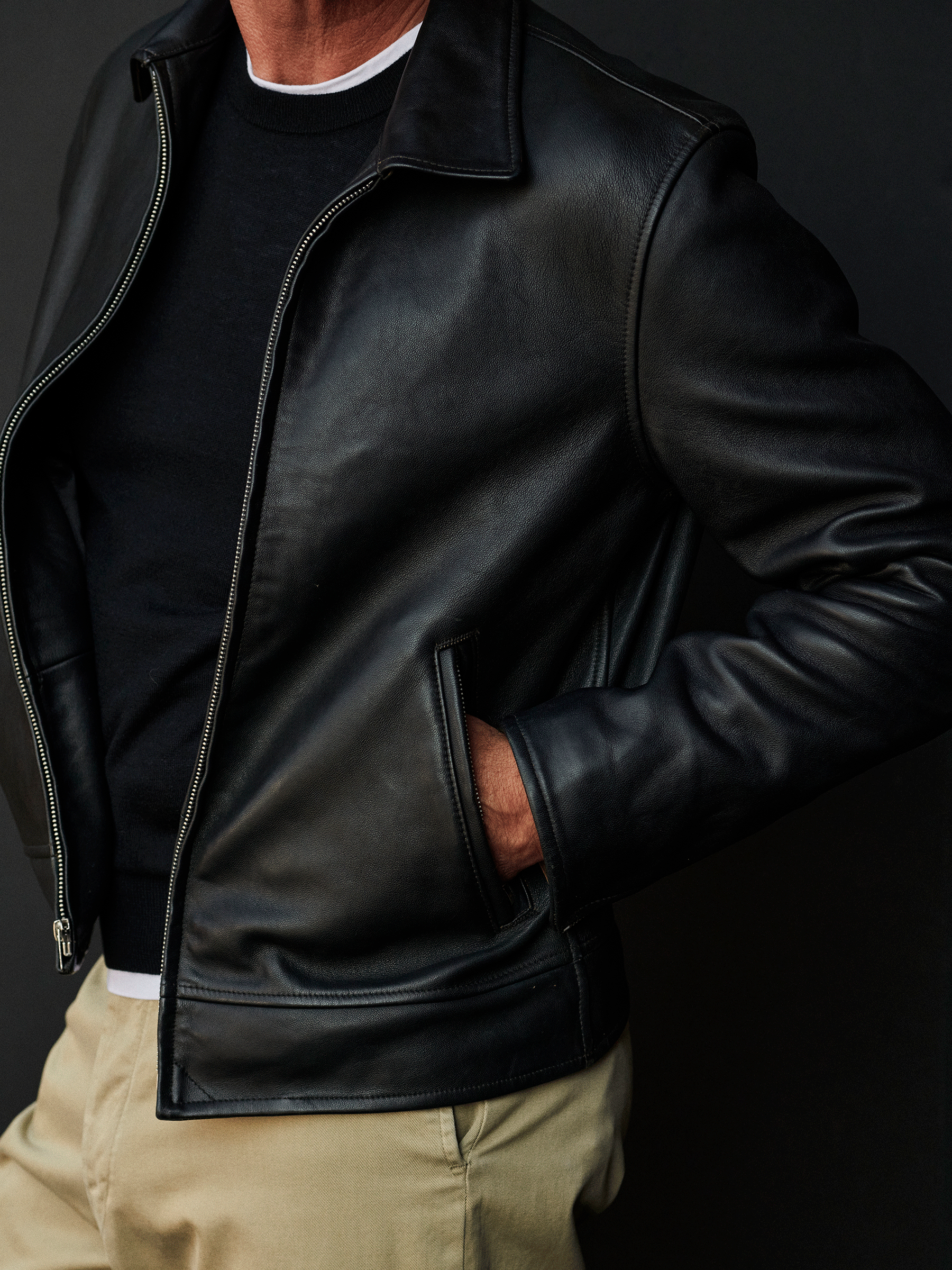 Vintage fit rider jacket hand-cut from semi-vegetable tanned sheepskin.
