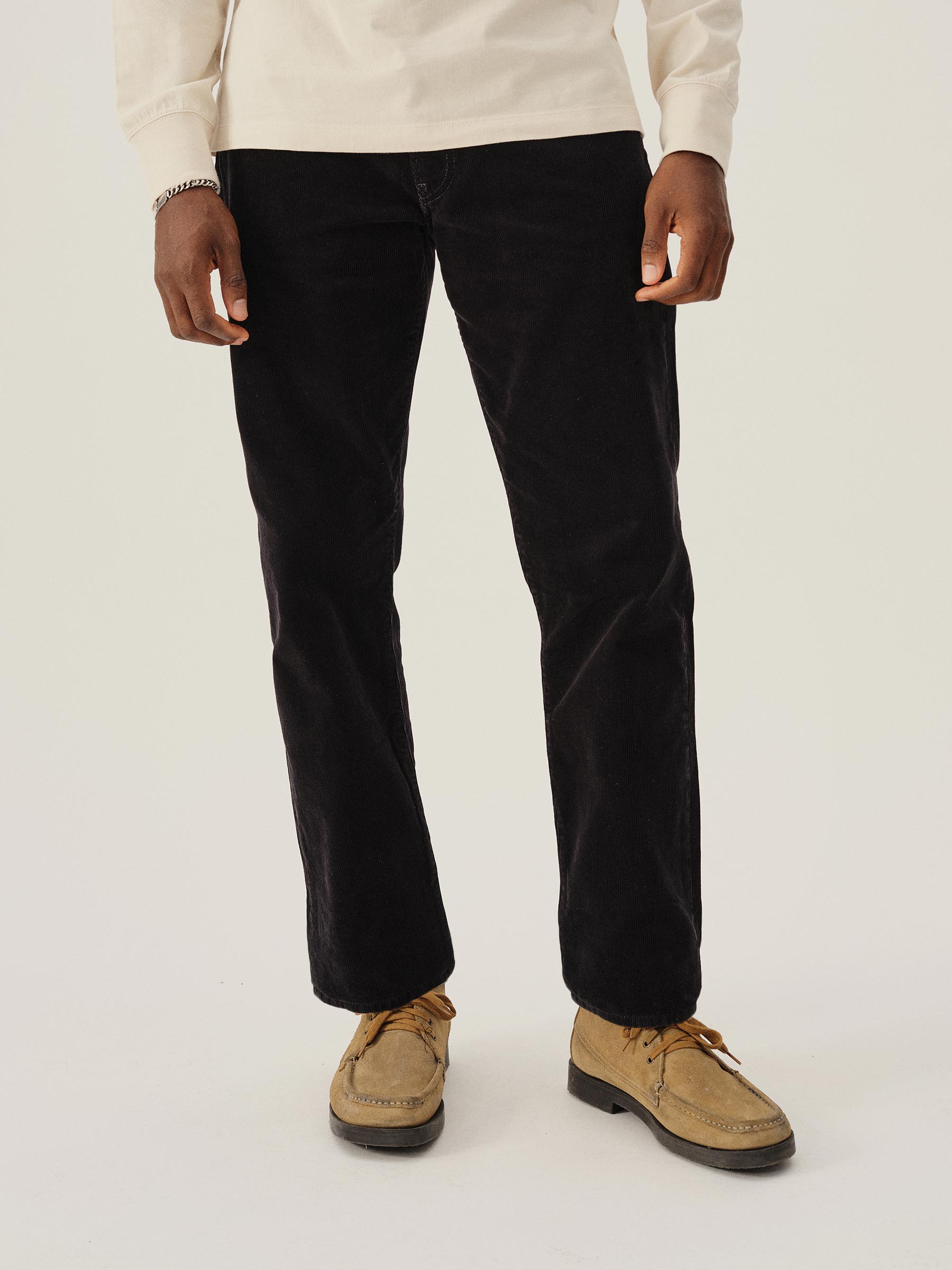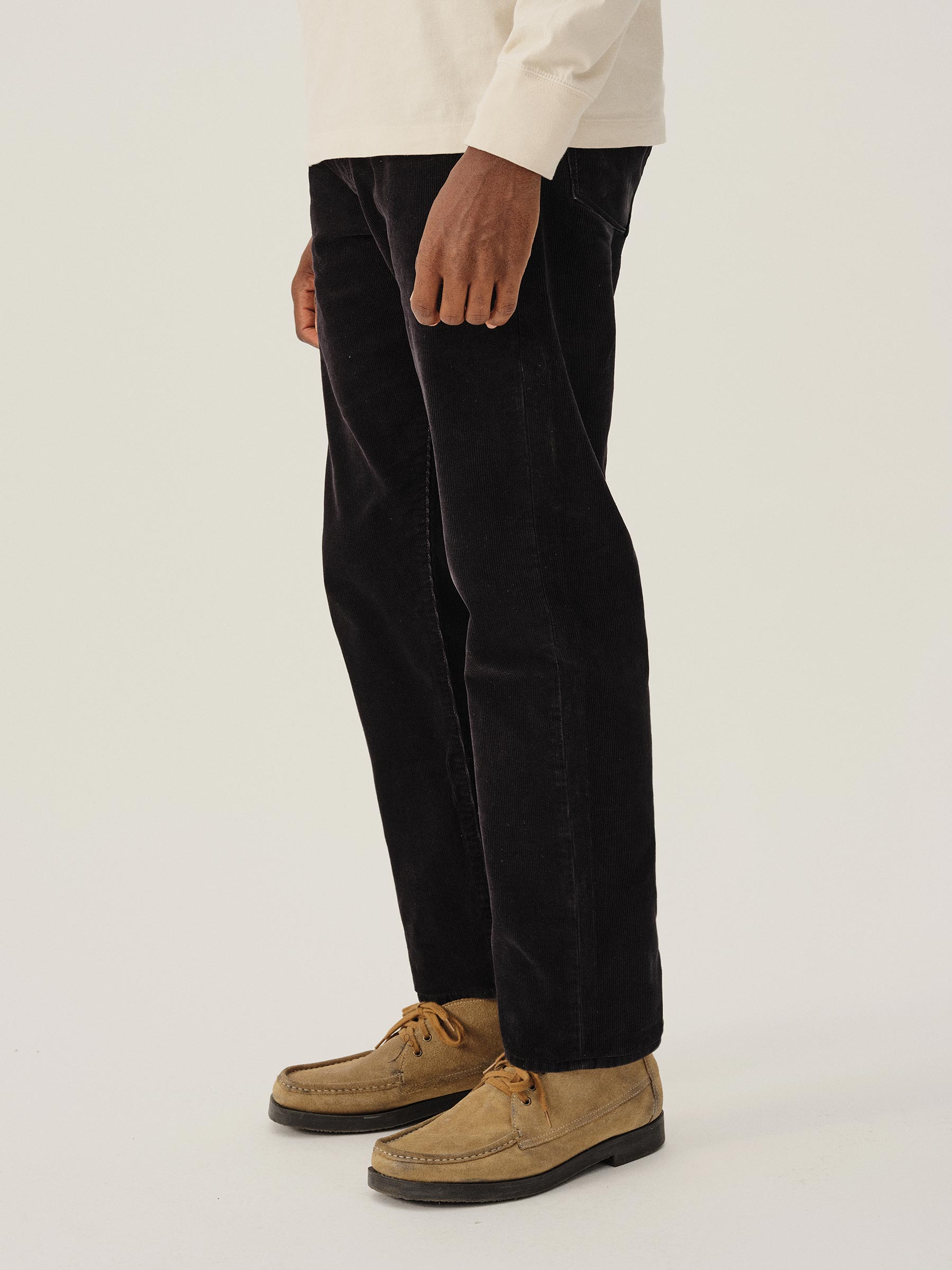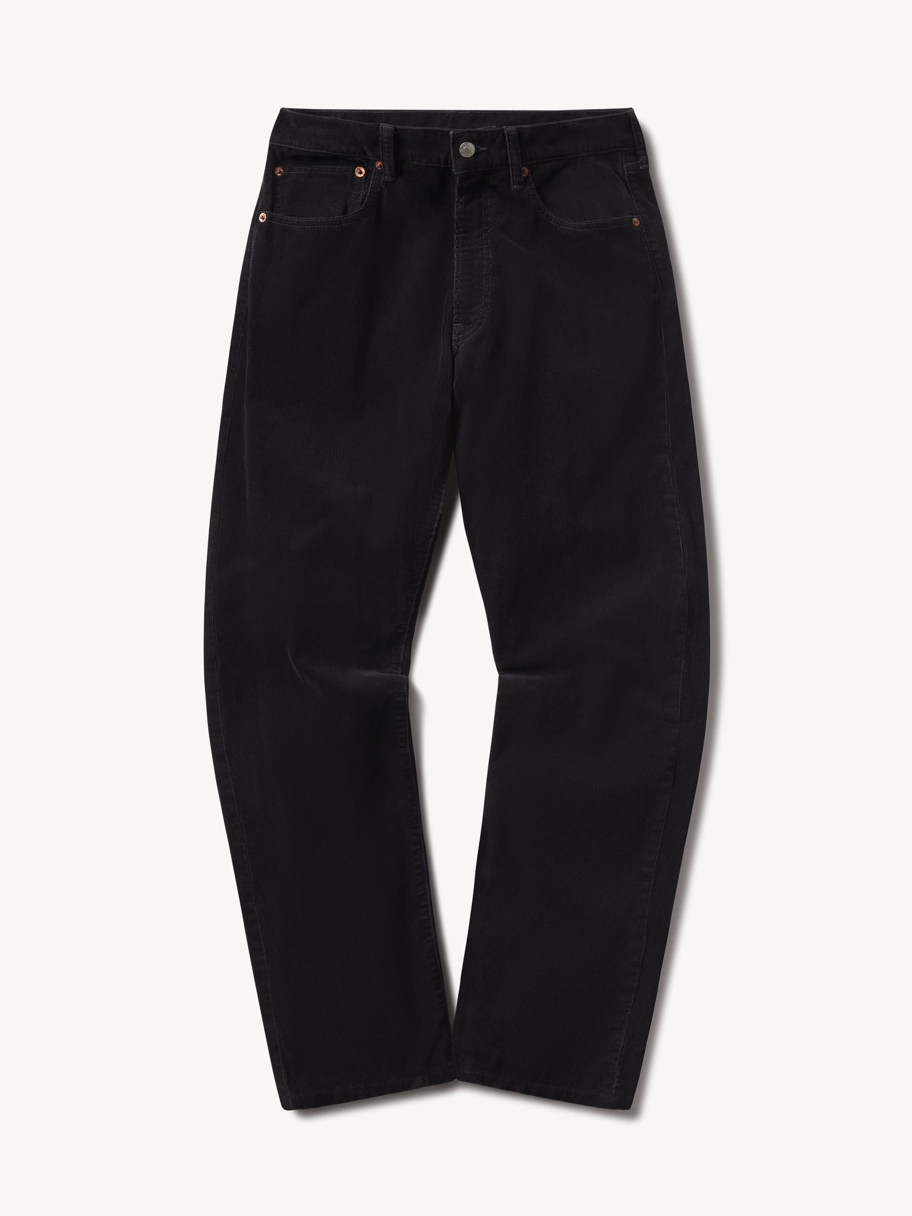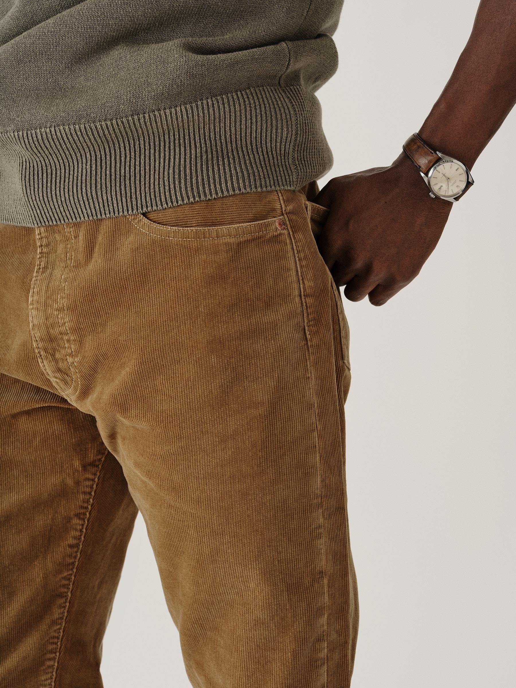 Mid-rise five-pocket jean in 10 oz 14-wale cotton corduroy. Cut with a straight fit through the hip and tapered at the leg.