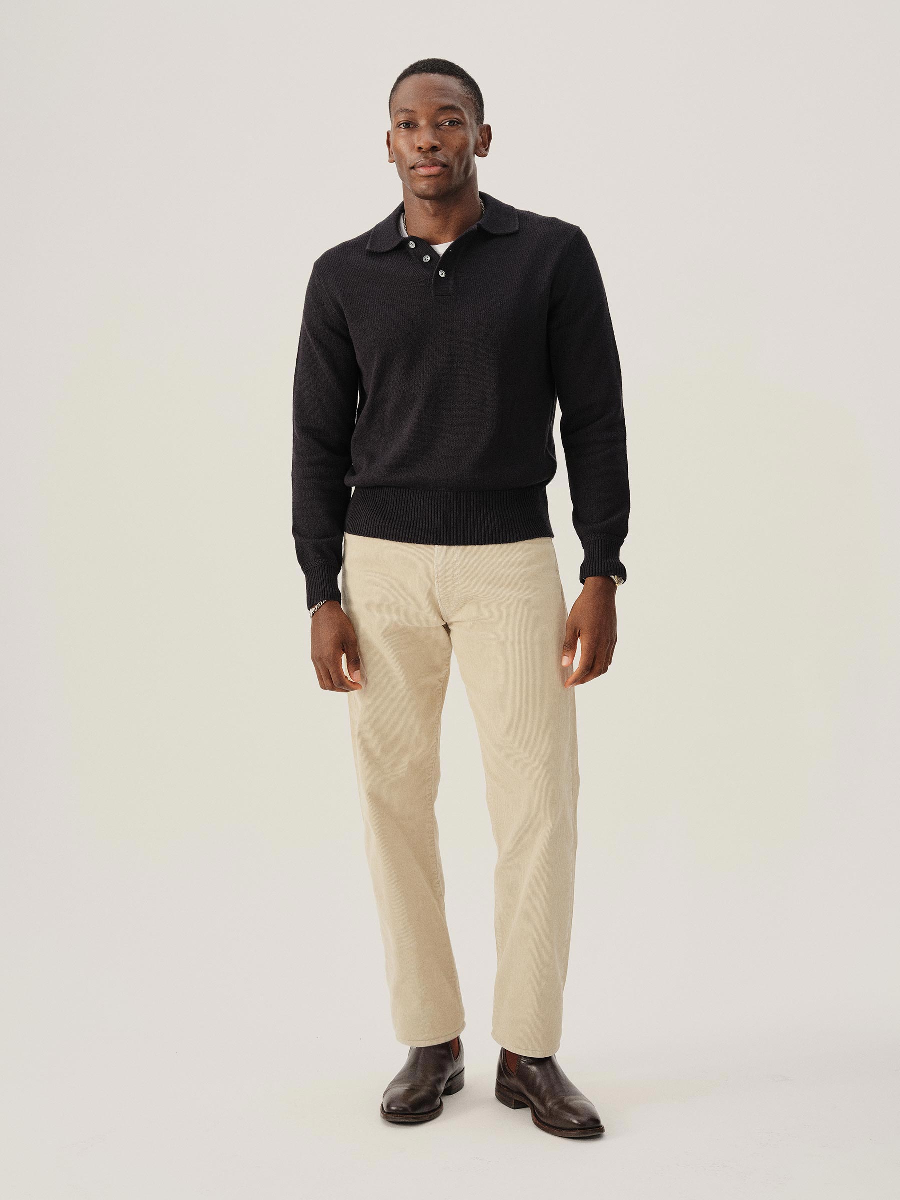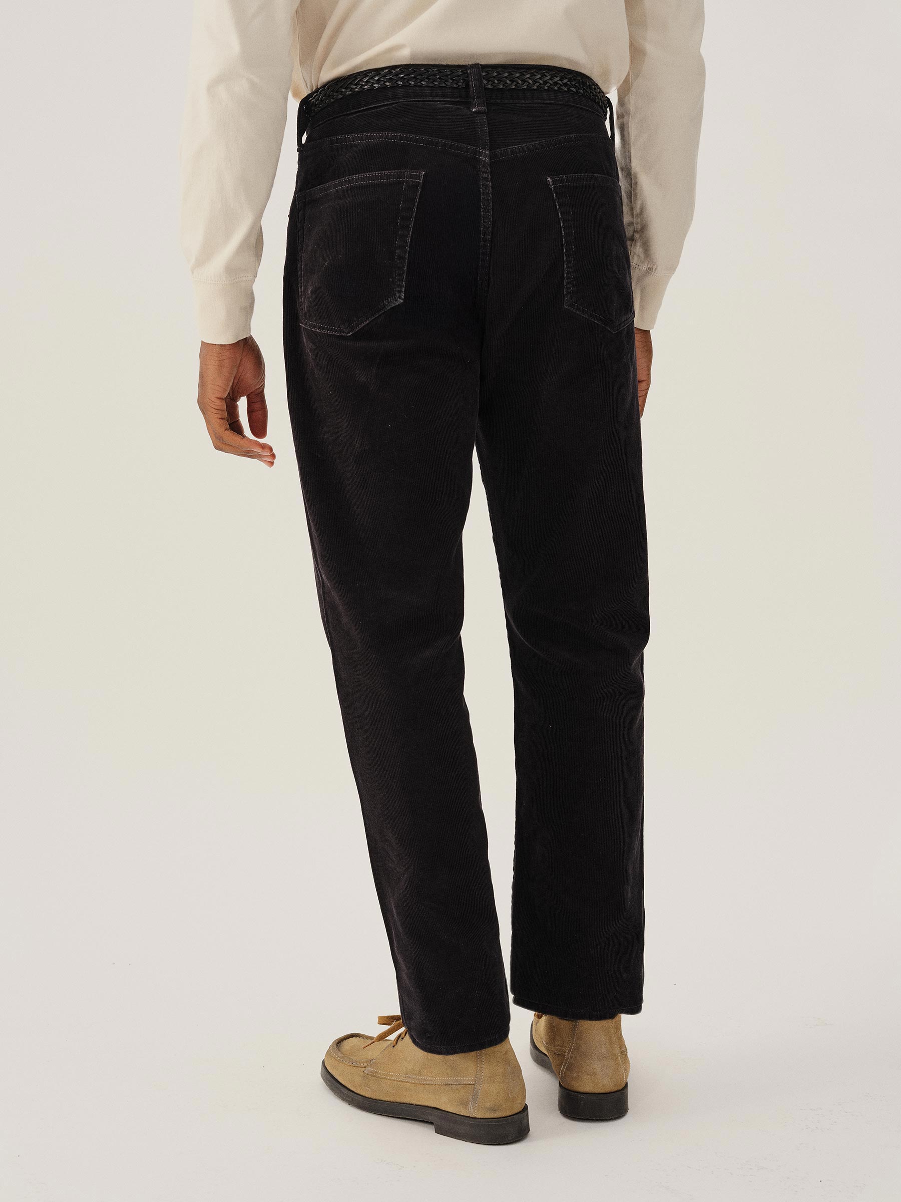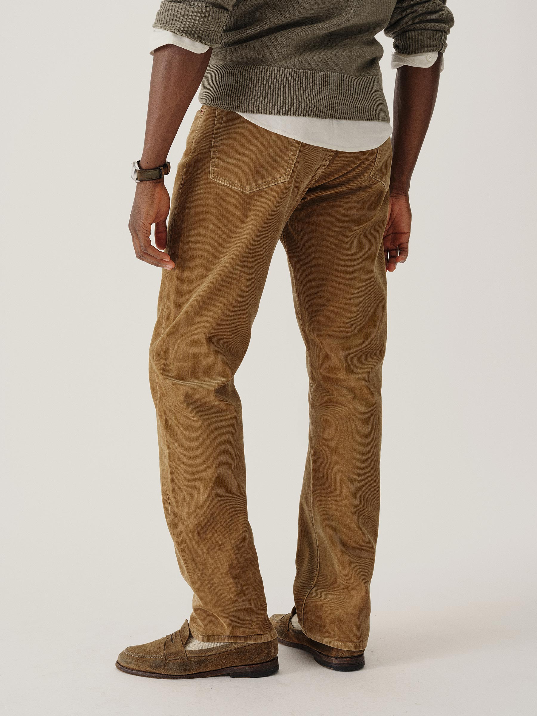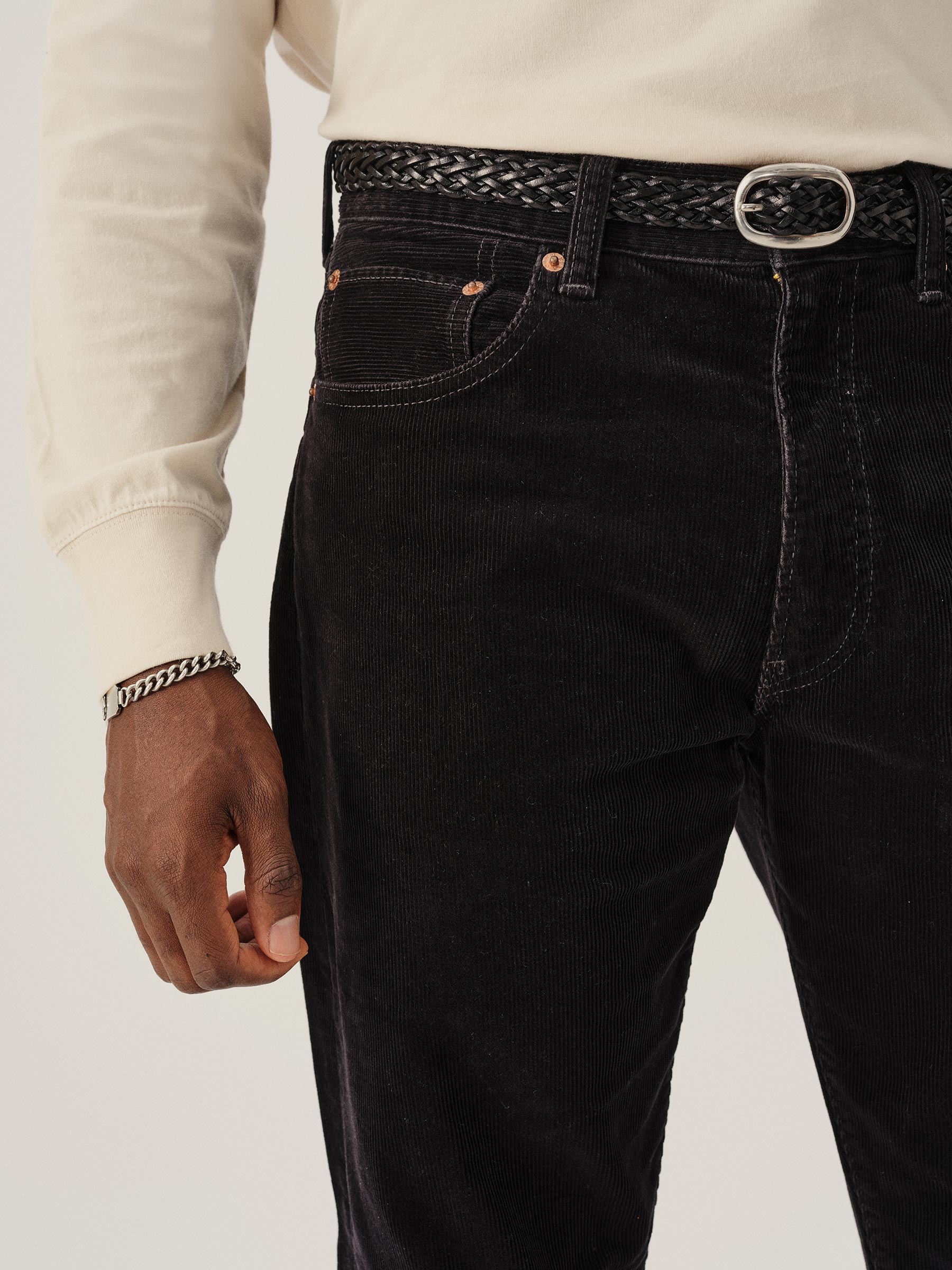 Mid-rise five-pocket jean in 10 oz 14-wale cotton corduroy. Cut with a straight fit through the hip and tapered at the leg.