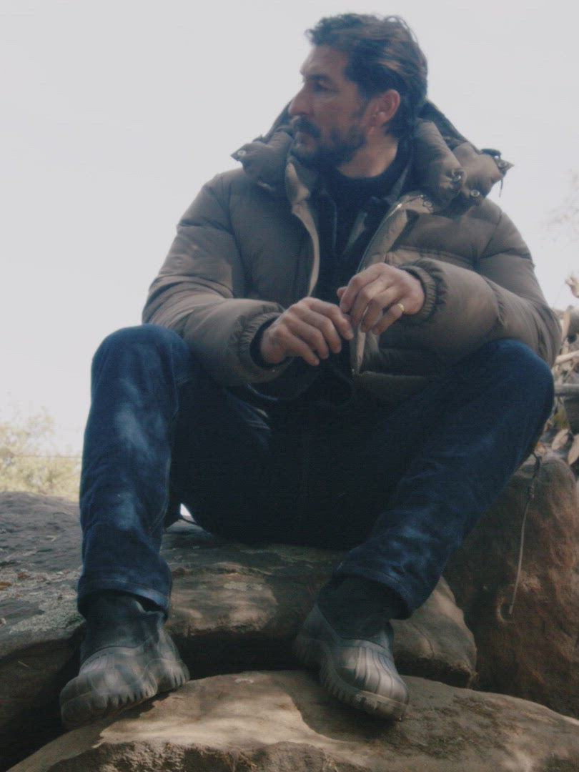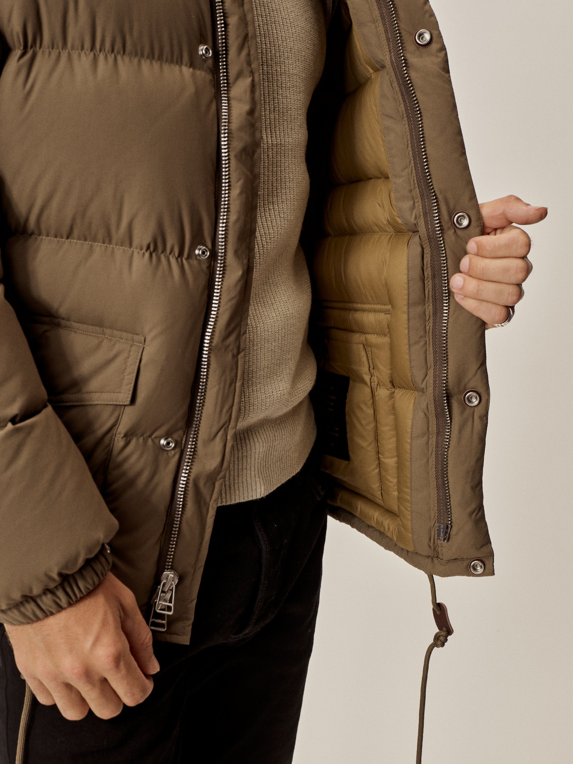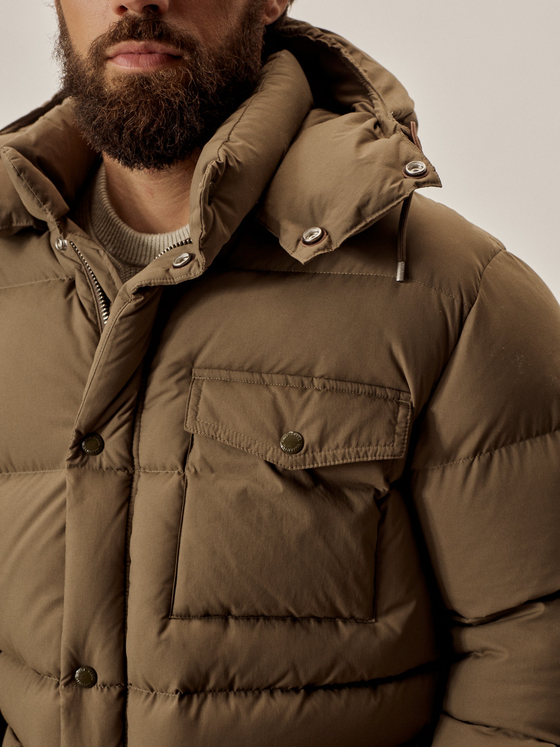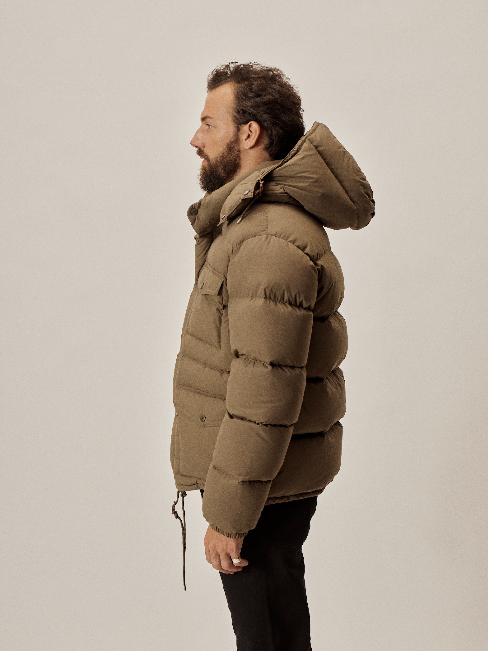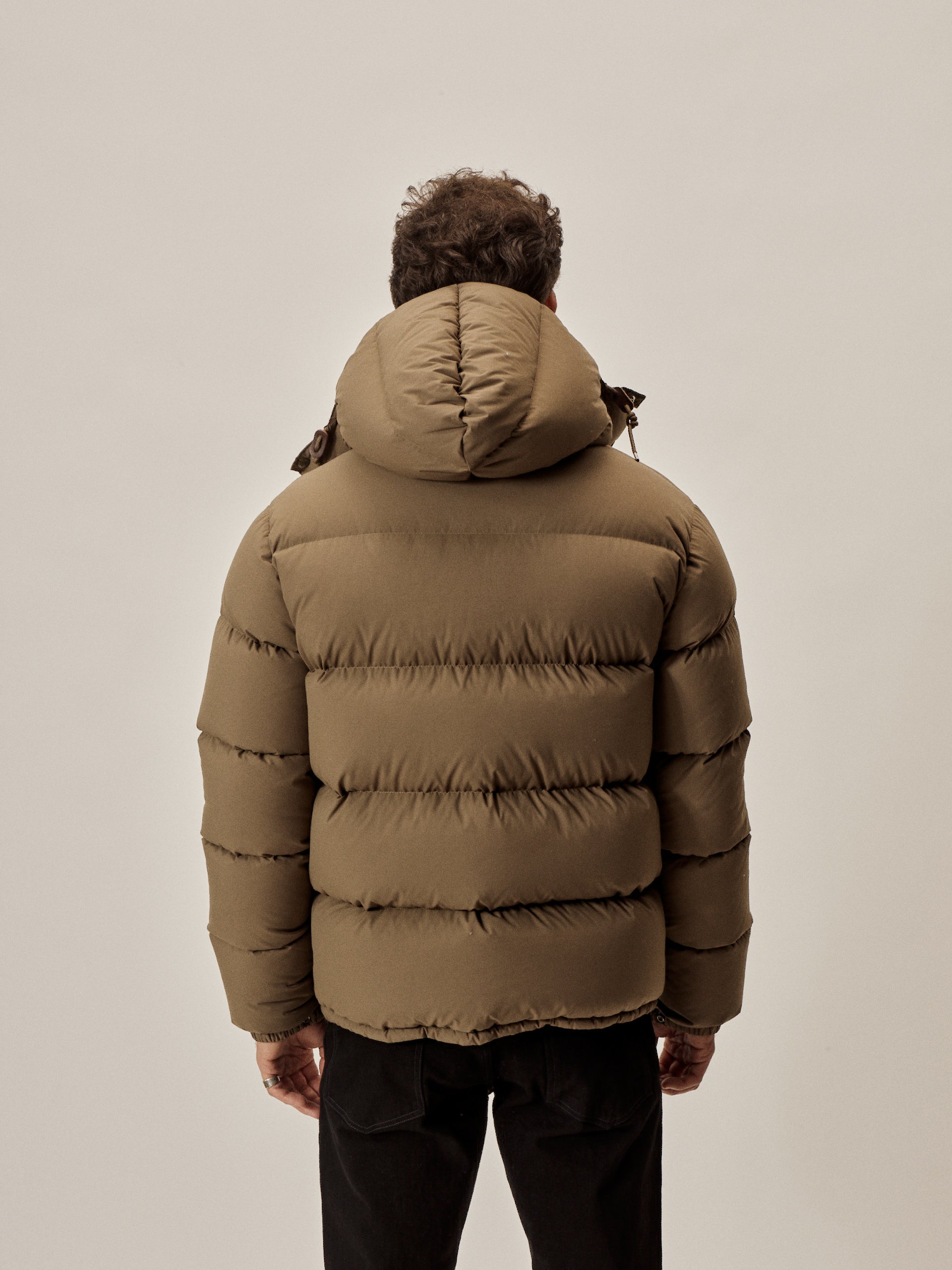 Vintage-inspired down jacket cut from a recycled nylon shell with a durable water resistant coating. 650 fill-power traceable duck down.
