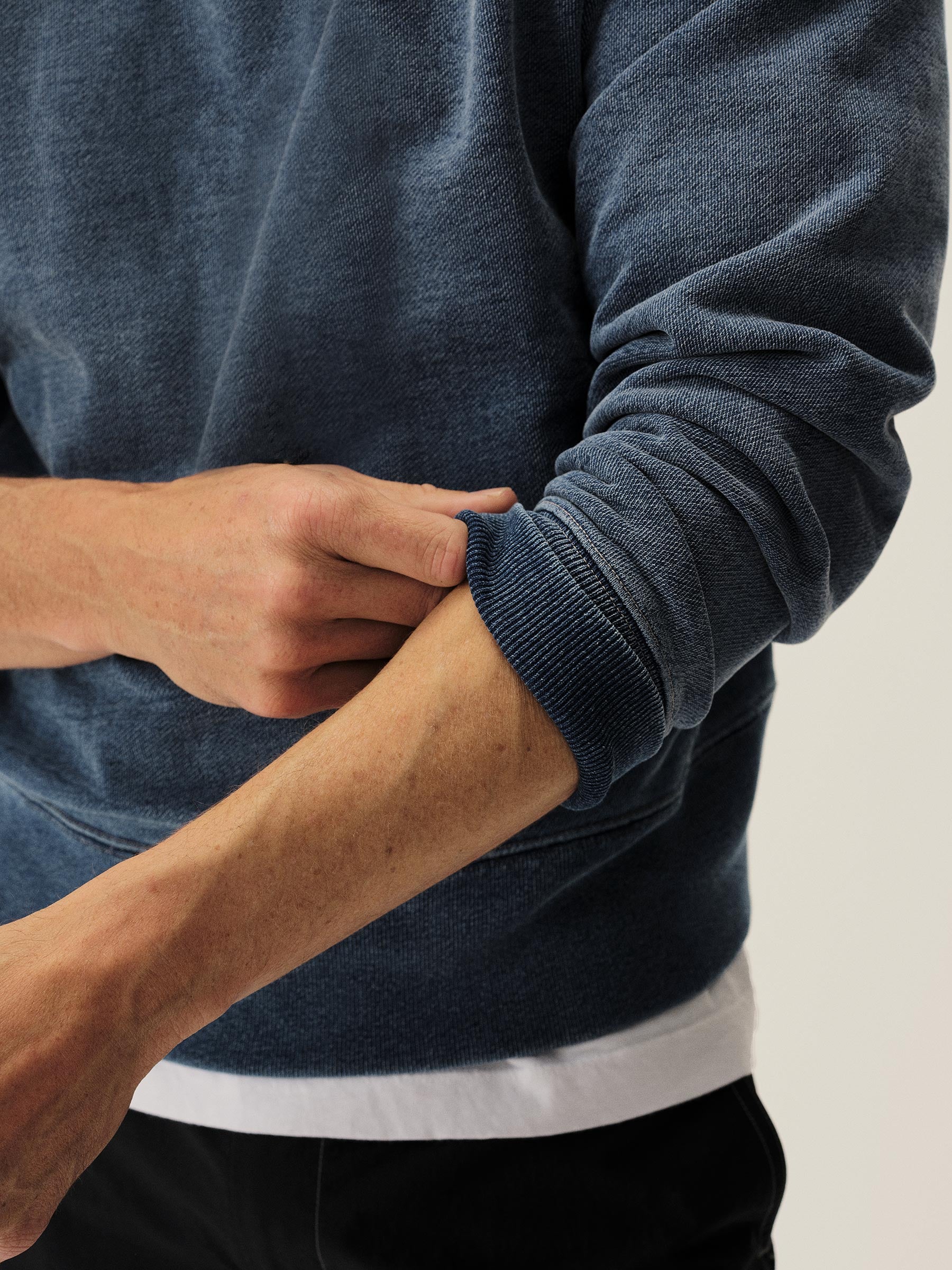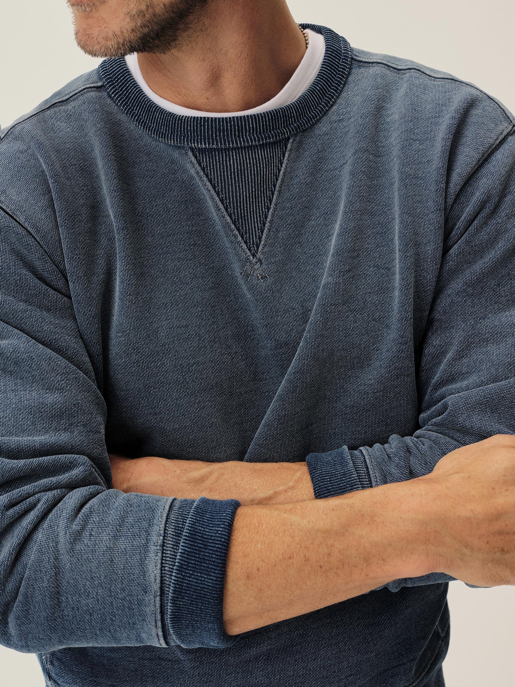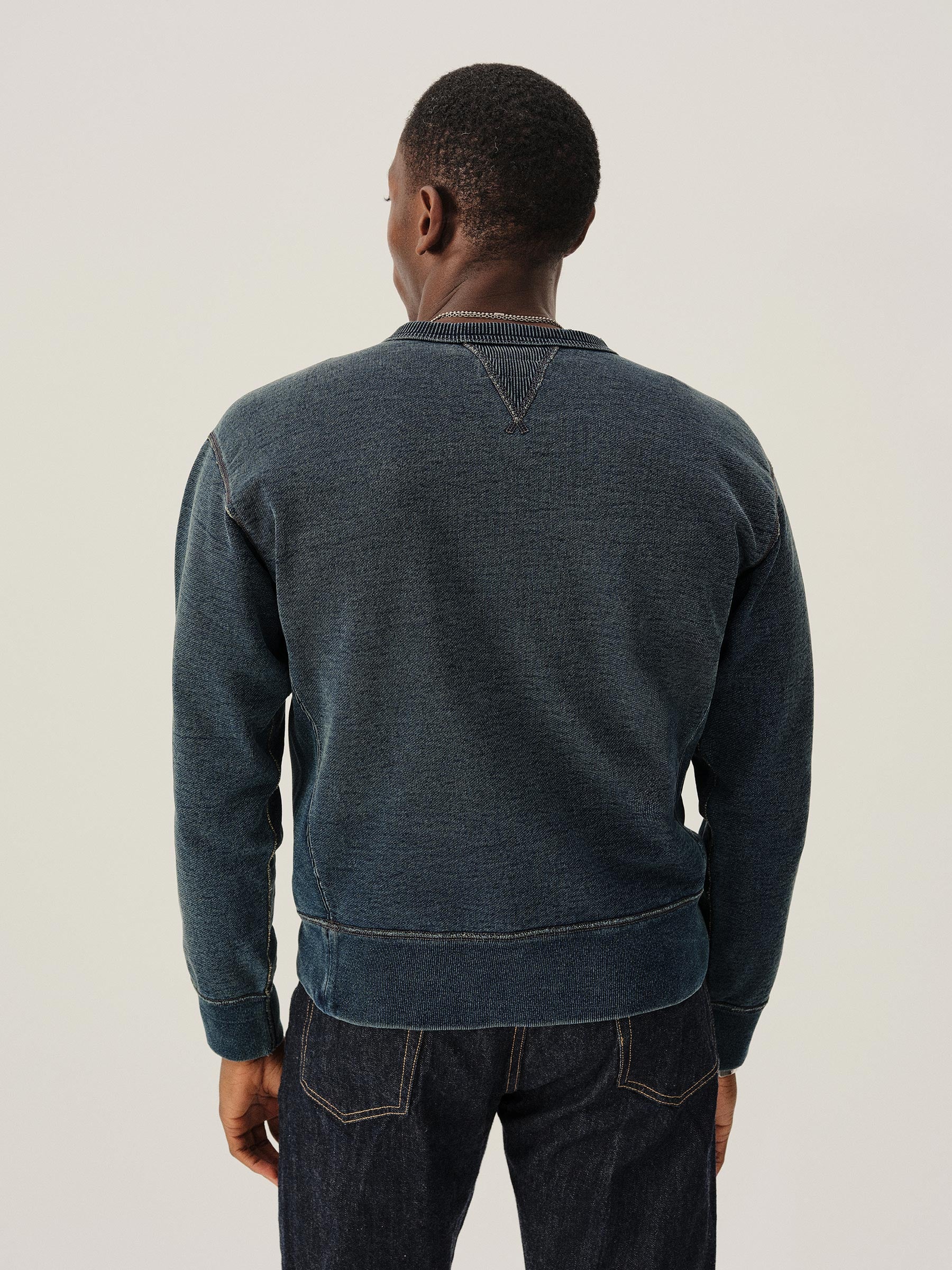 Classic vintage-inspired double-V crewneck sweatshirt made from indigo-dipped dyed French terry.