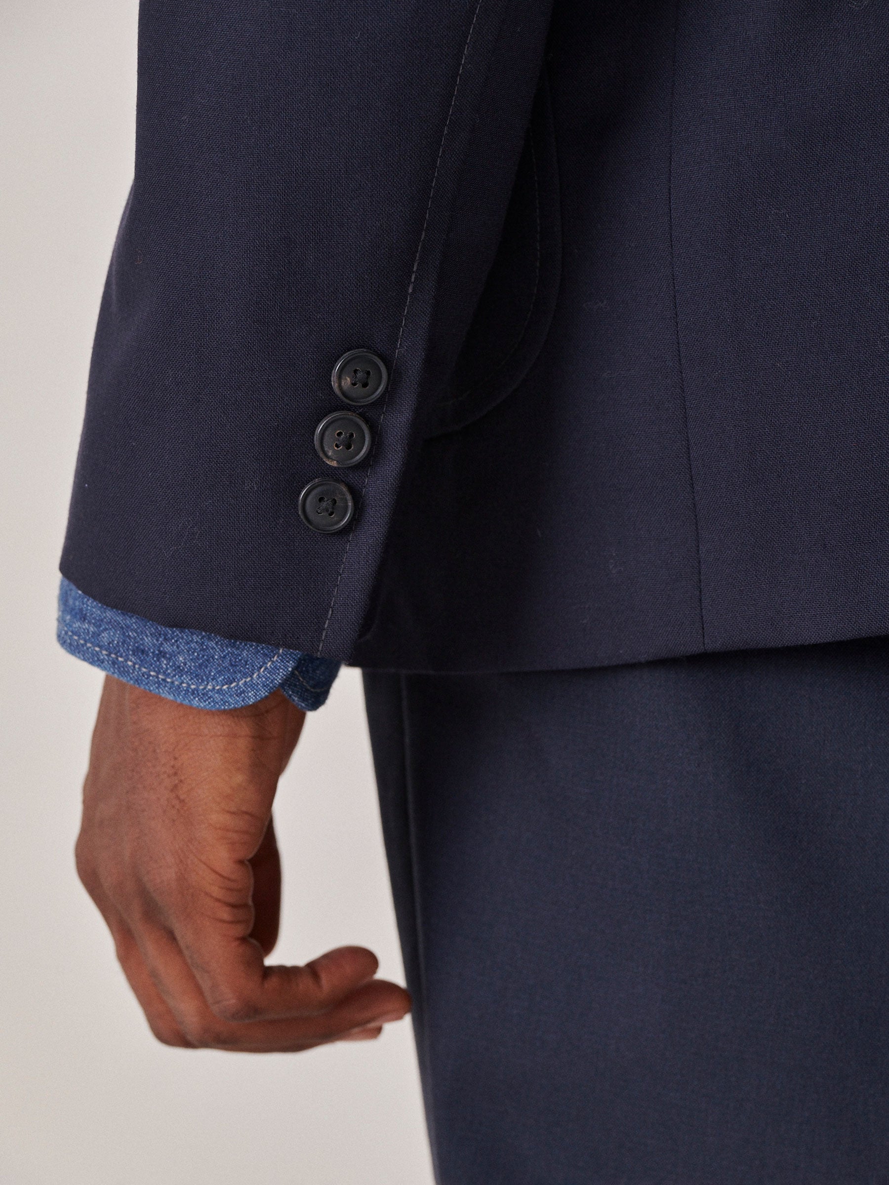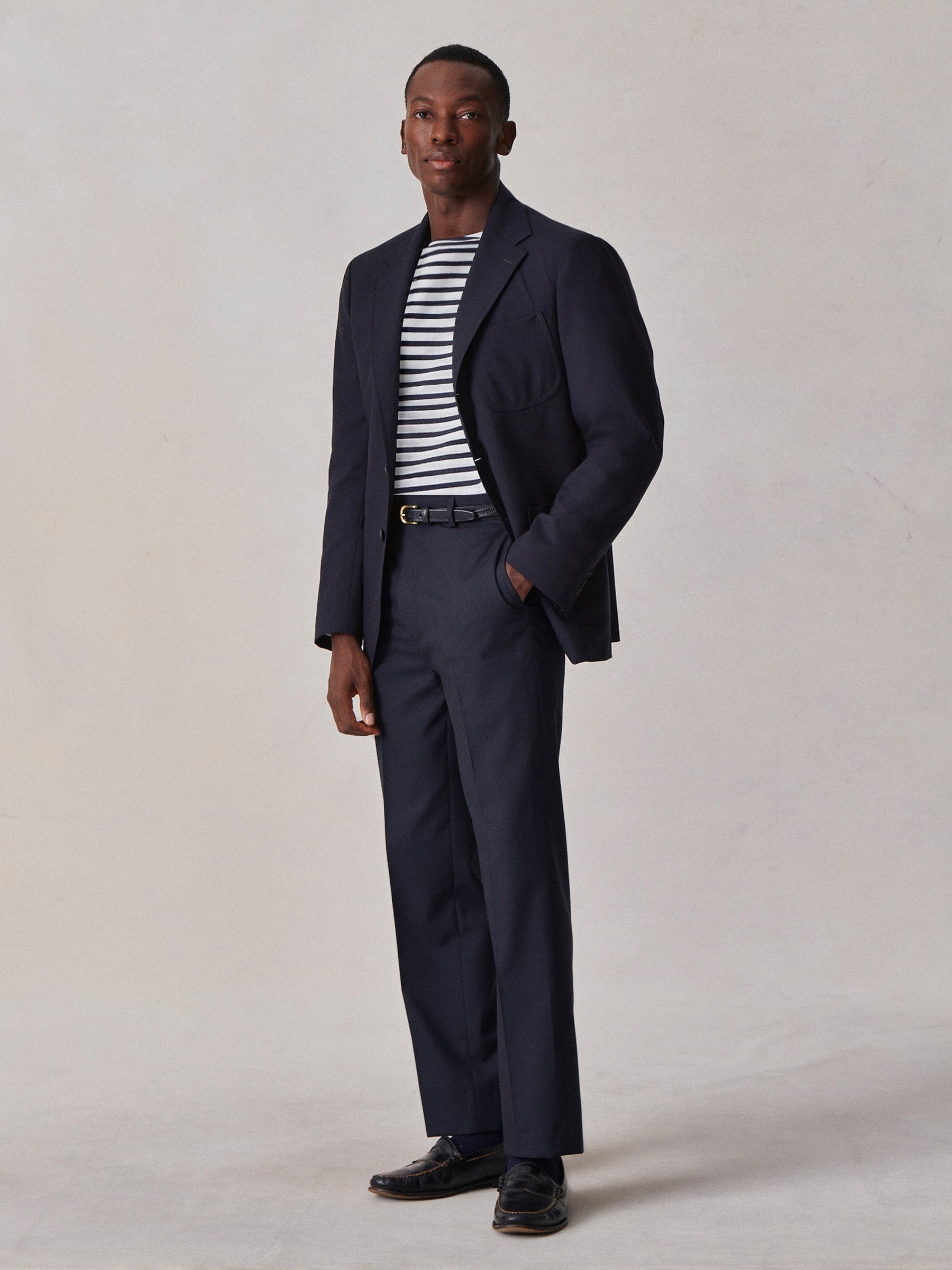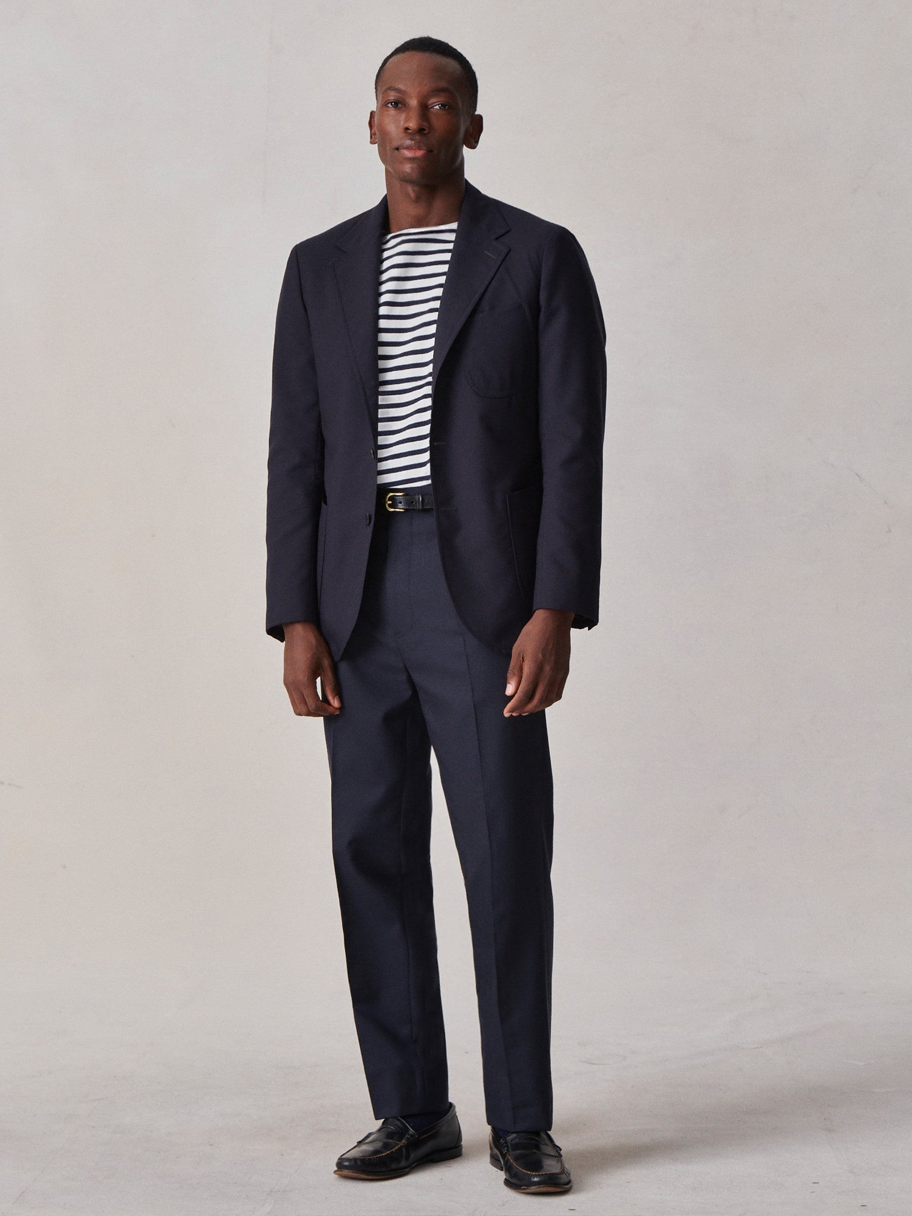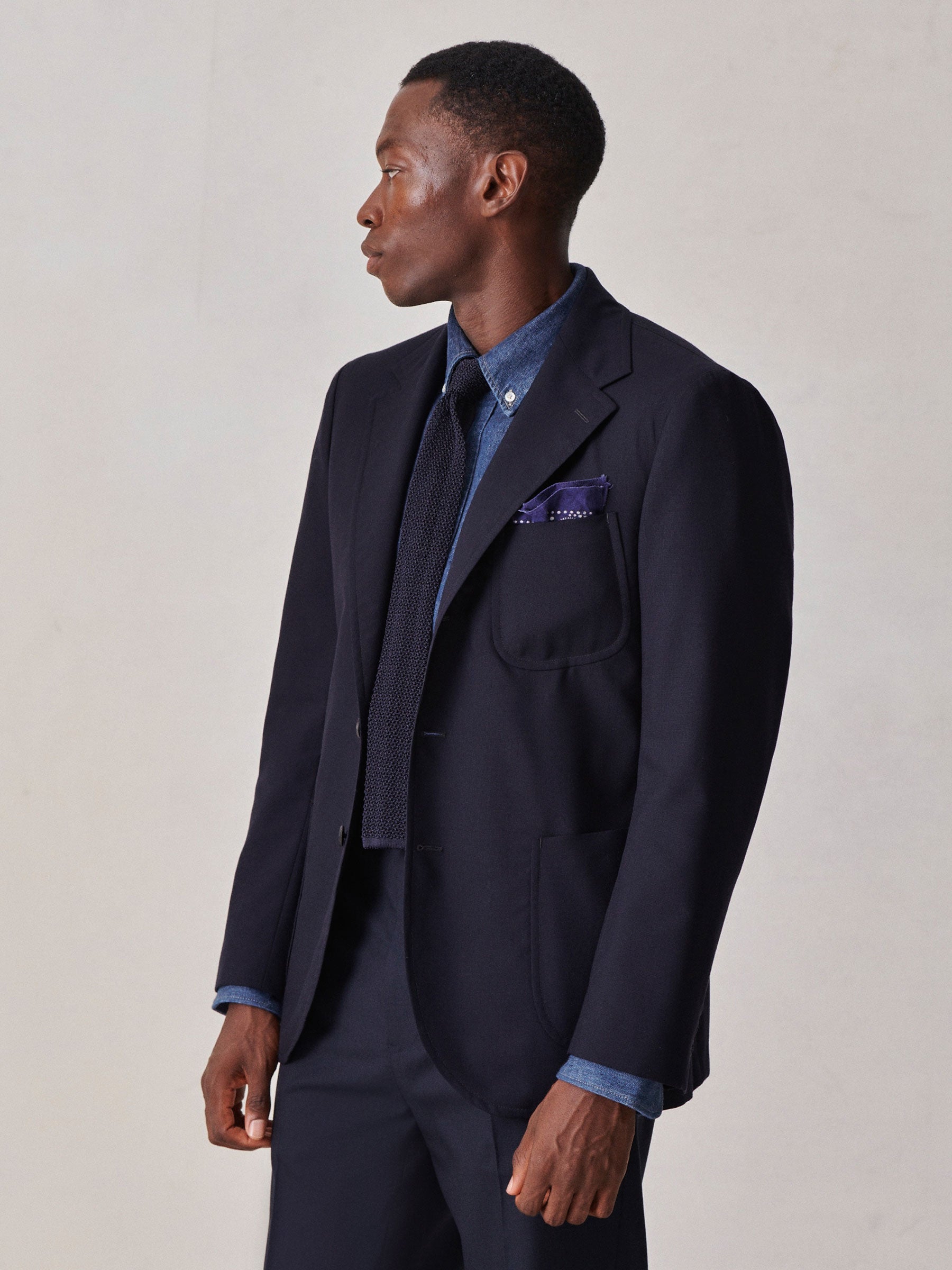 Blazer with traditional American detailing in an Italian three-season wool. Wear as a suit or on its own.