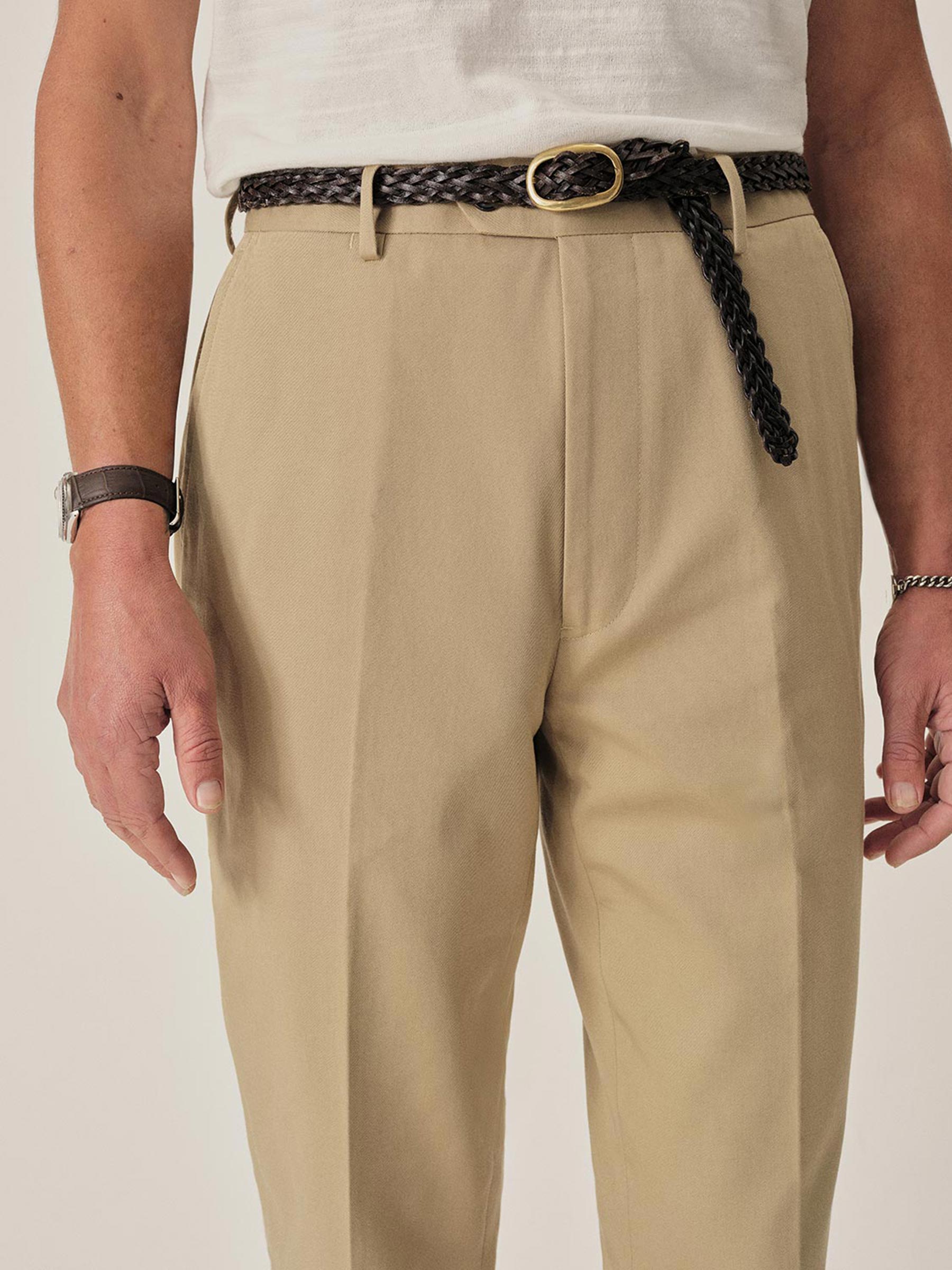 Tailored tab-waist pants in an Italian cotton twill. Wear as a suit or on its own.