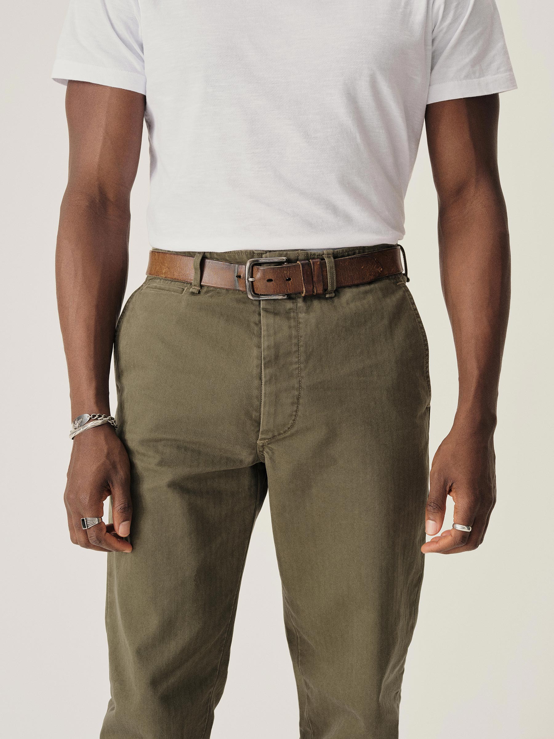 The classic officer’s pant recreated in our modern, slim fit. Button fly.