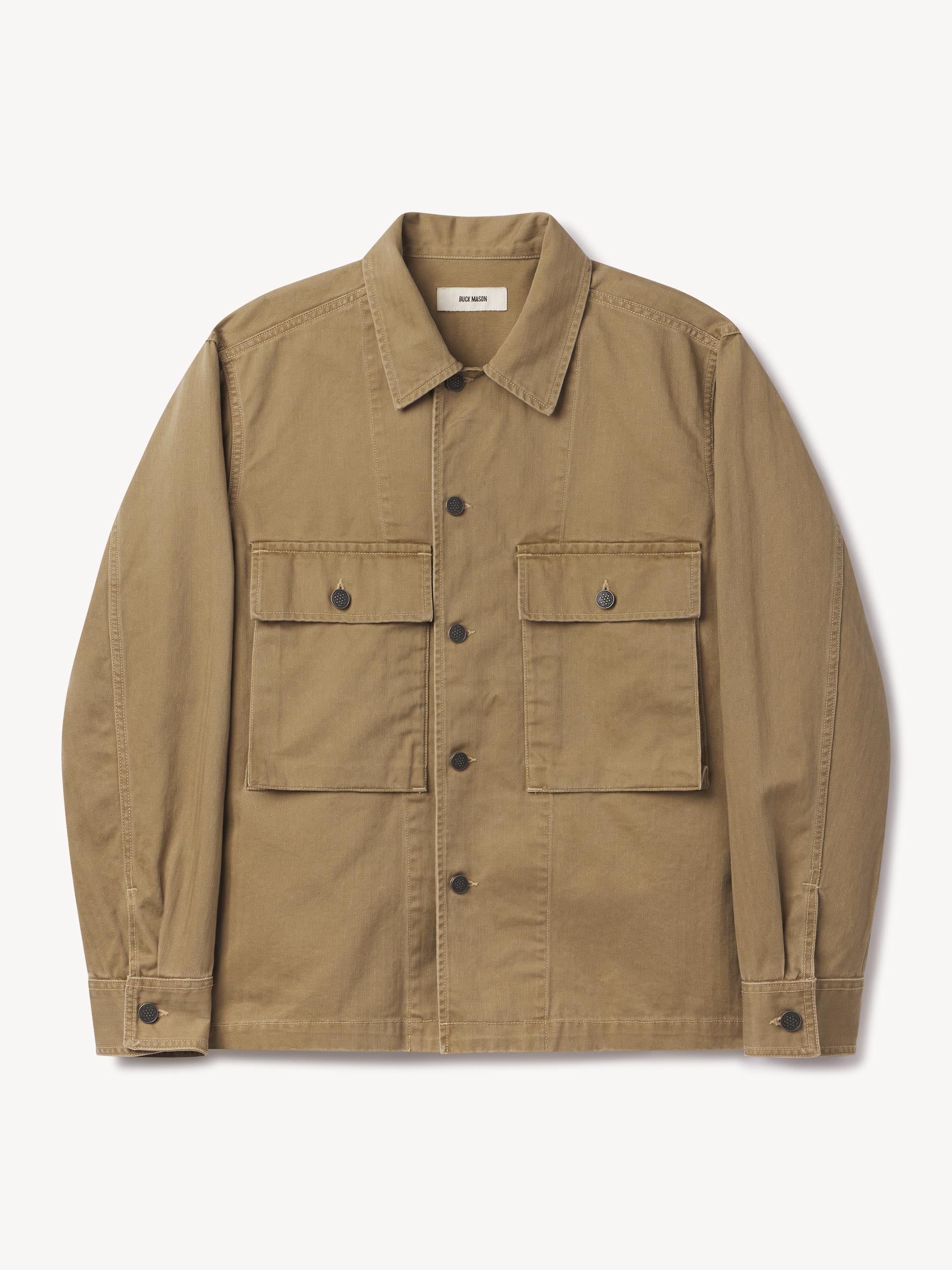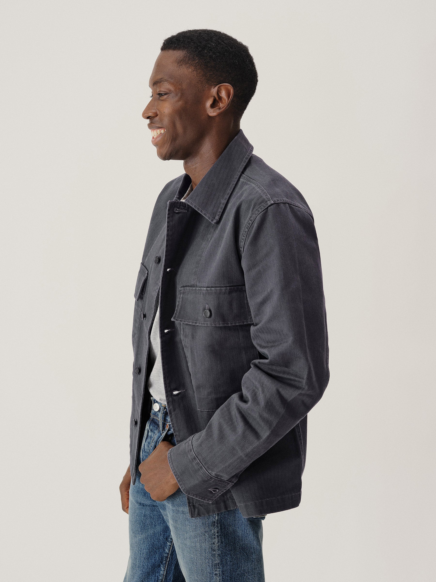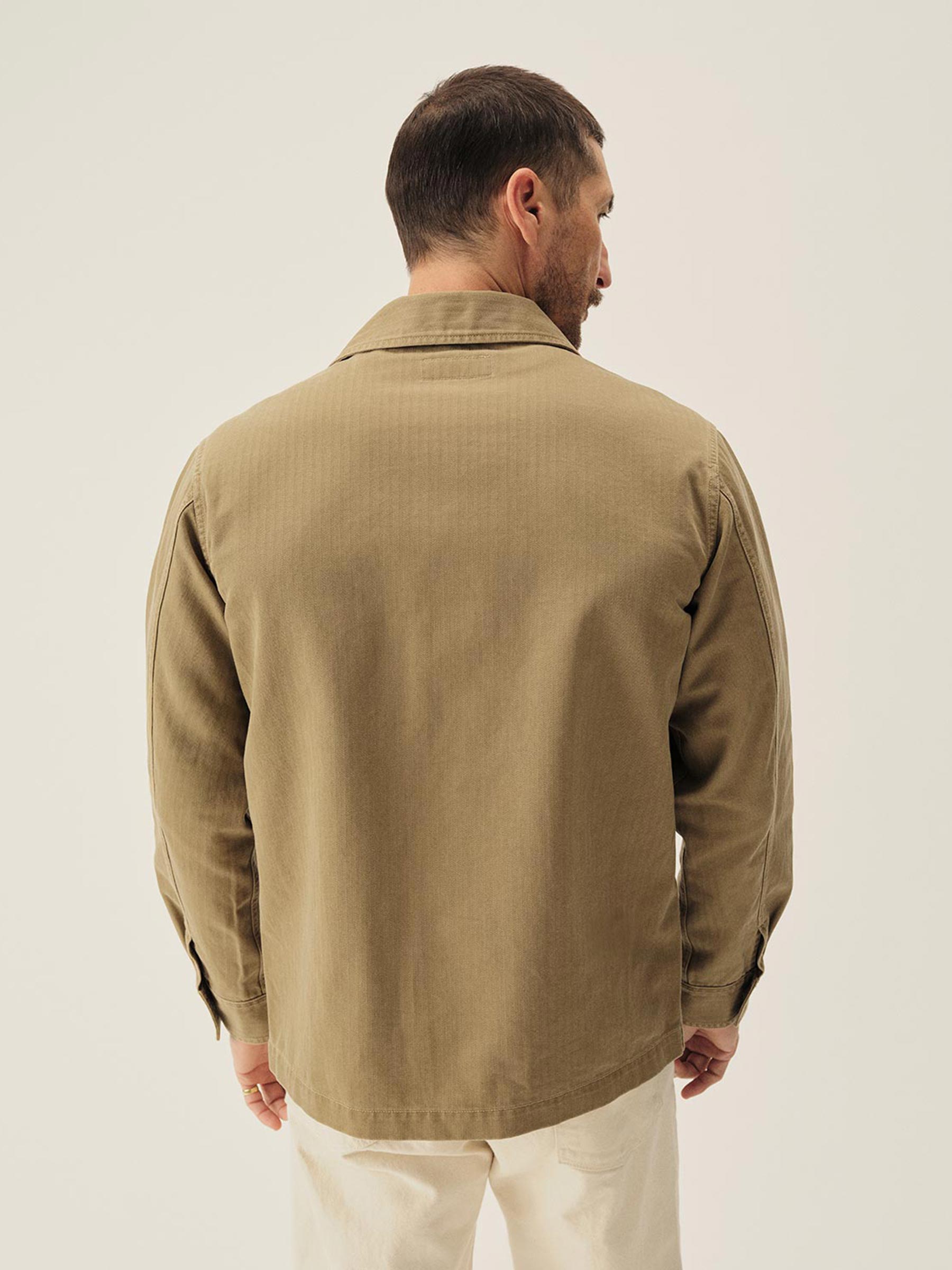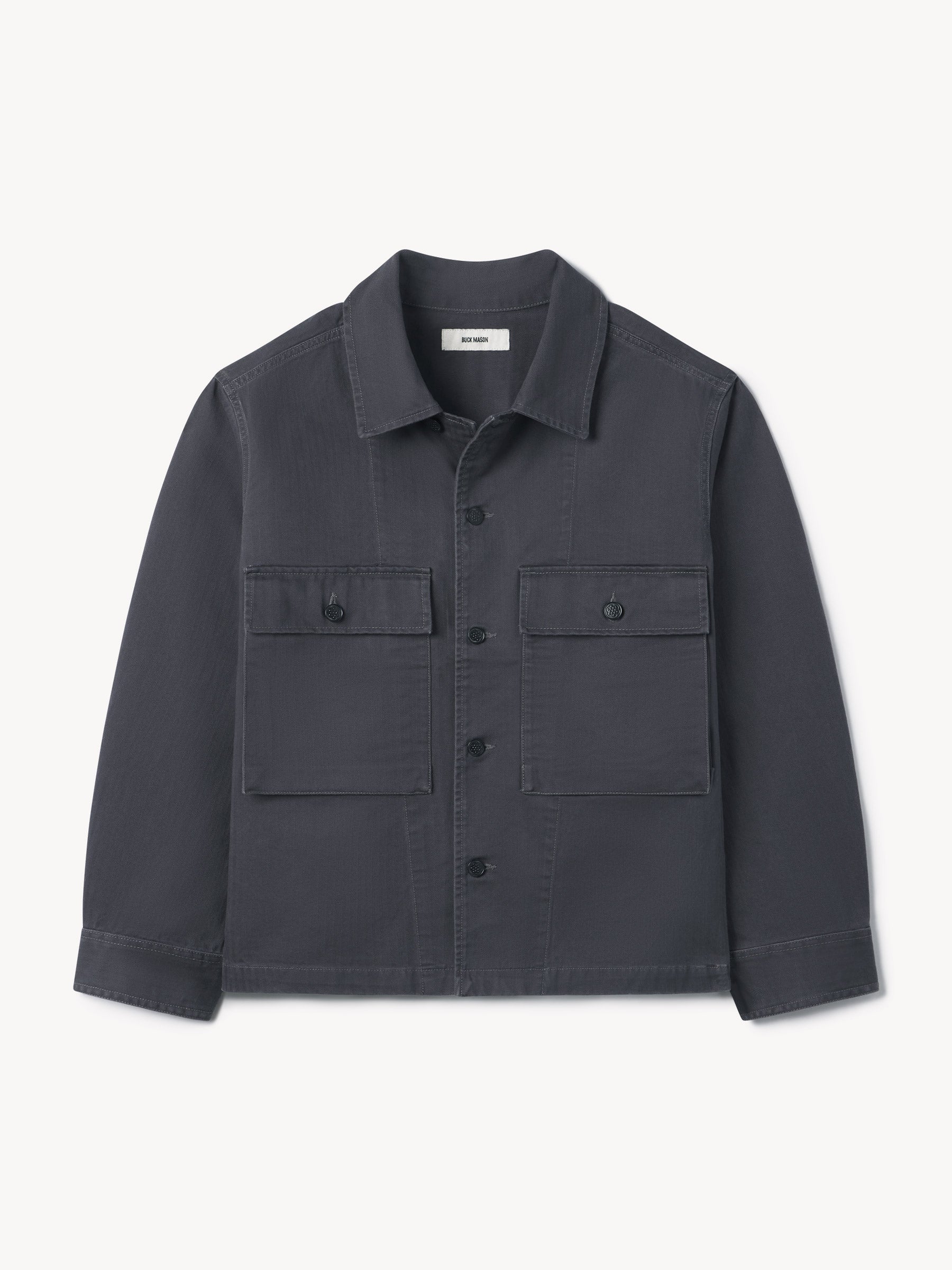A faithful rendition of an early WW2-era military fatigue shirt in a washed cotton herringbone twill.
