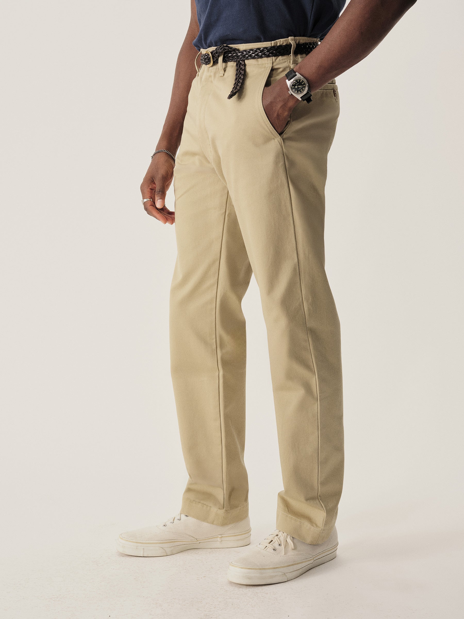 The classic officer’s pant in a vintage-inspired cotton twill. Cut with a straight fit through the hip and tapered at the leg. Zip fly.