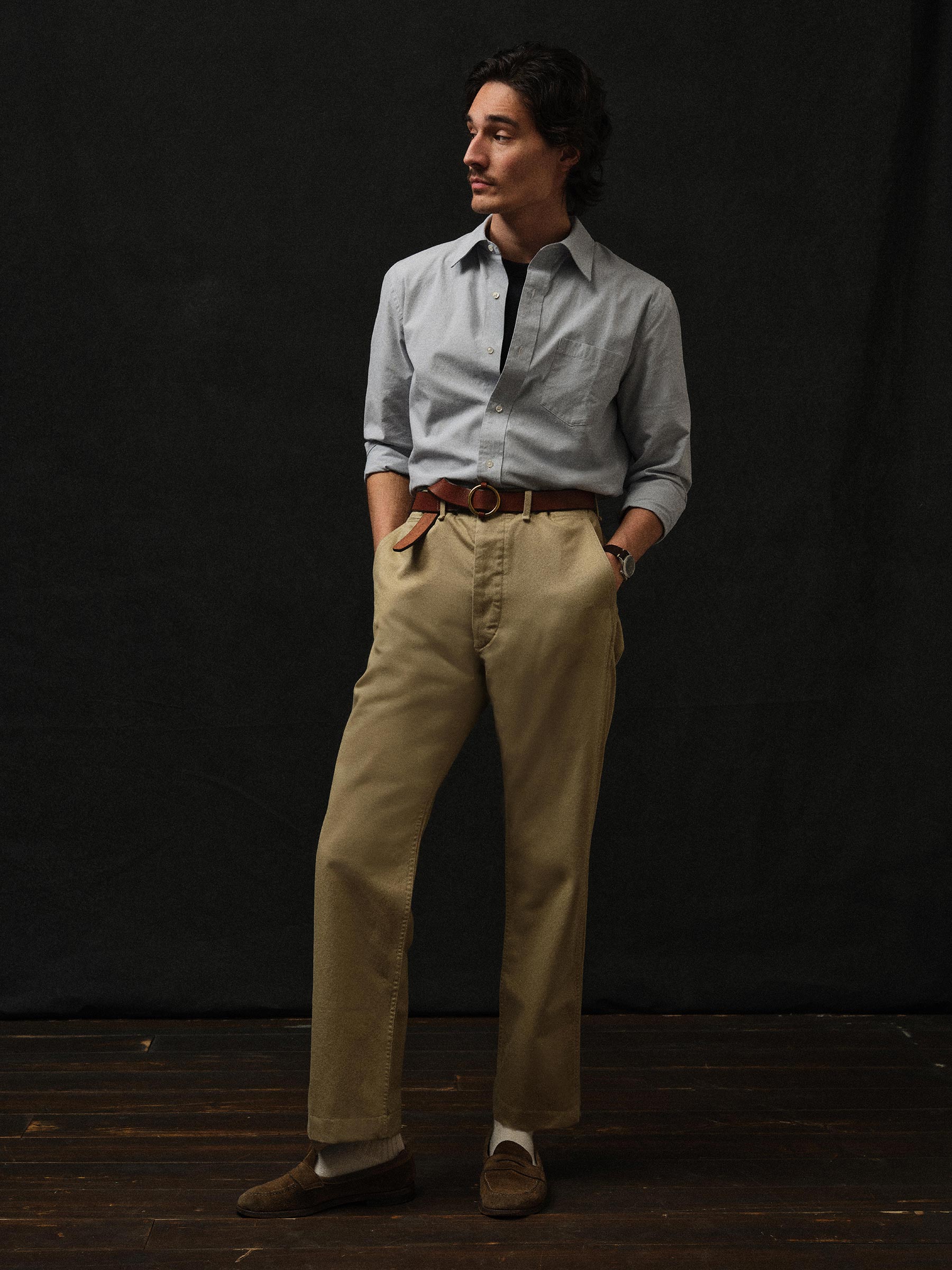 The classic officer’s pant recreated in a vintage-inspired fit and feel. Button fly.
