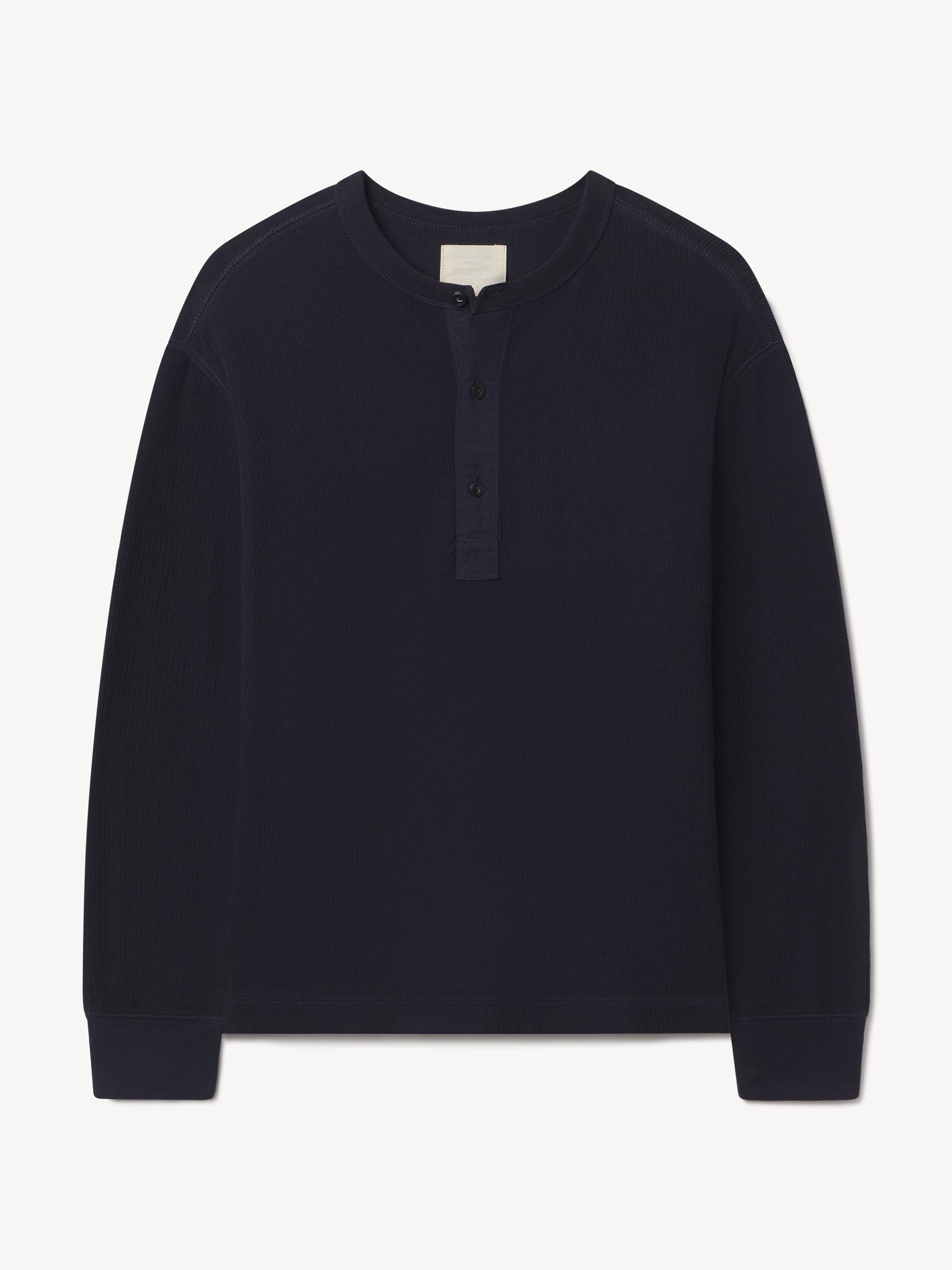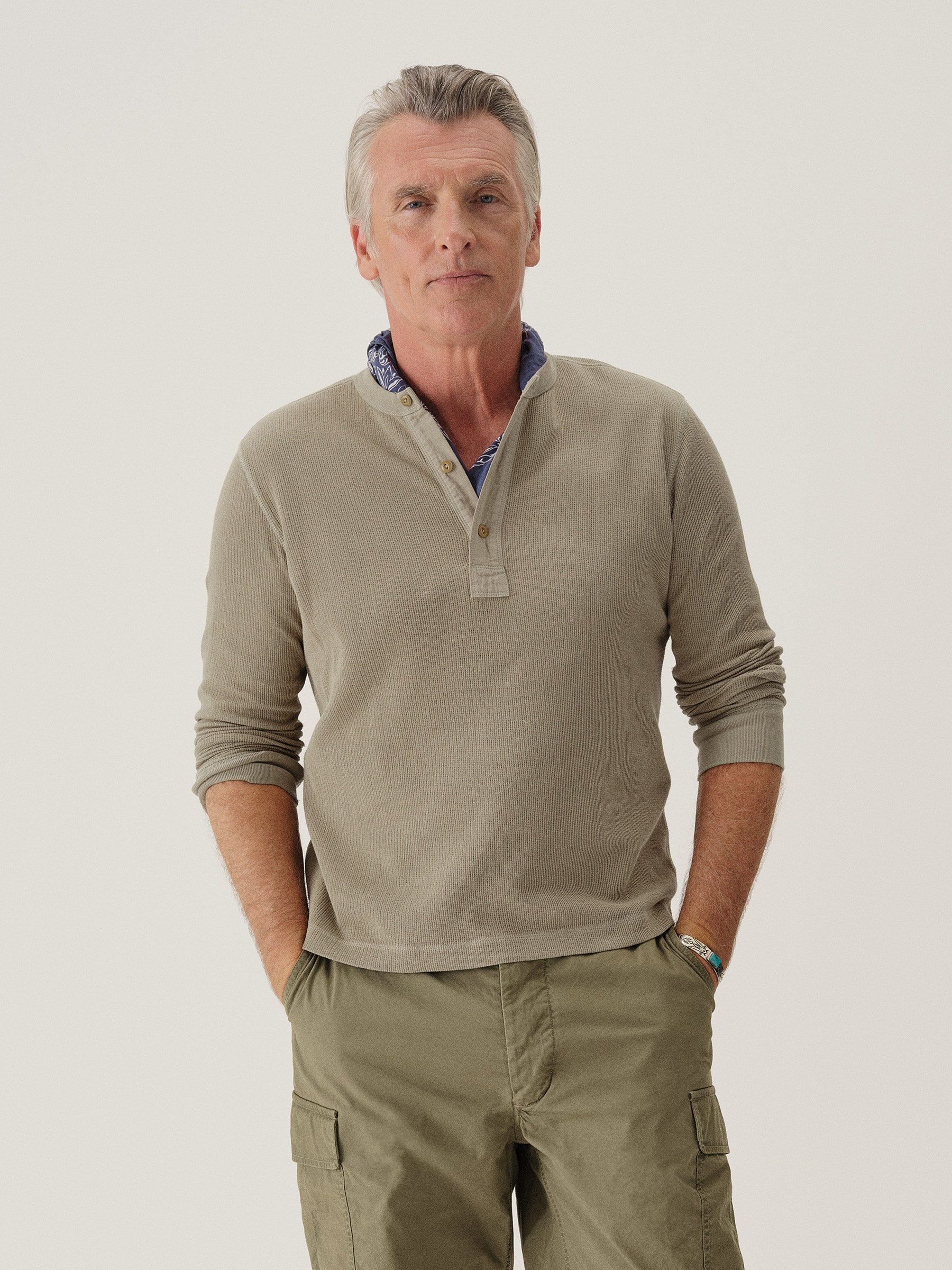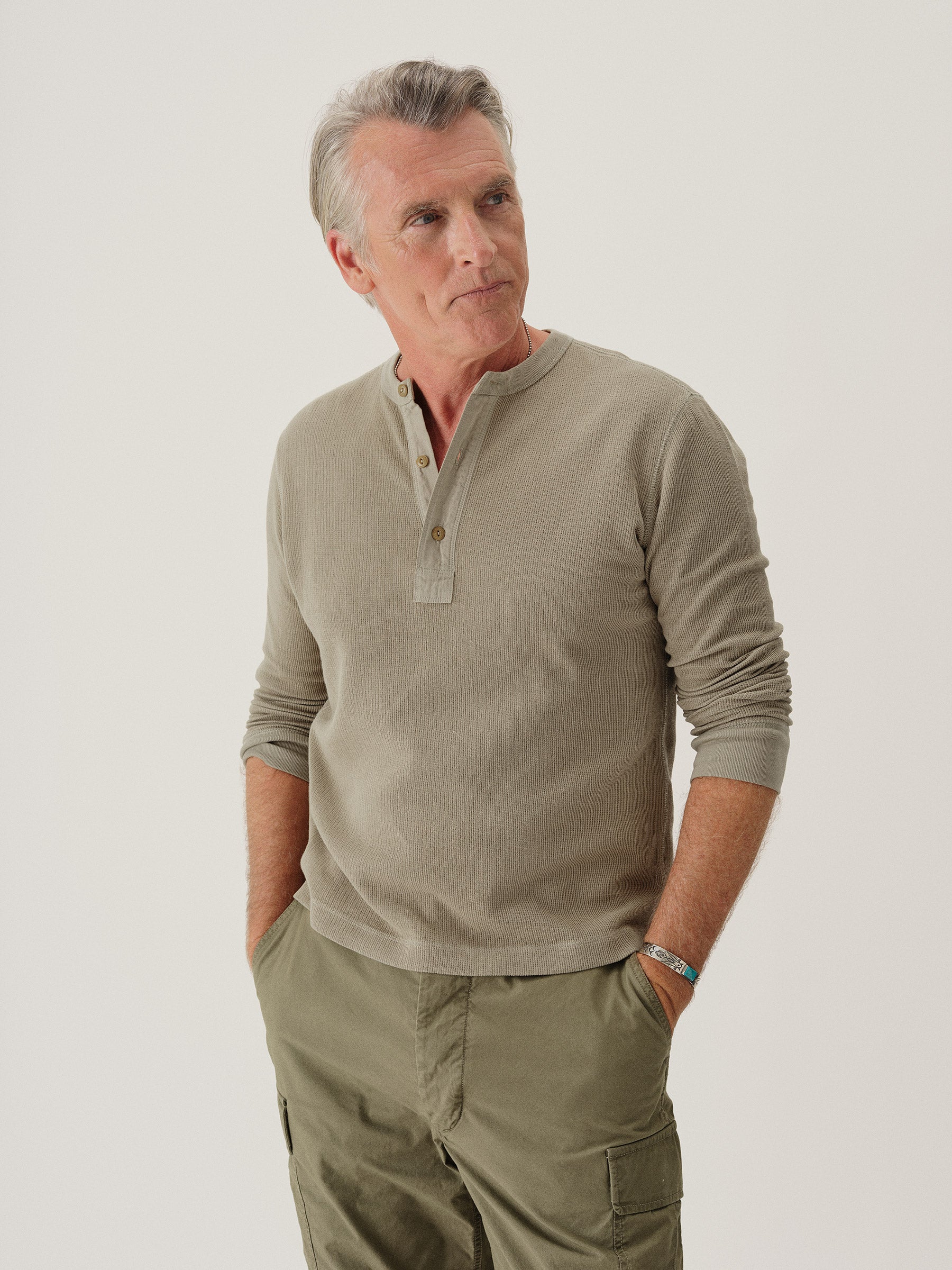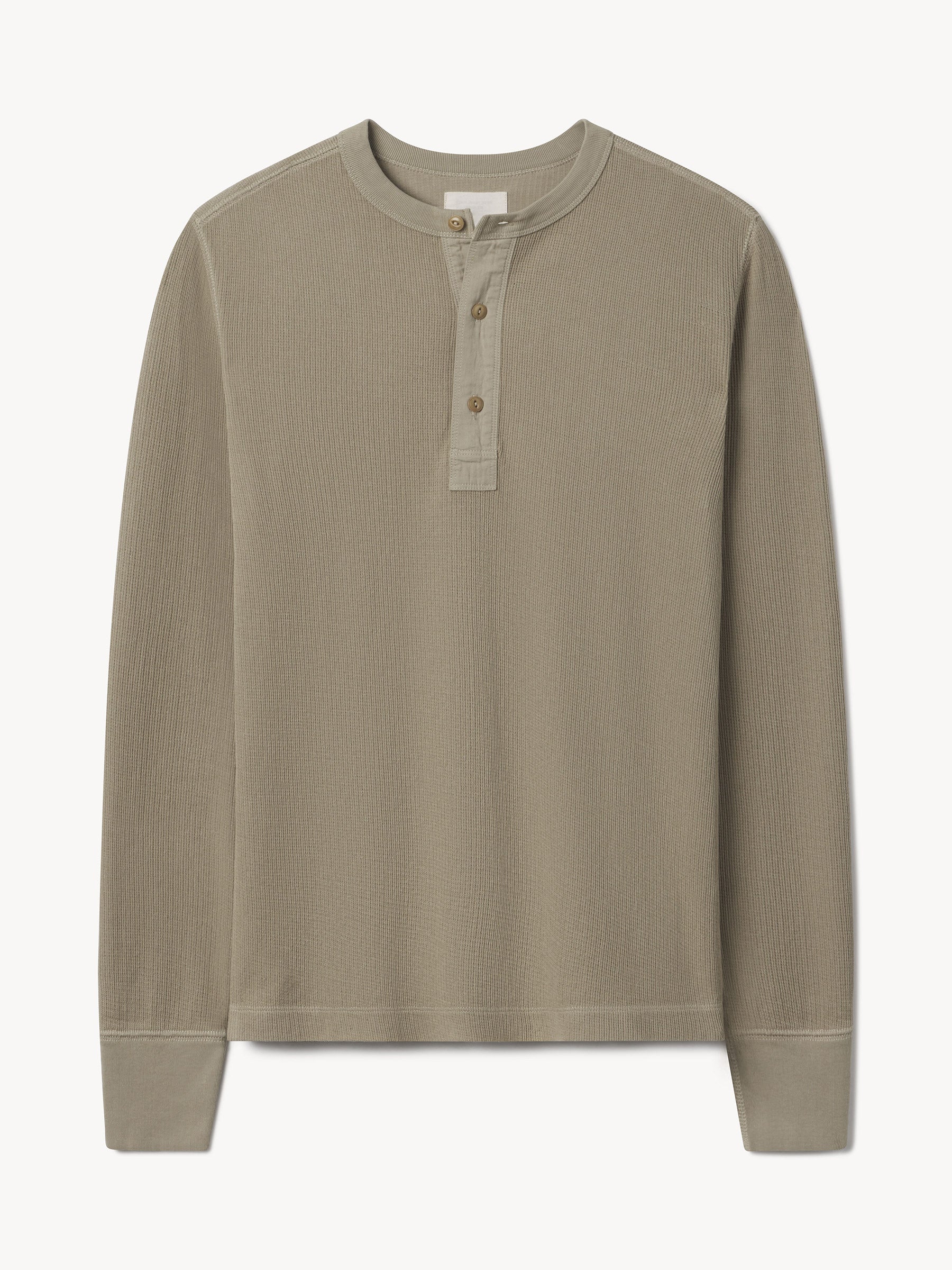 Inspired by vintage military pieces, our thermal henley has a woven placket and classic cat-eye buttons.