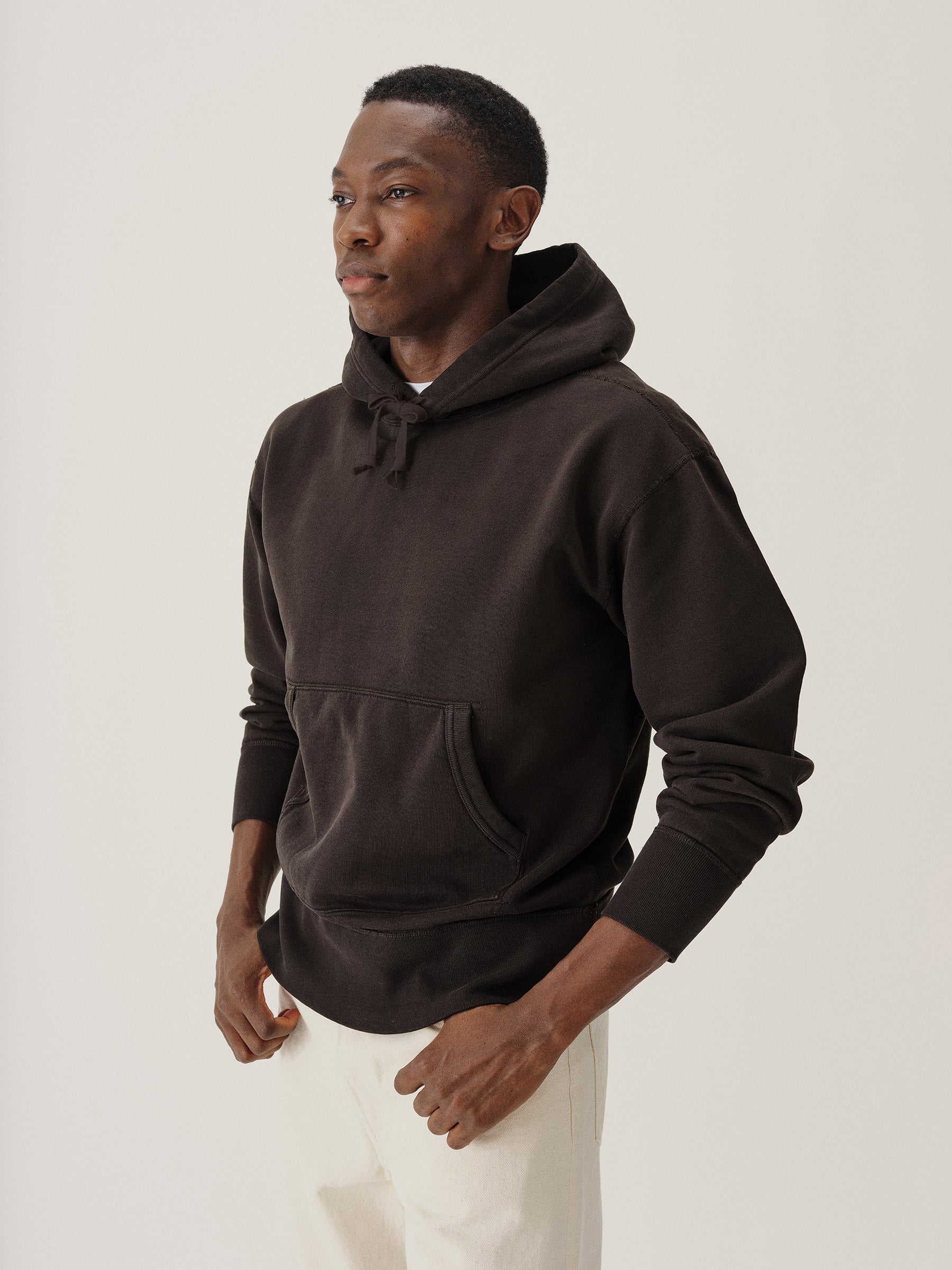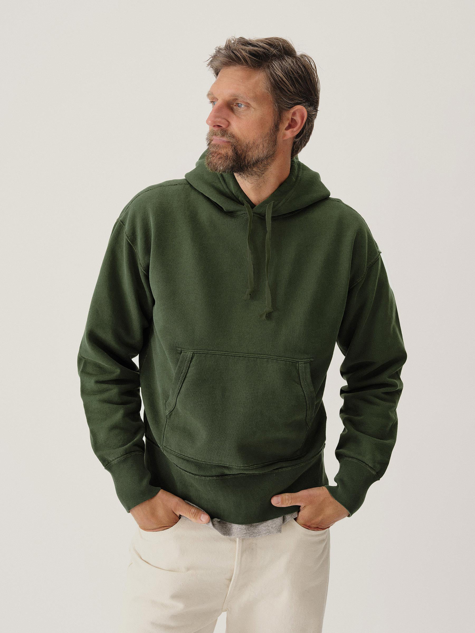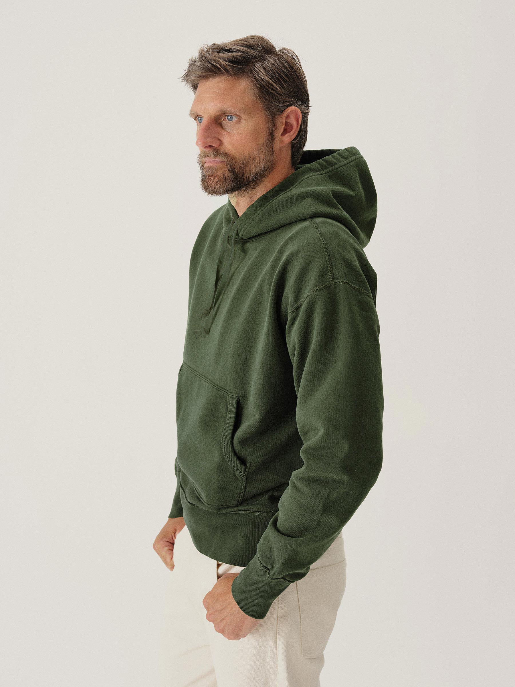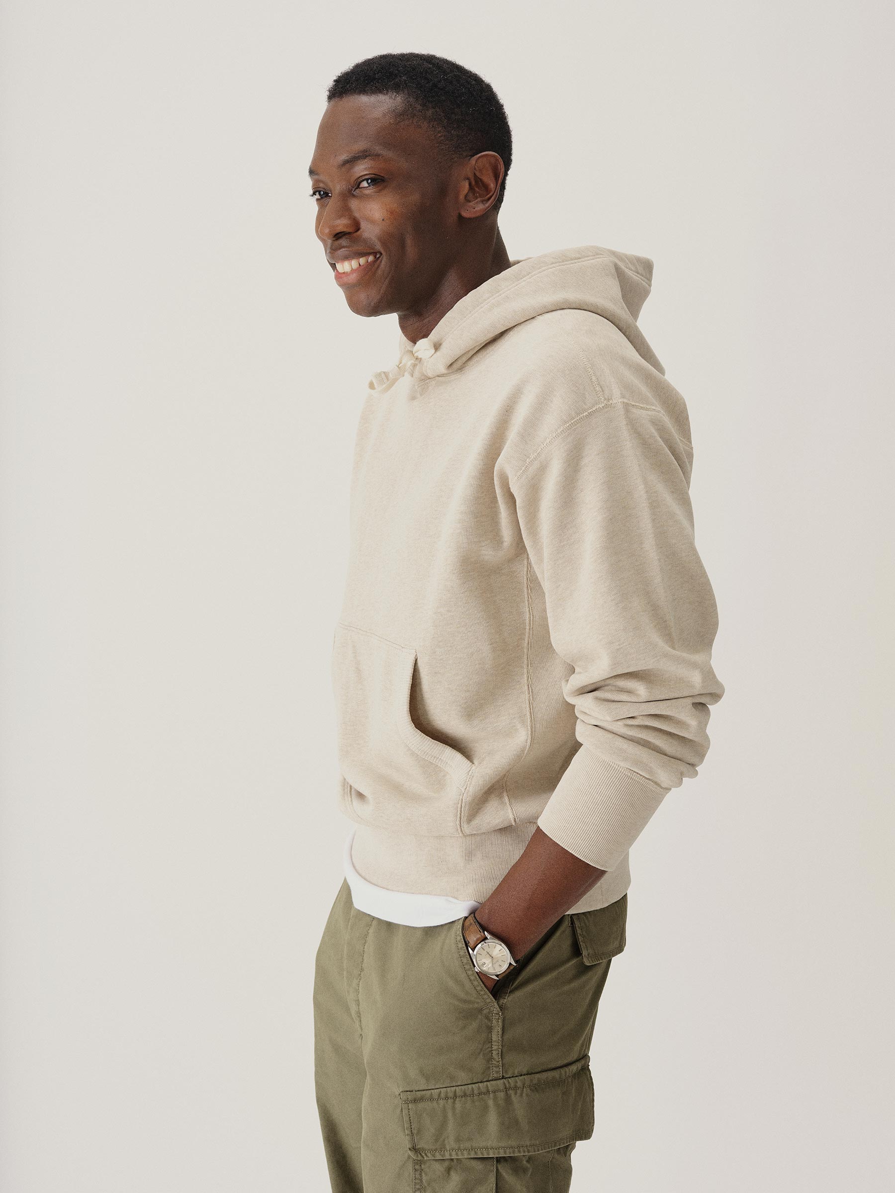 Classic midcentury-style hooded sweatshirt in our custom-milled French terry fleece.