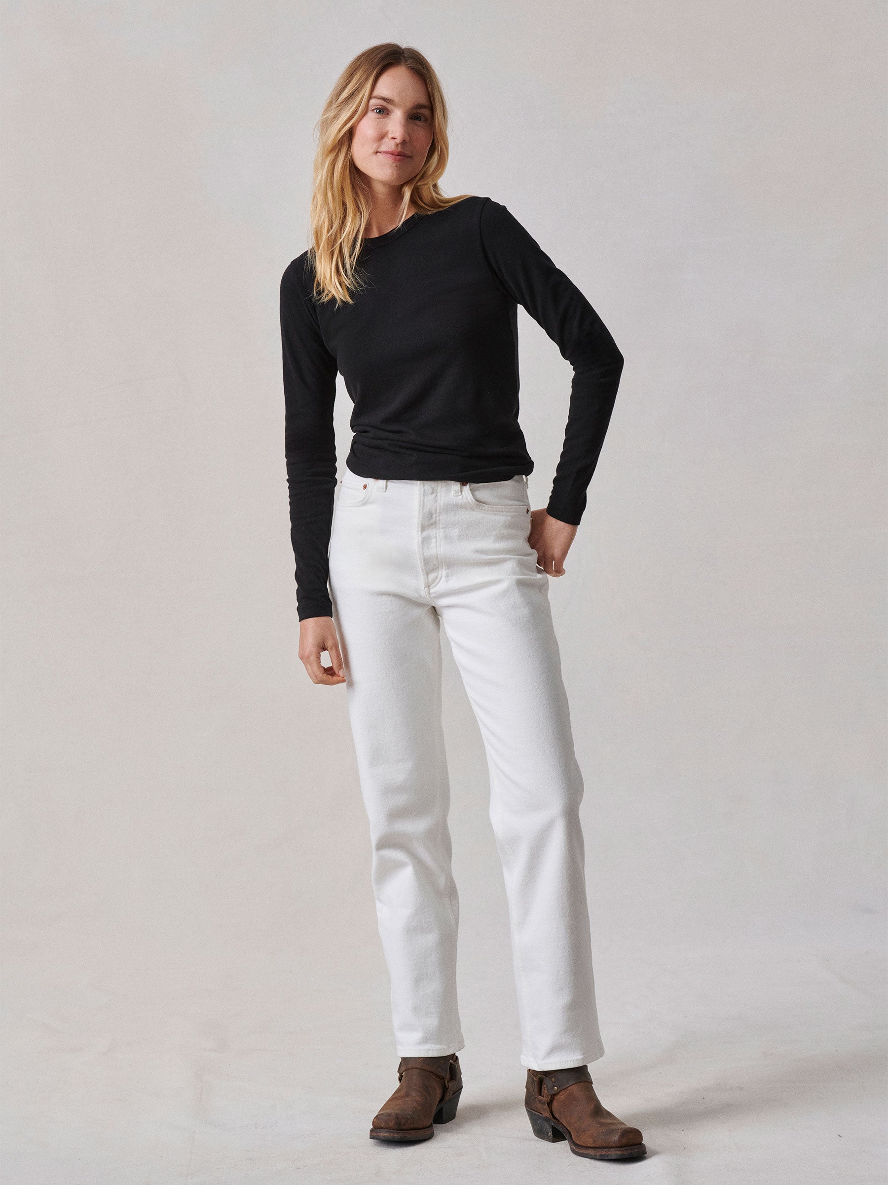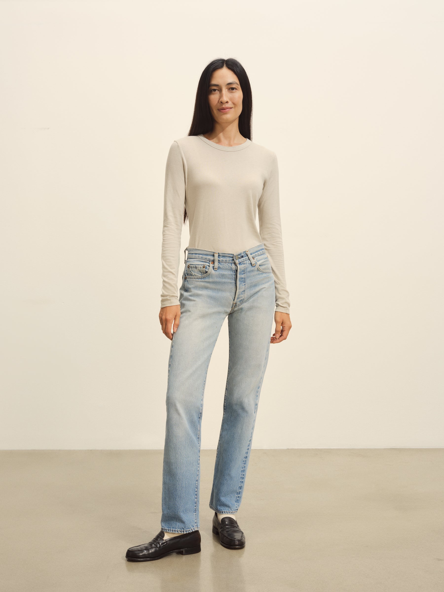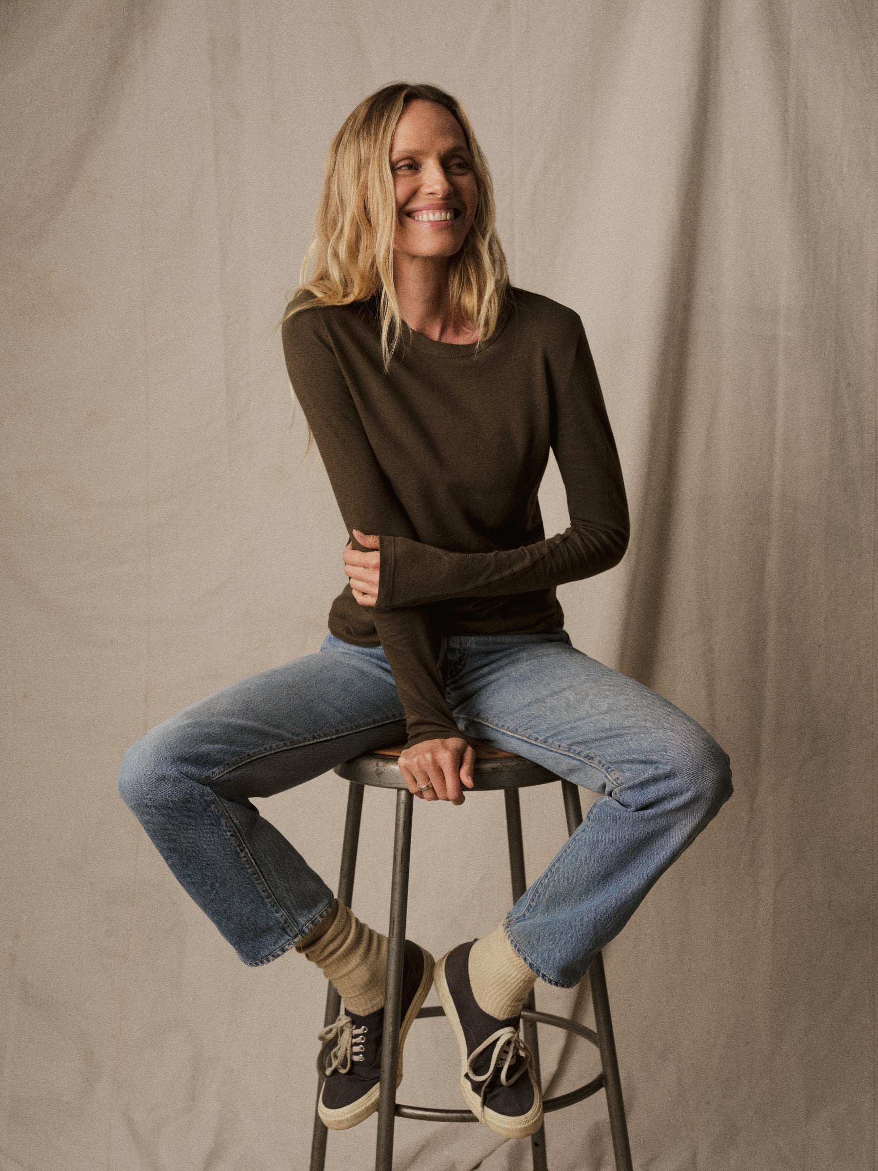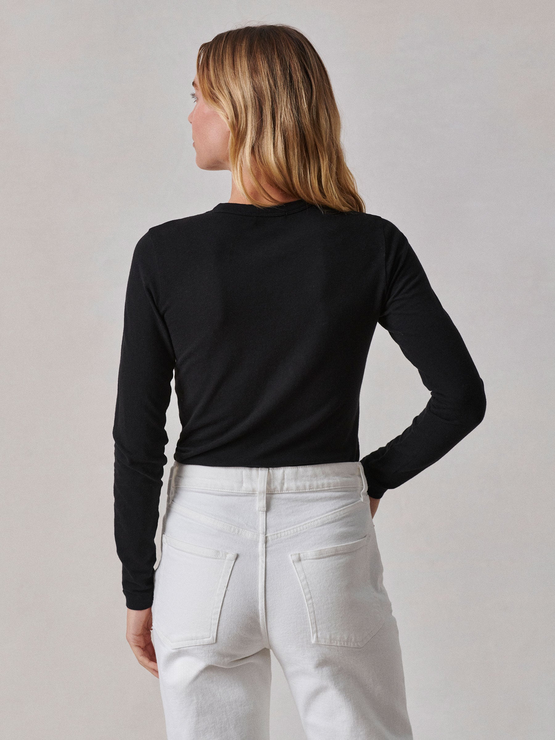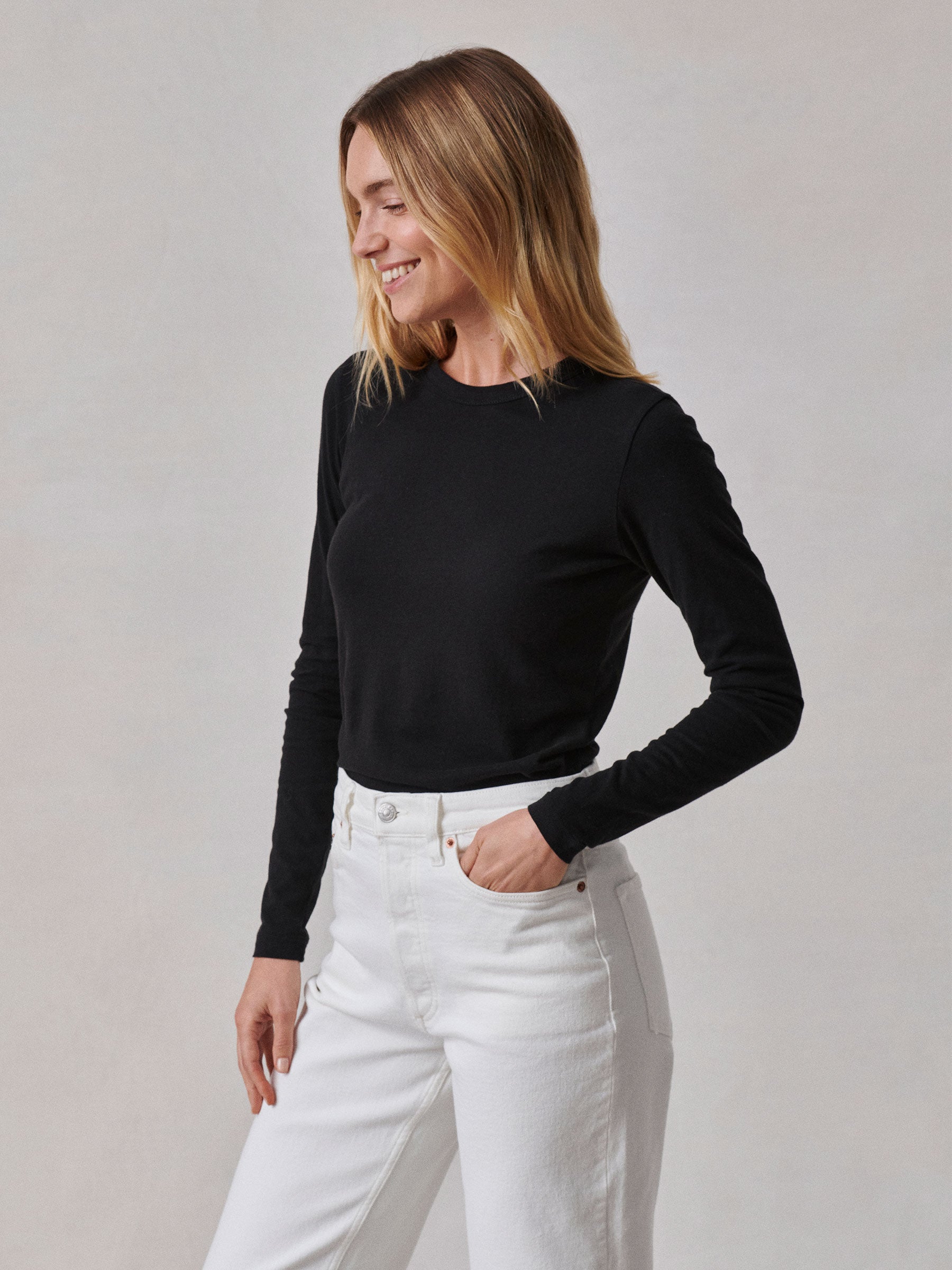 Slim fit long sleeve crewneck tee cut from a supersoft 130 GSM bamboo/cotton/wool blend.