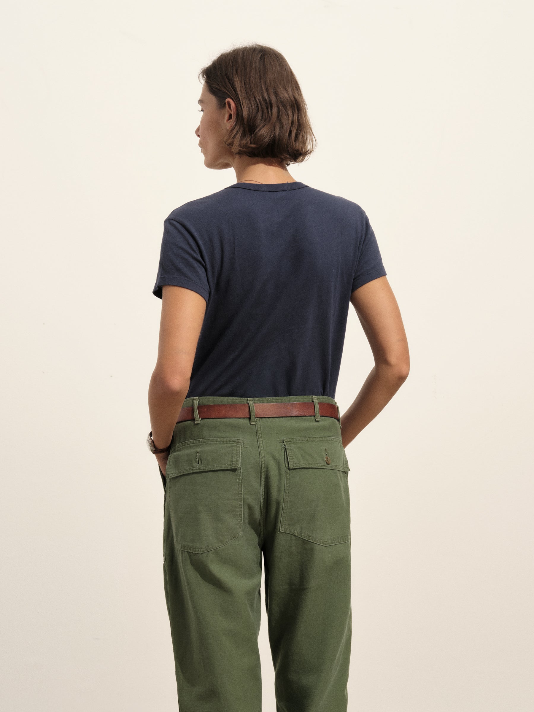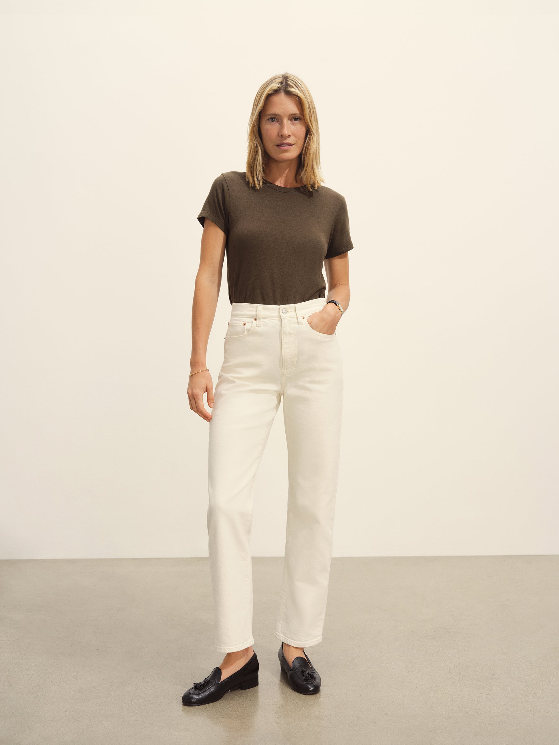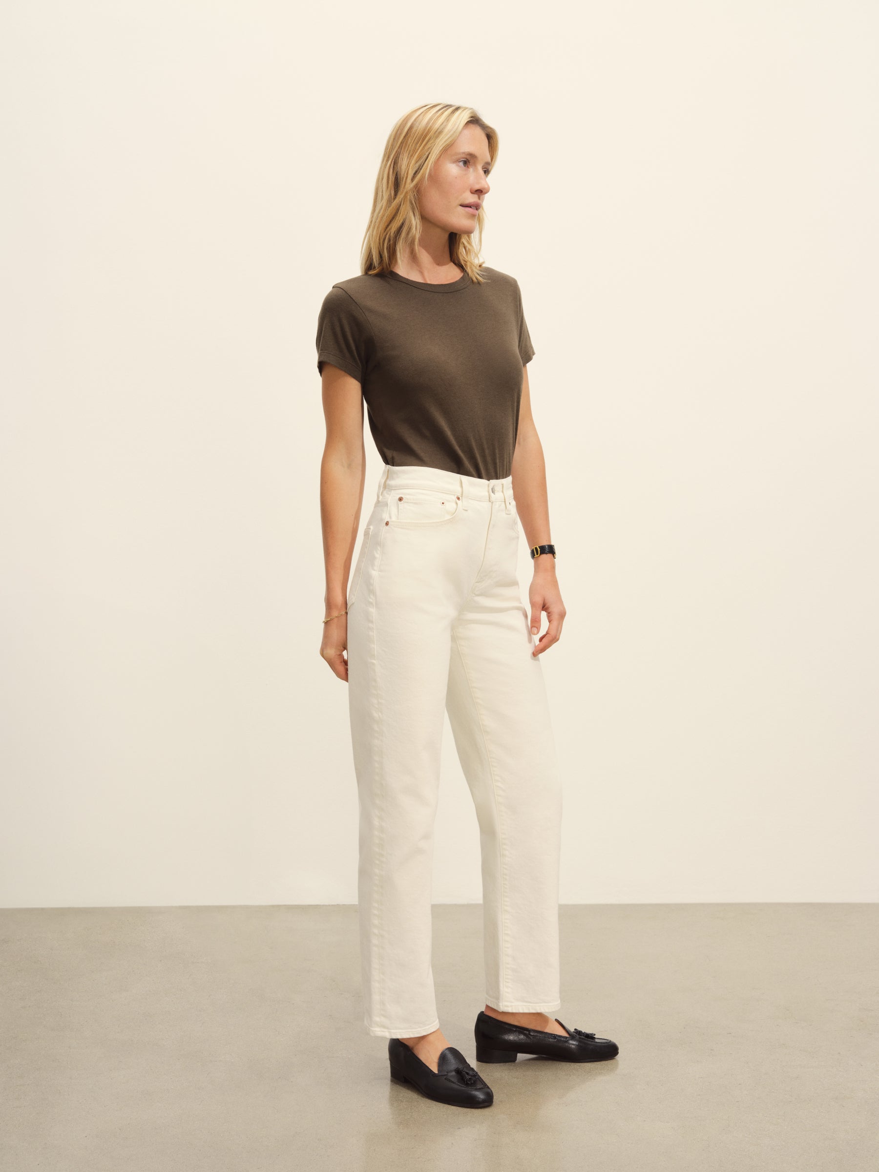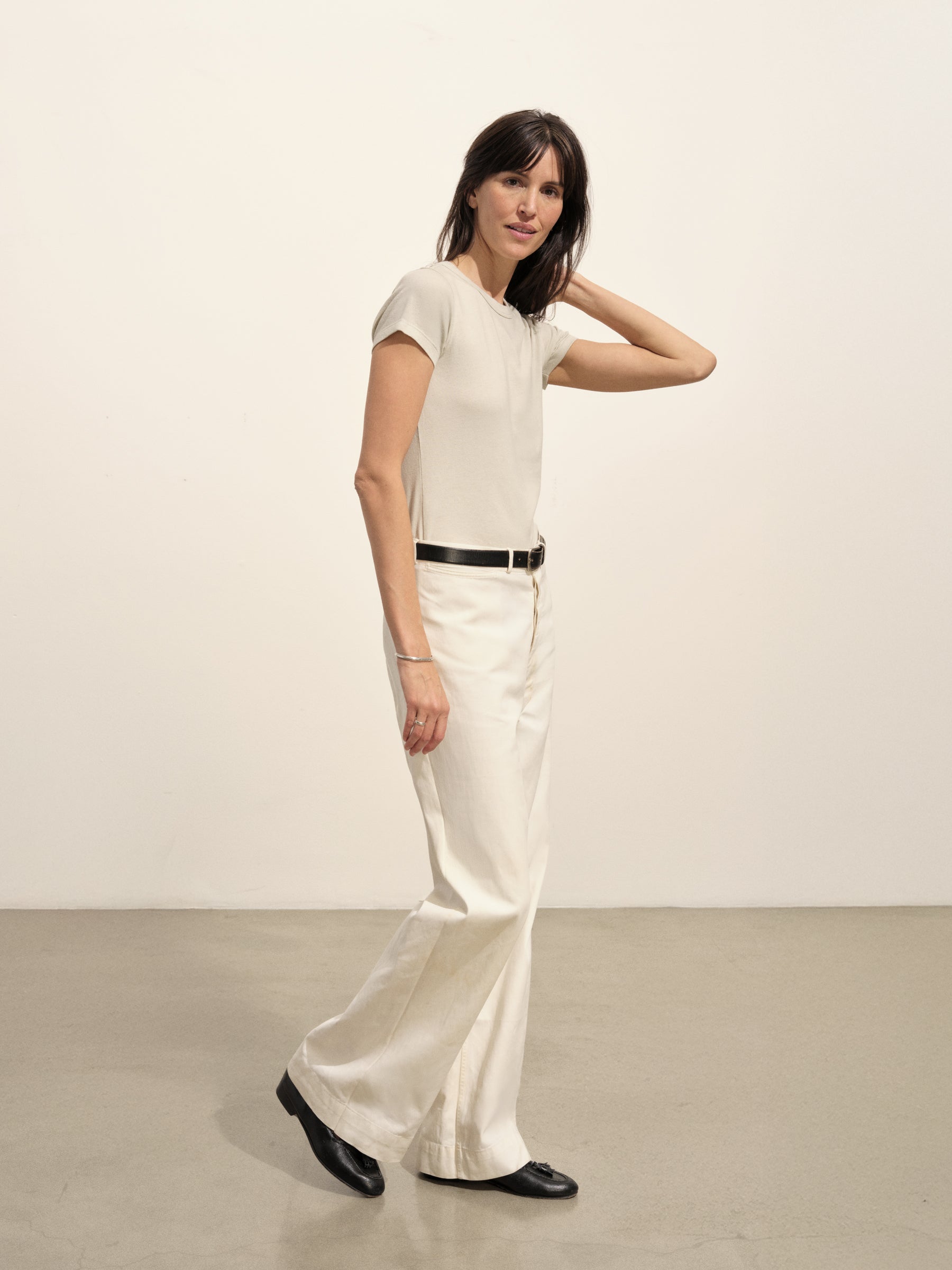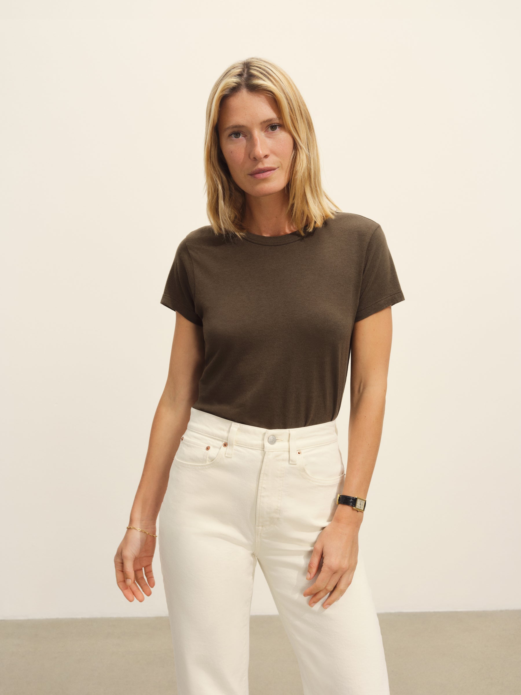 Slim fit crewneck tee cut from a supersoft 130 GSM bamboo/cotton/wool blend.