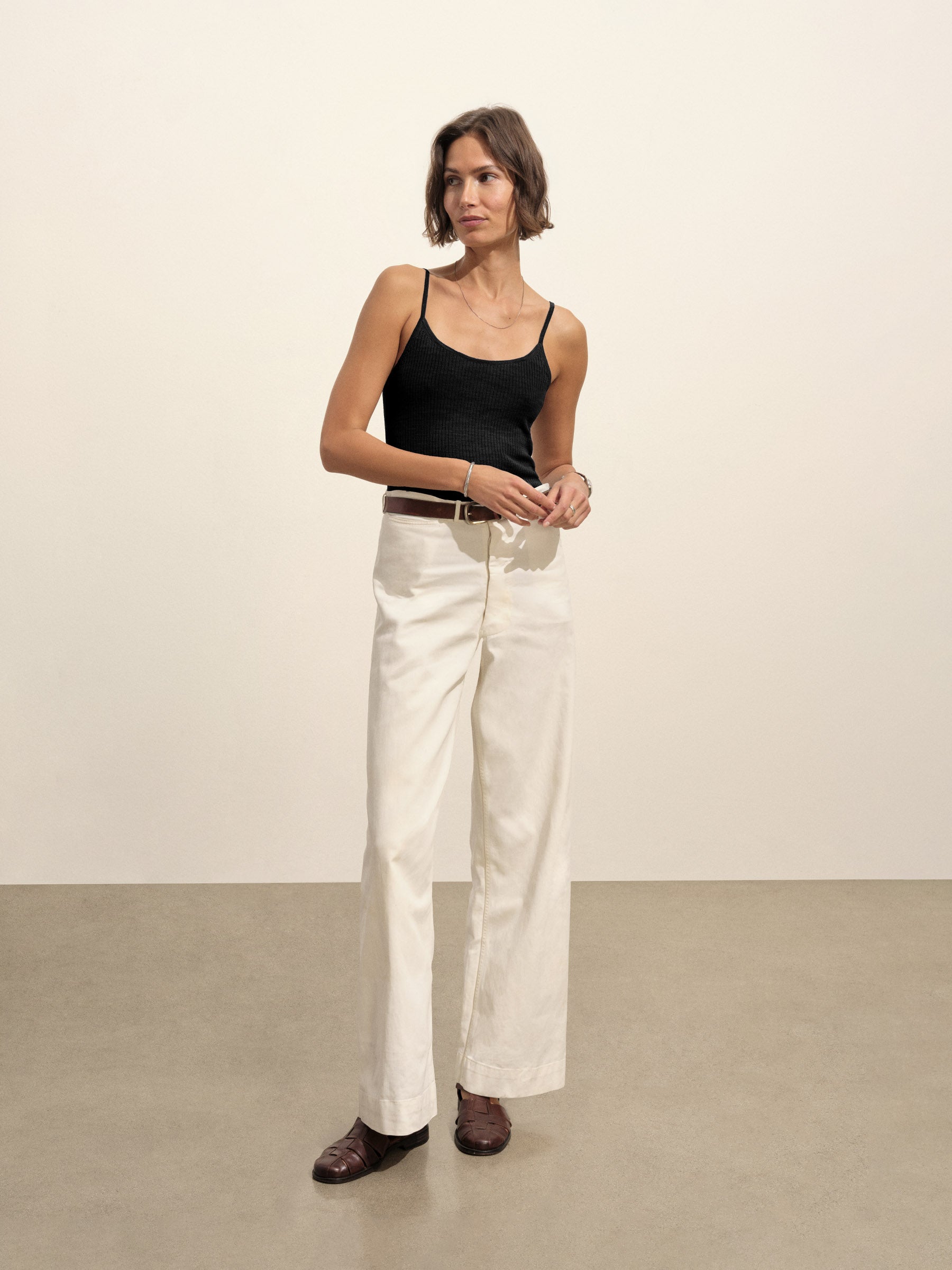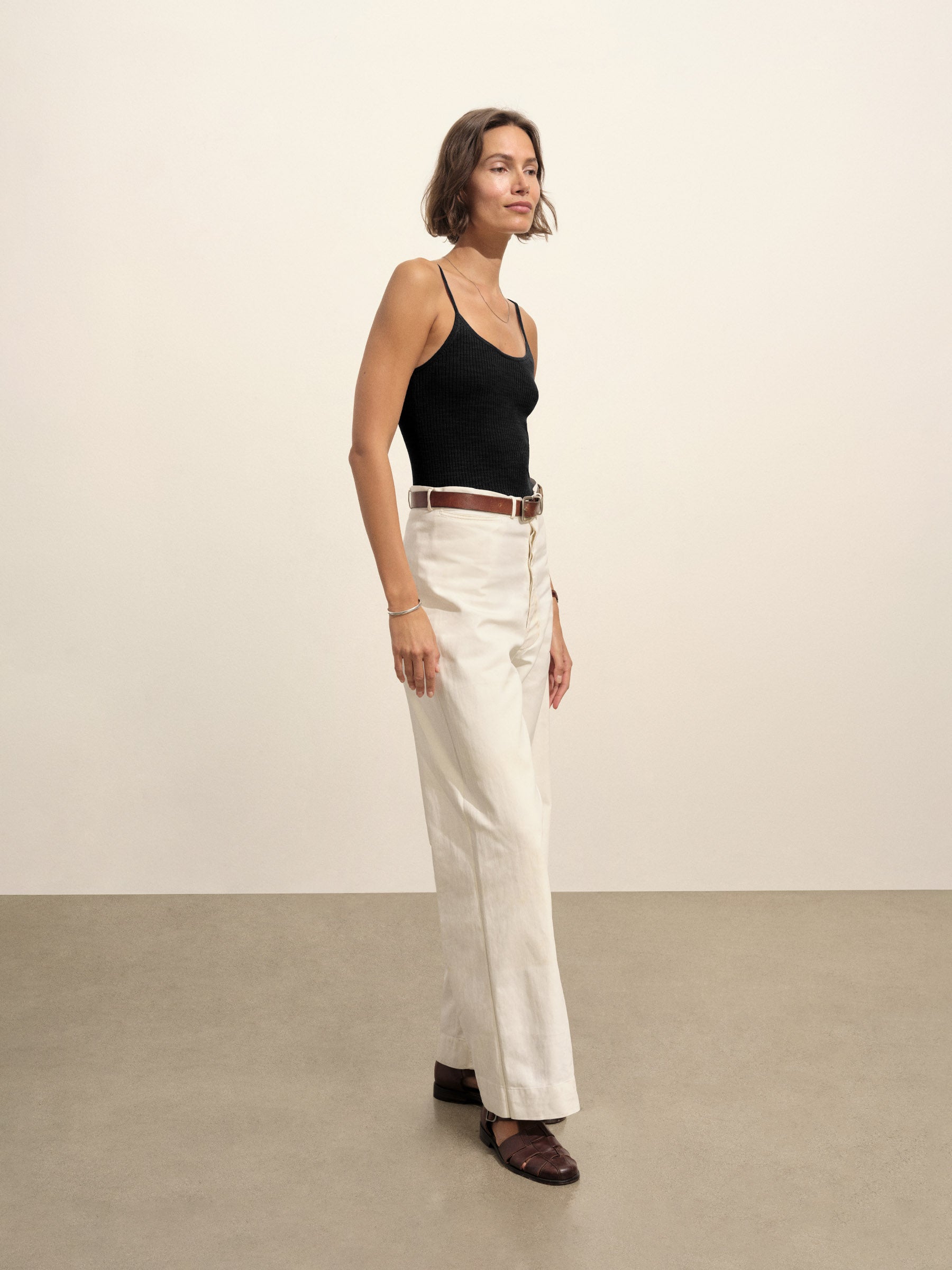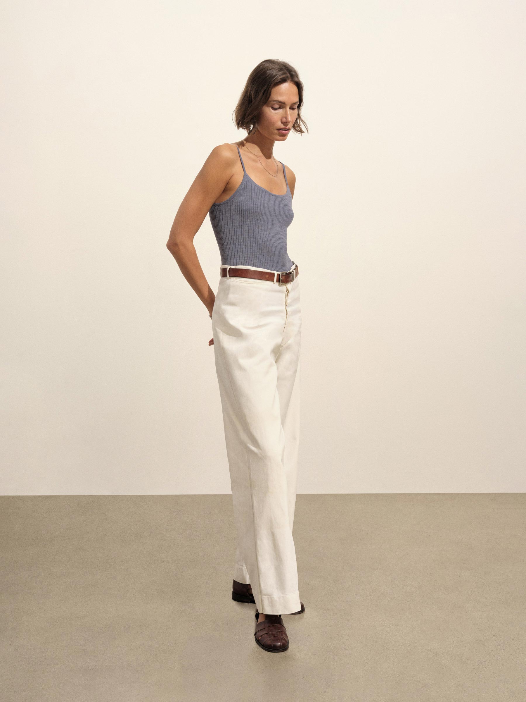 Vintage-inspired slim fit scoop camisole made from an airy blend of Italian cotton and linen.