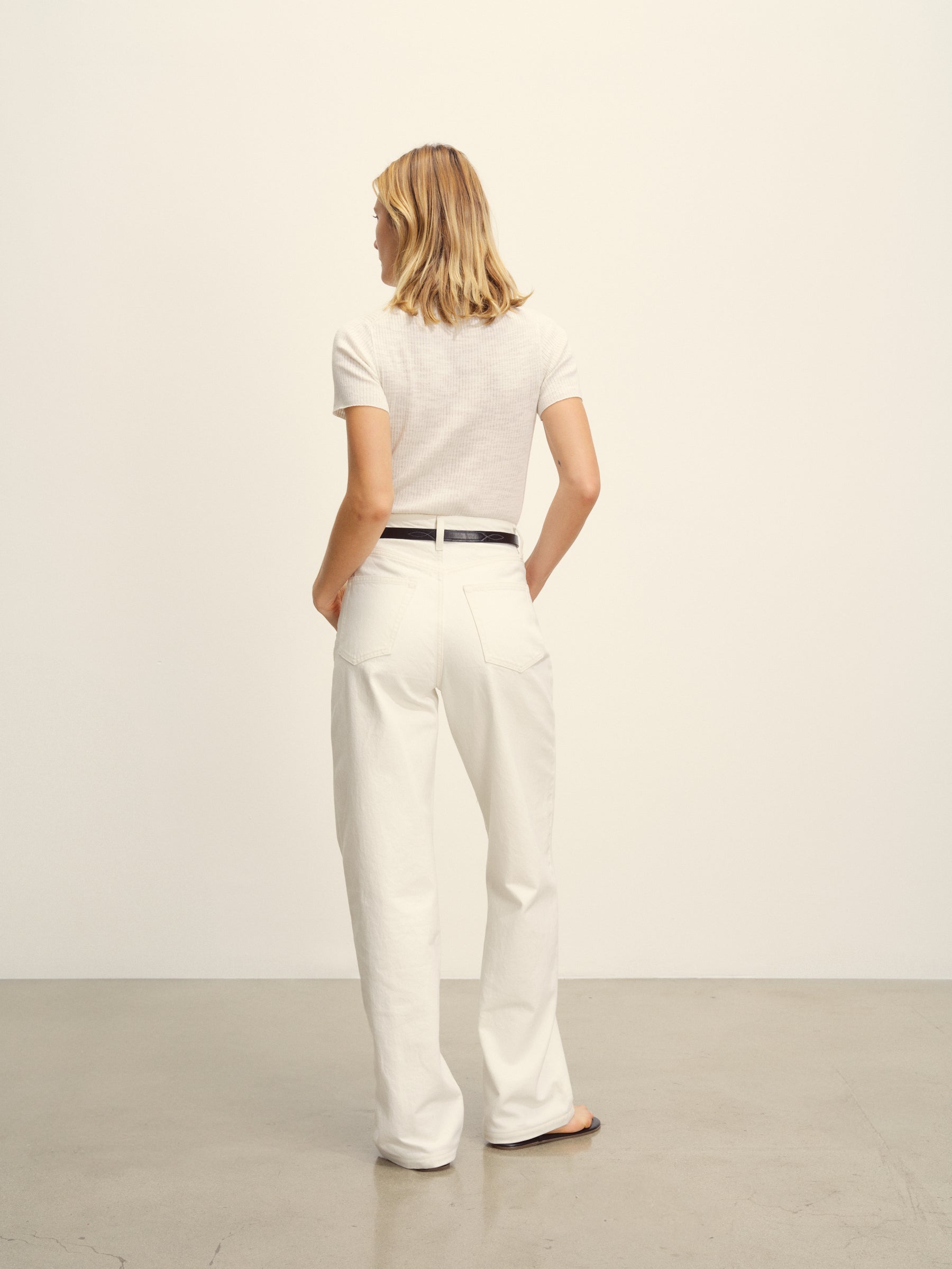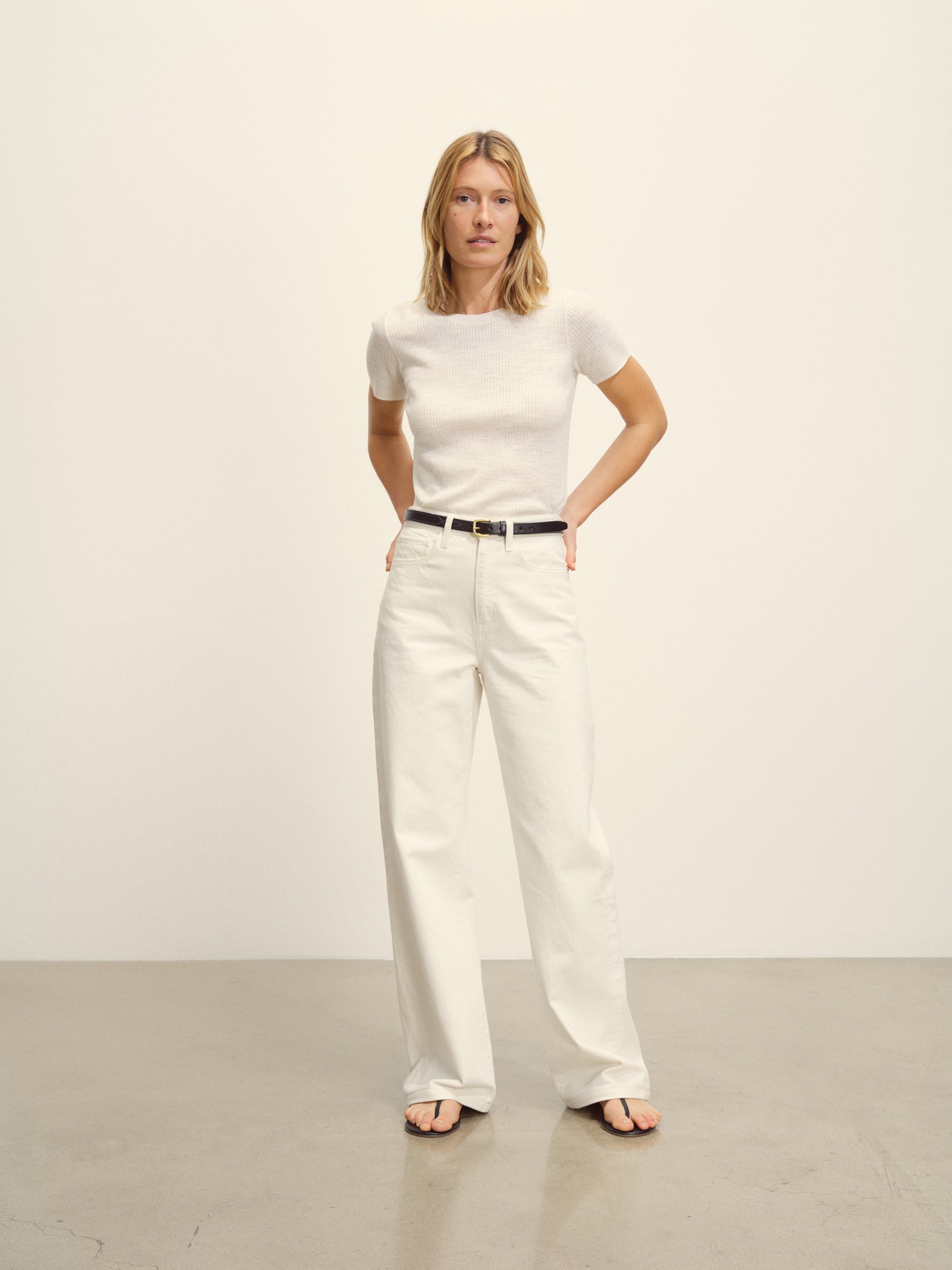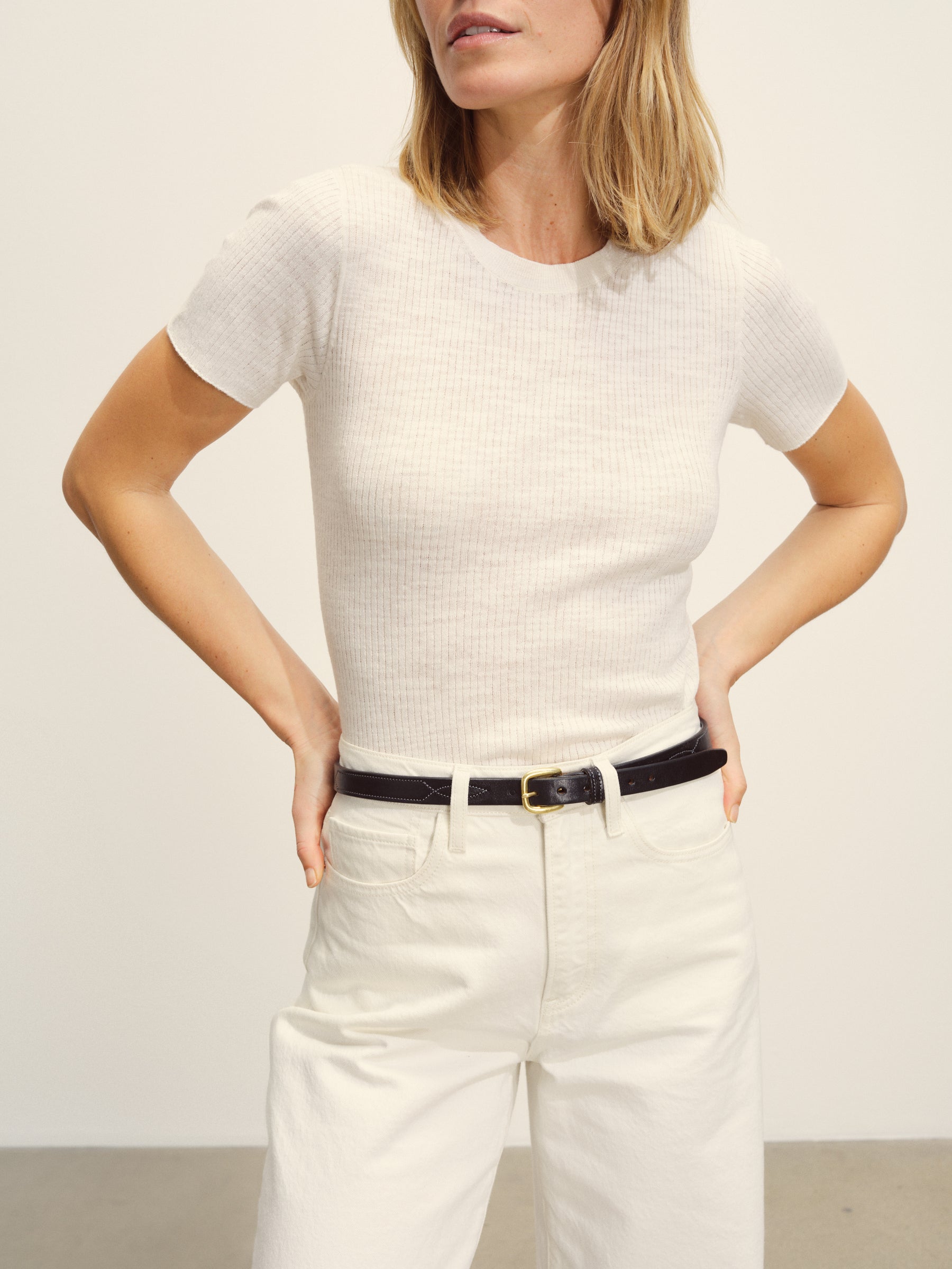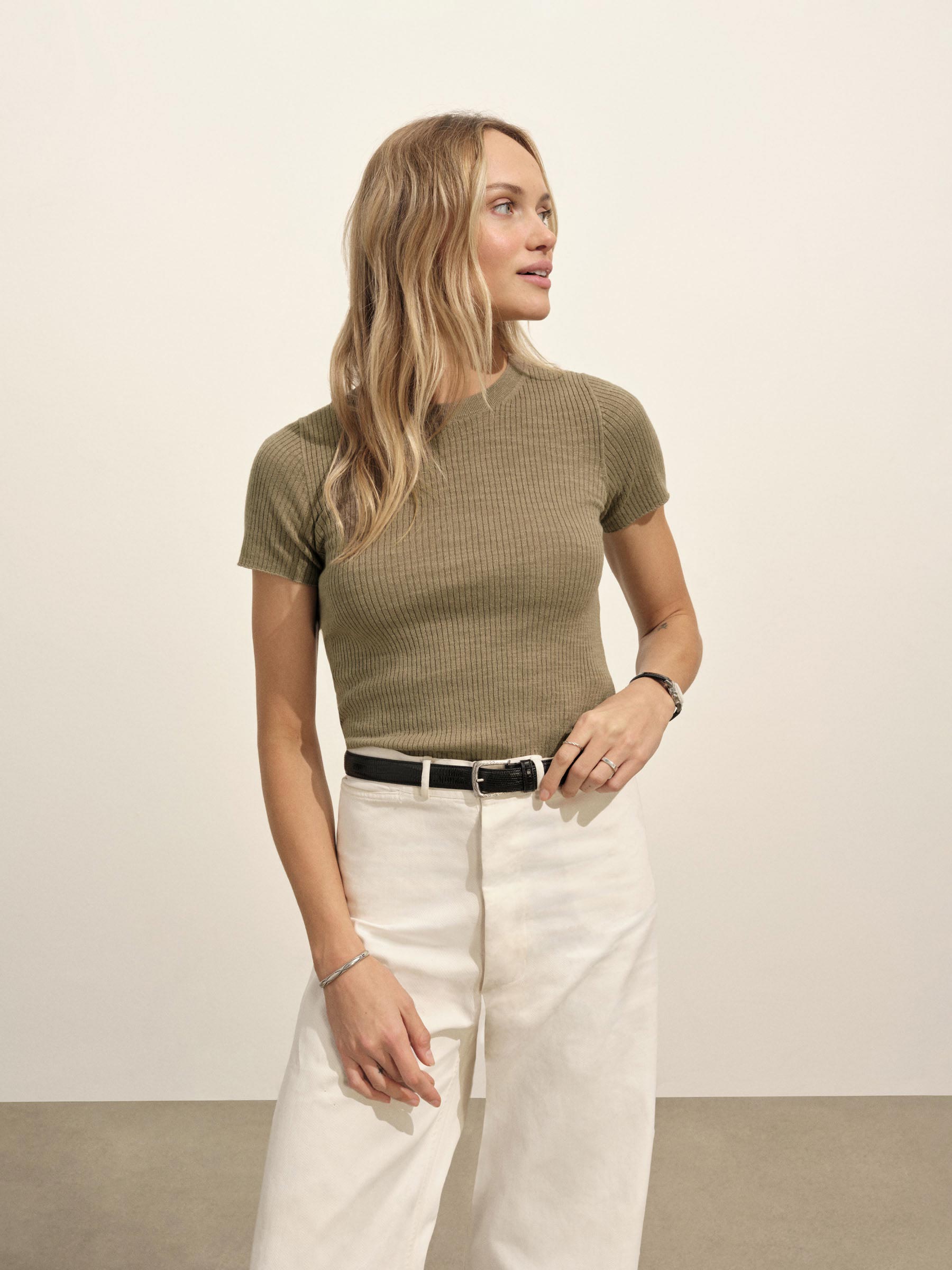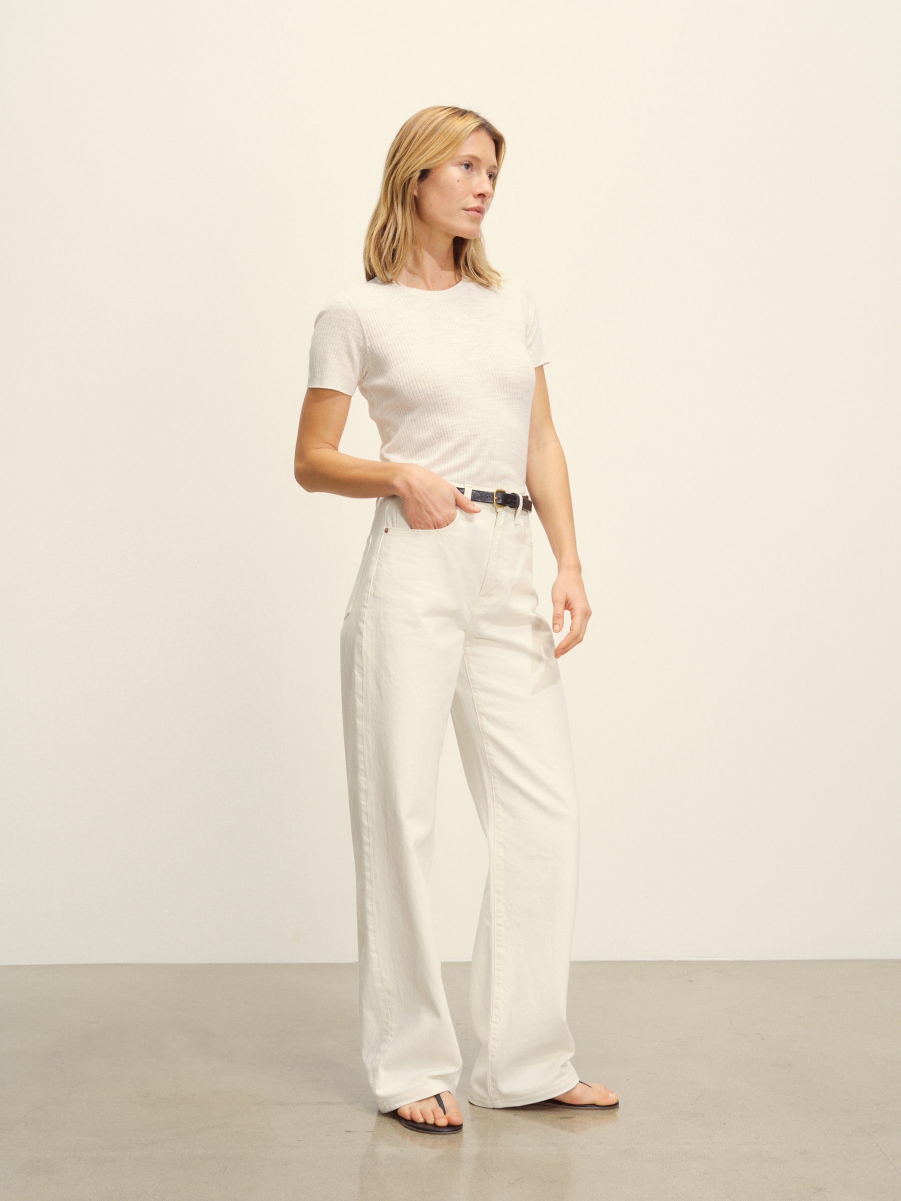 Slim fit, ribbed short-sleeve tee made from a 14 gauge linen cotton blend.