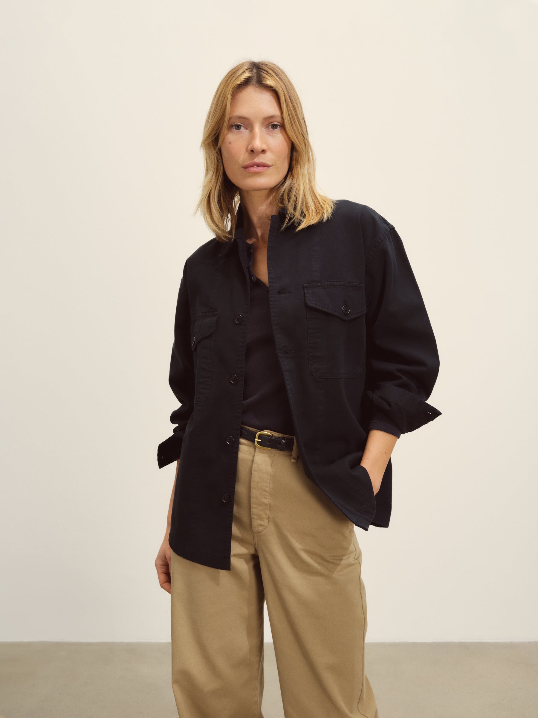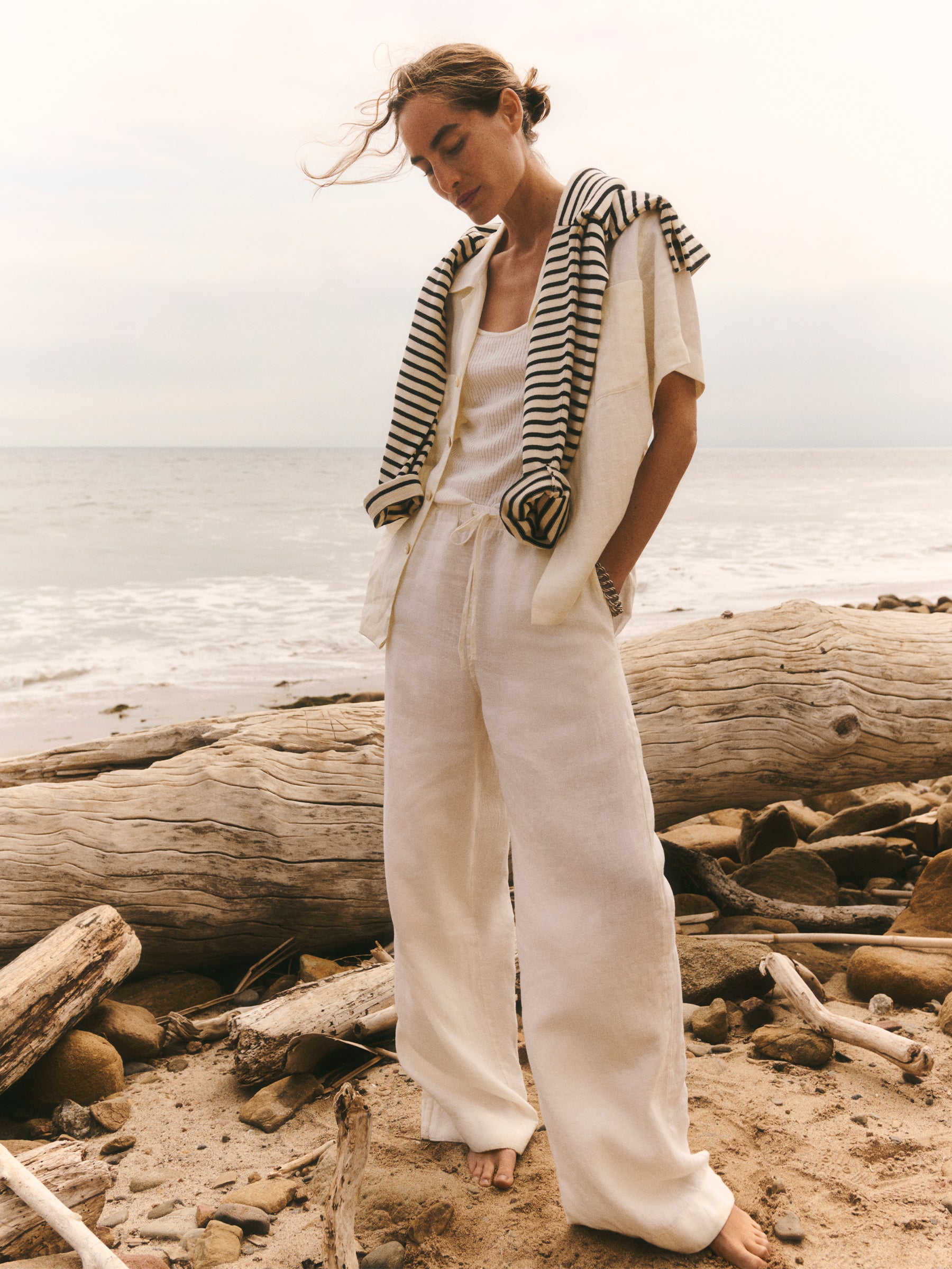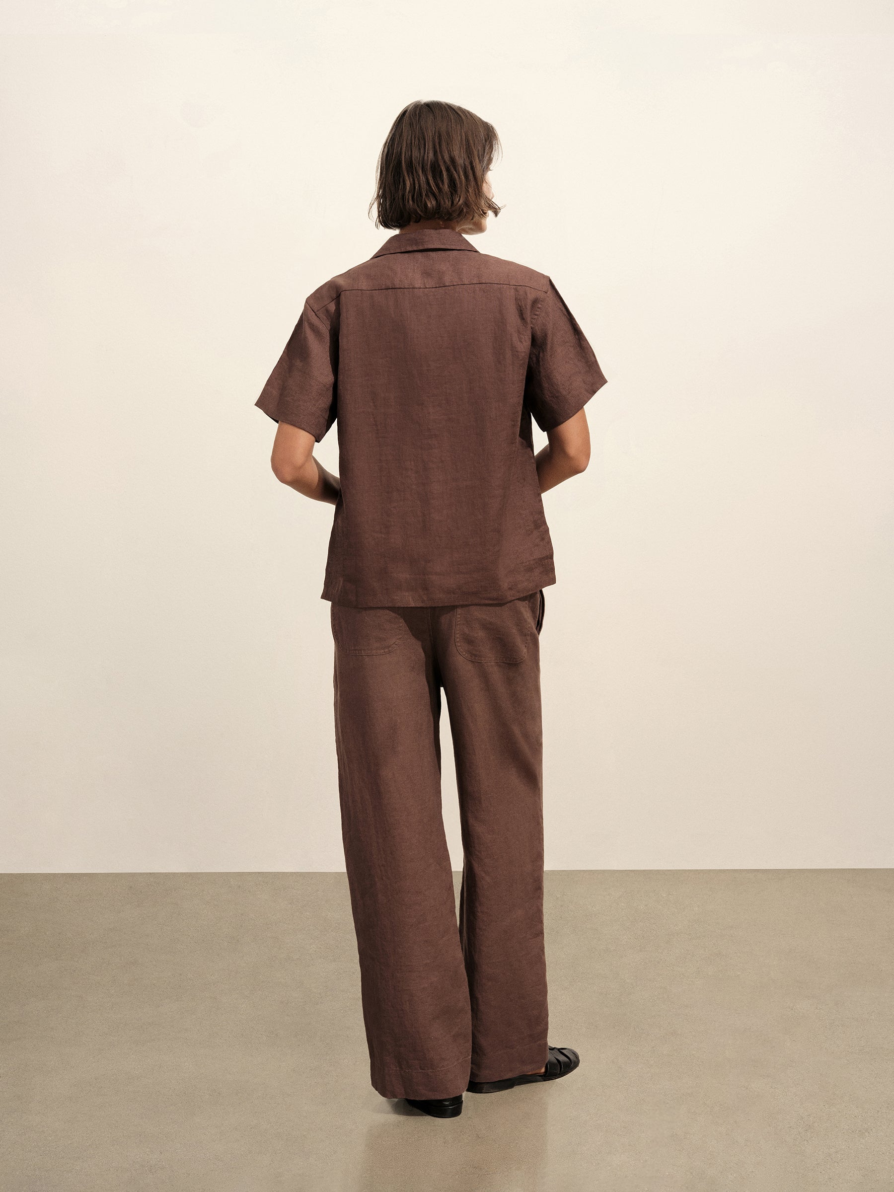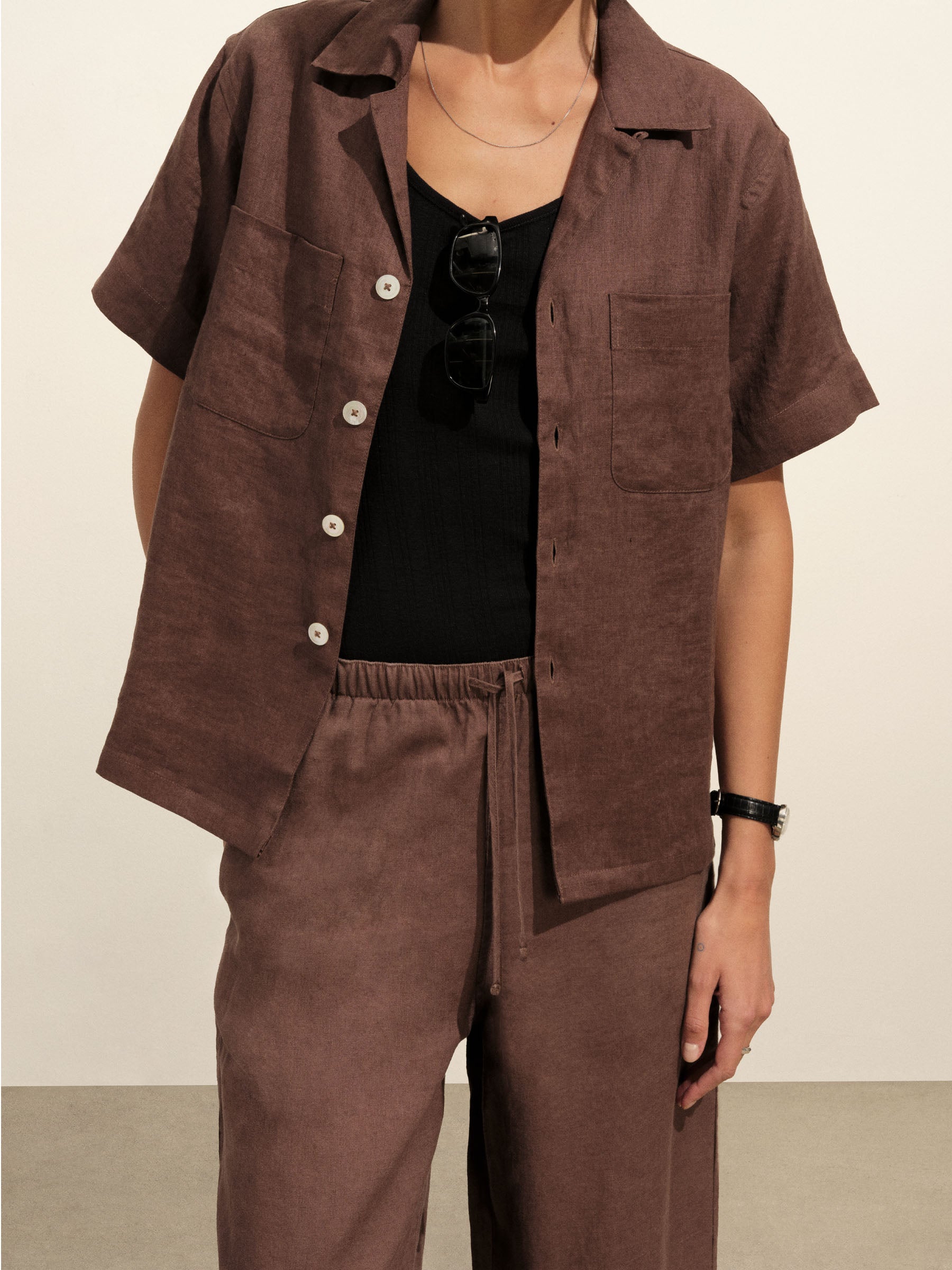 Oversized, short-sleeve camp collar shirt with a cropped body, cut from a 100% linen weave.