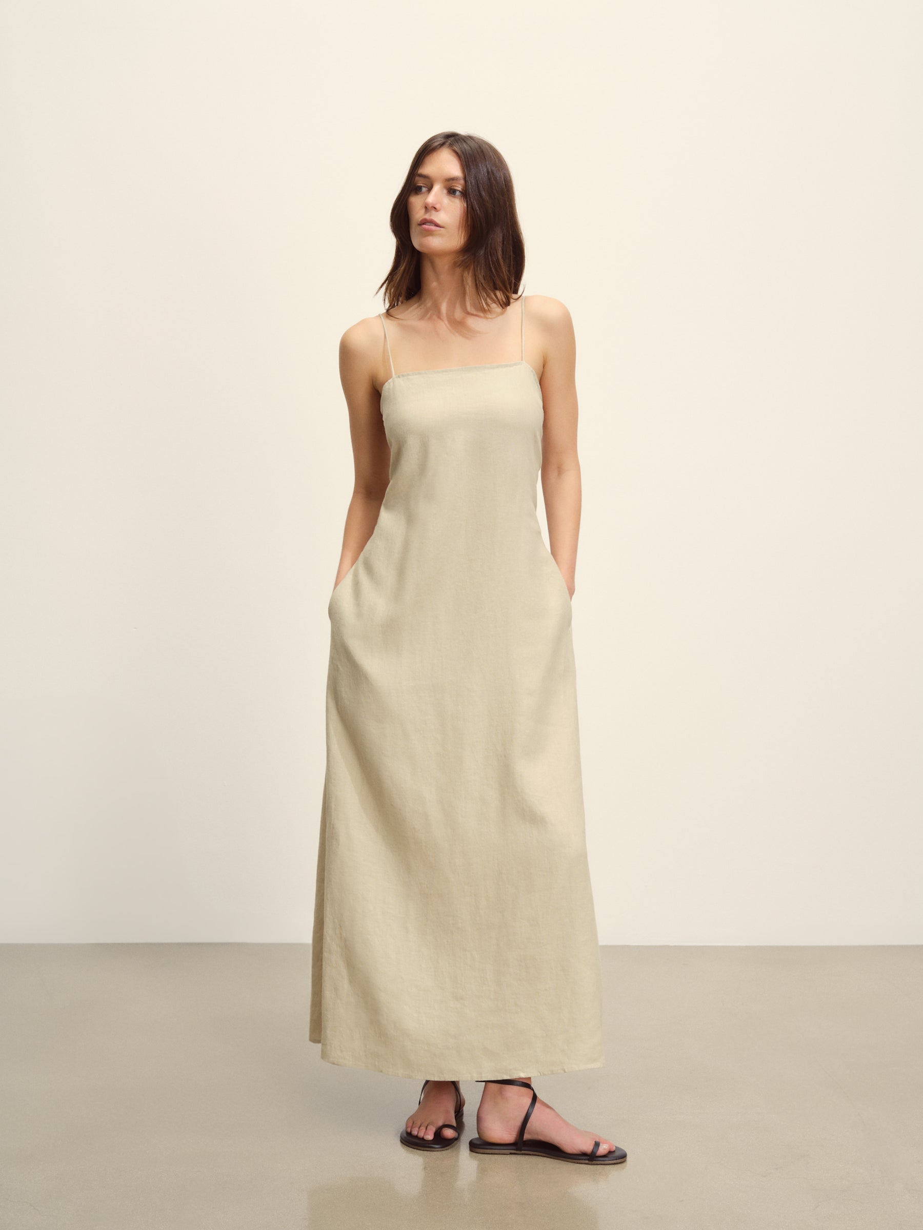 Relaxed summer sun dress in a 4.8 oz linen plainweave.