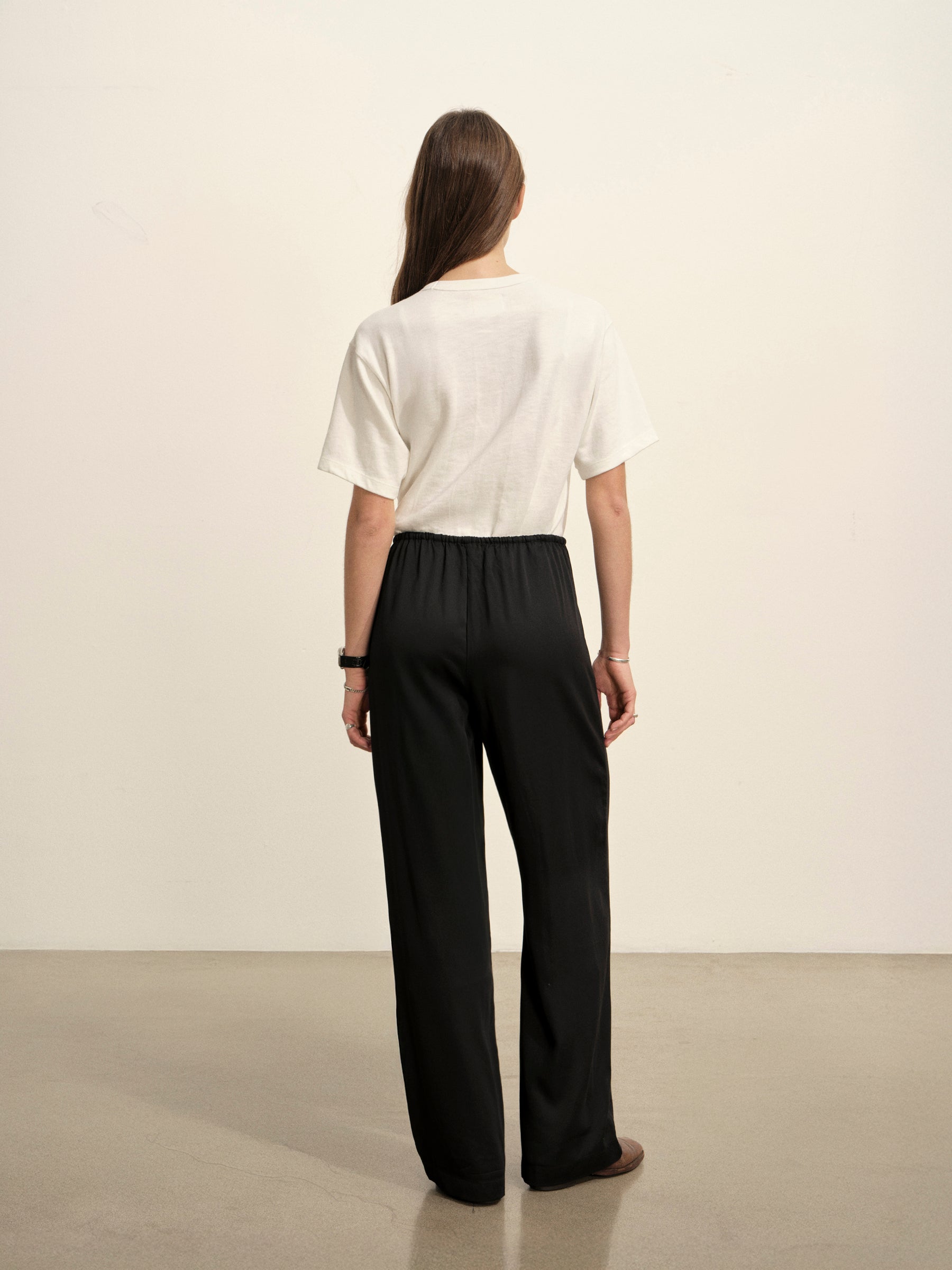 Relaxed and easy pull-on pant made from silky rayon modal.