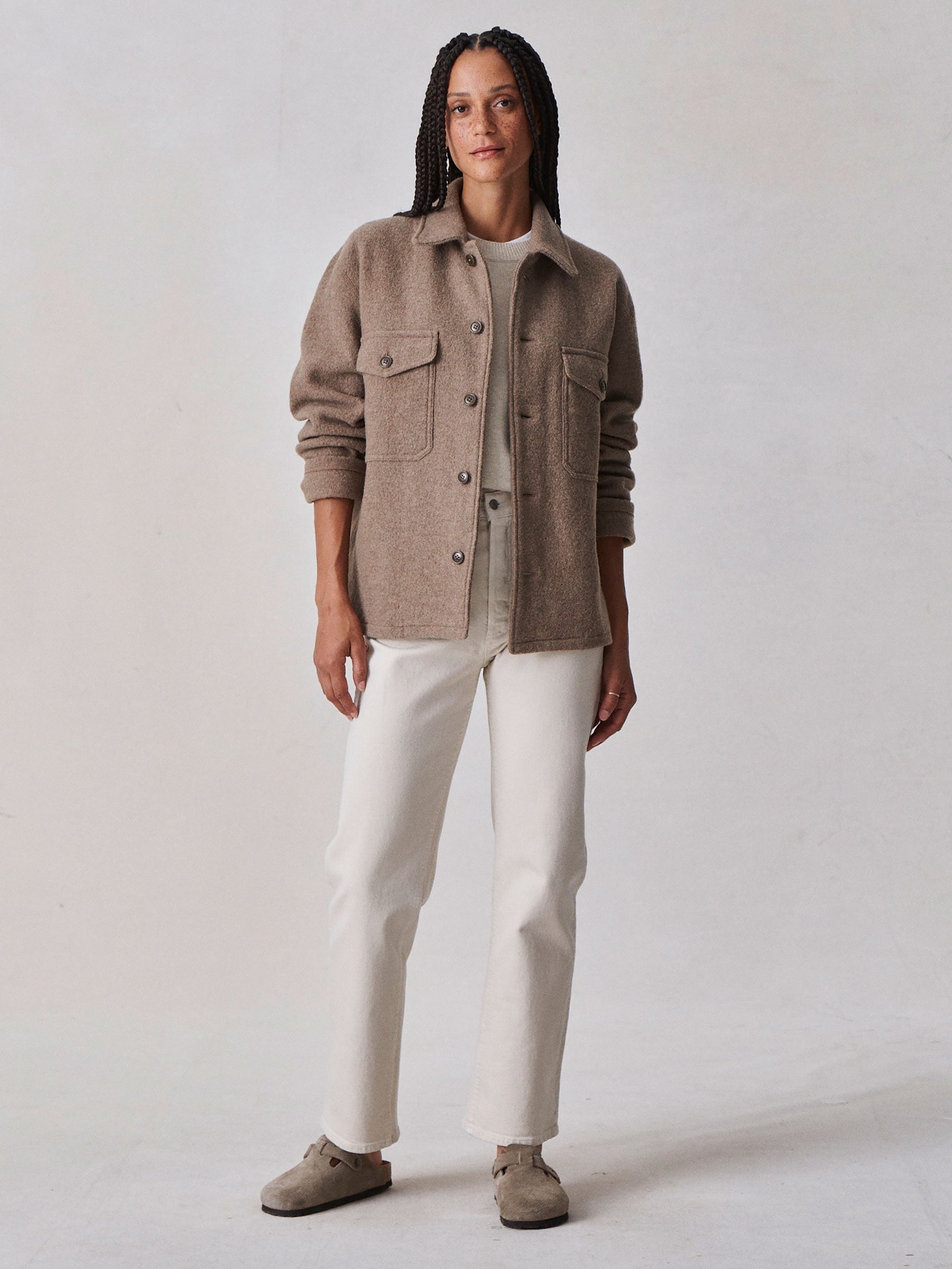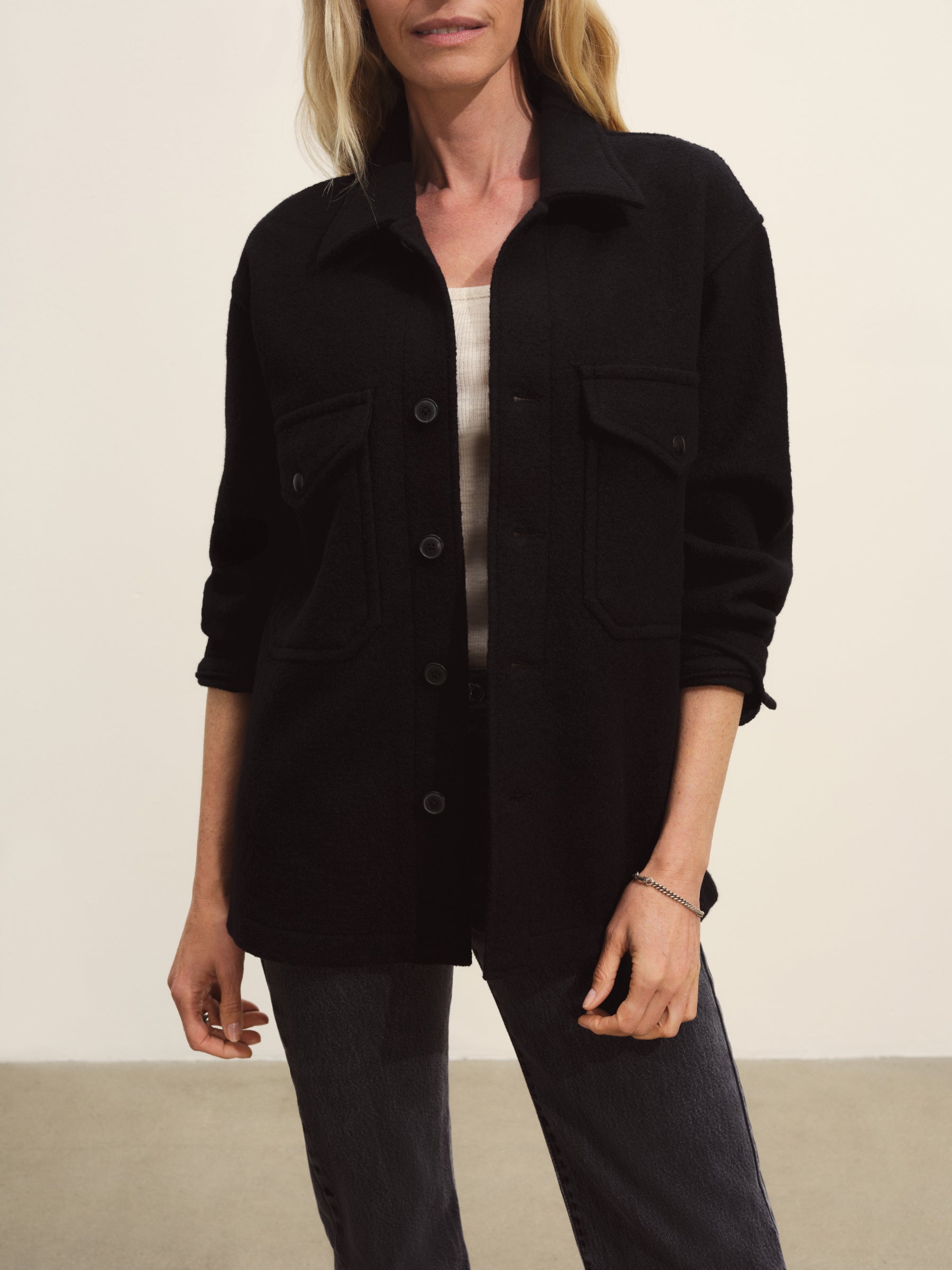 Relaxed field shirt cut from 340 GSM felted merino wool, twice boiled for improved insulation.