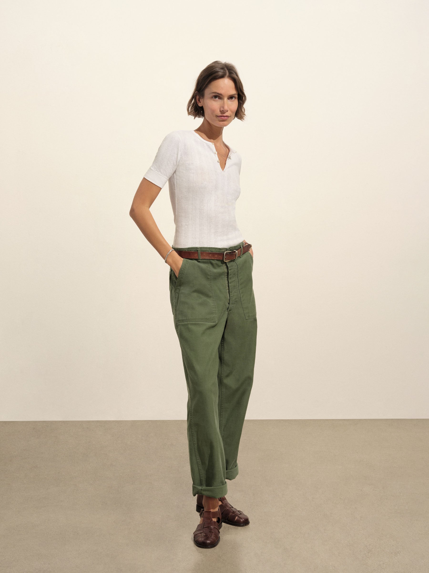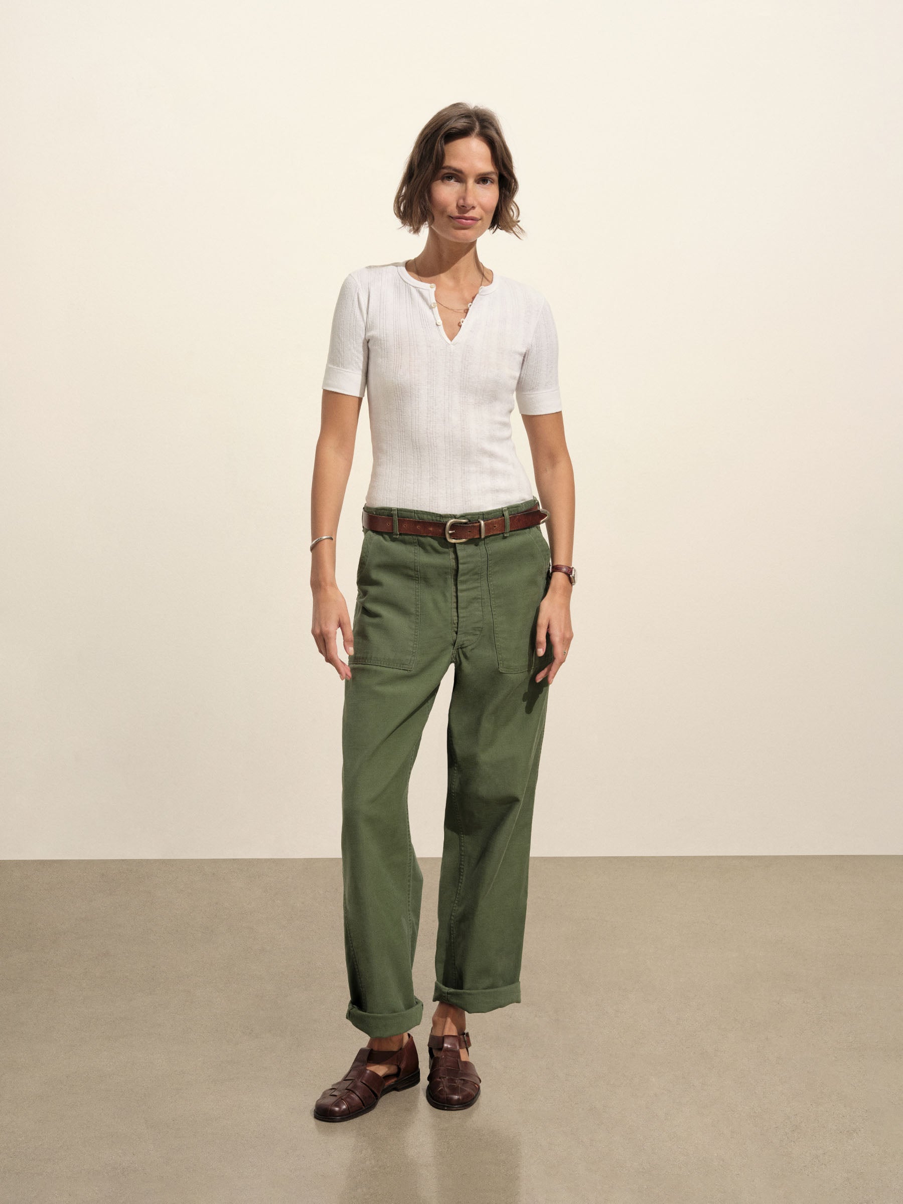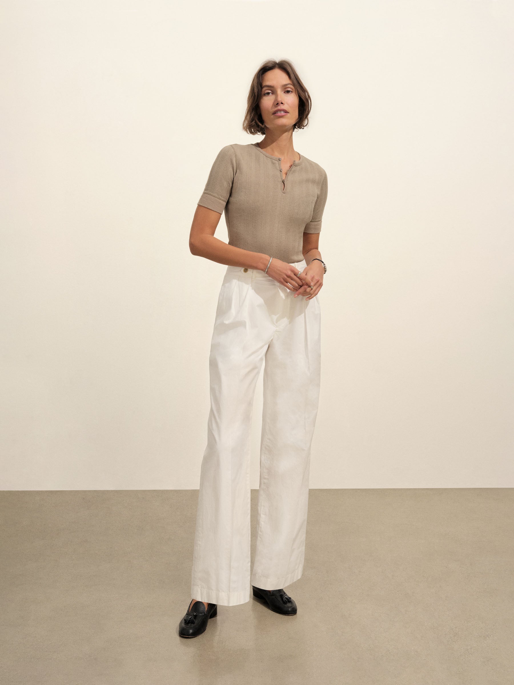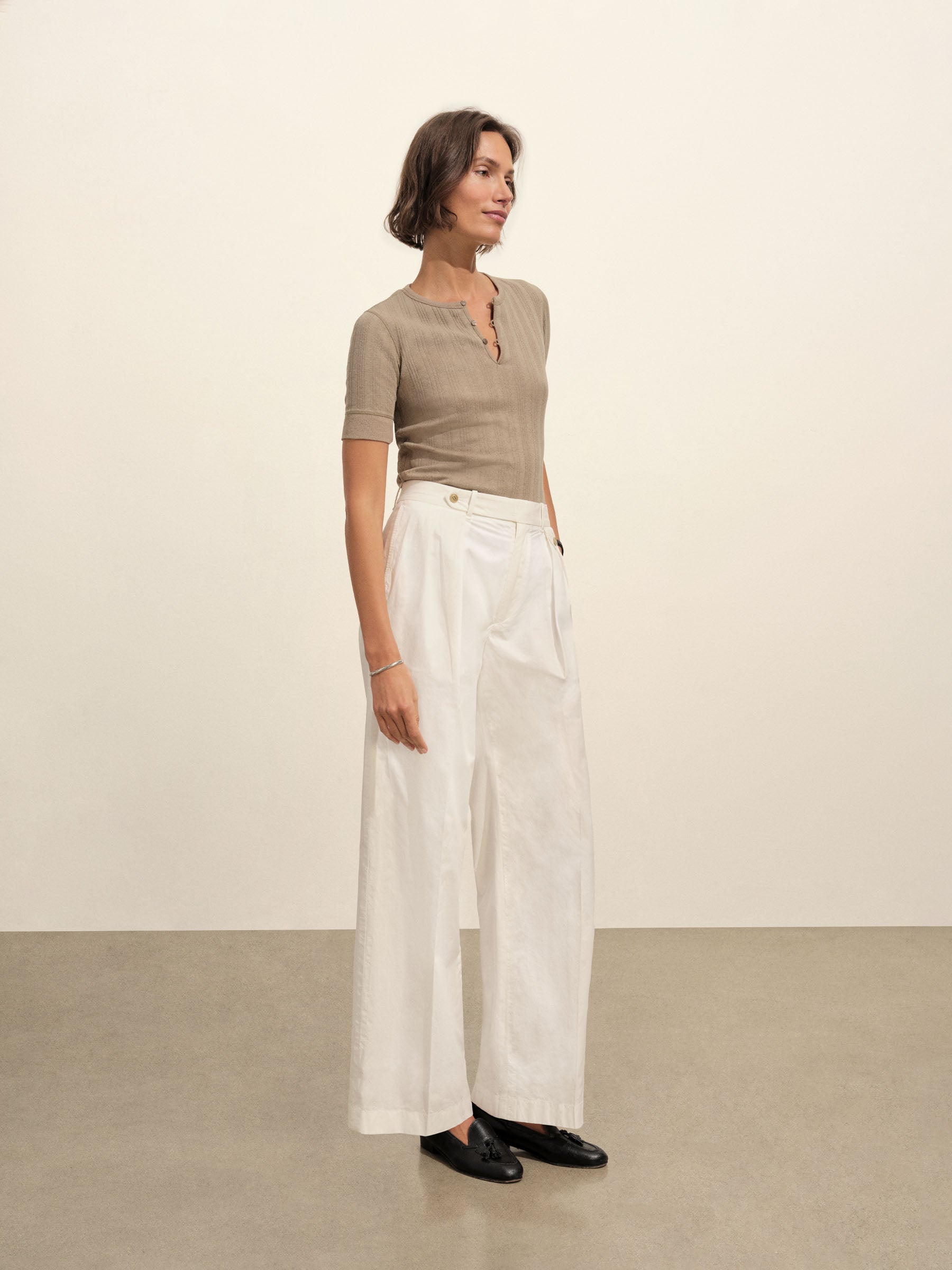 Slim-fit, military-inspired short sleeve ribbed henley, crafted from a superfine cotton blend.