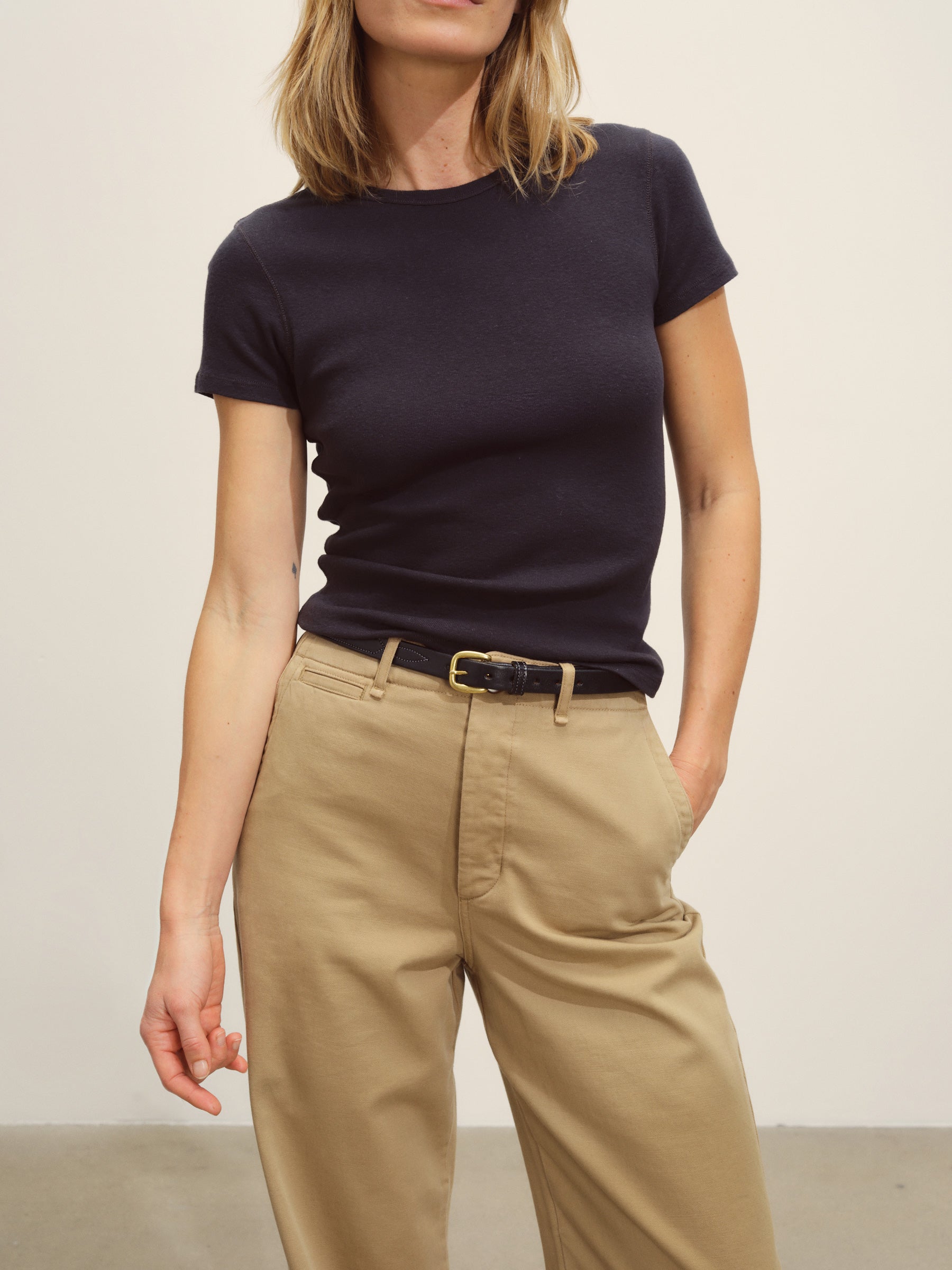 Our take on the classic ribbed baby tee, made from a superfine cotton blend.