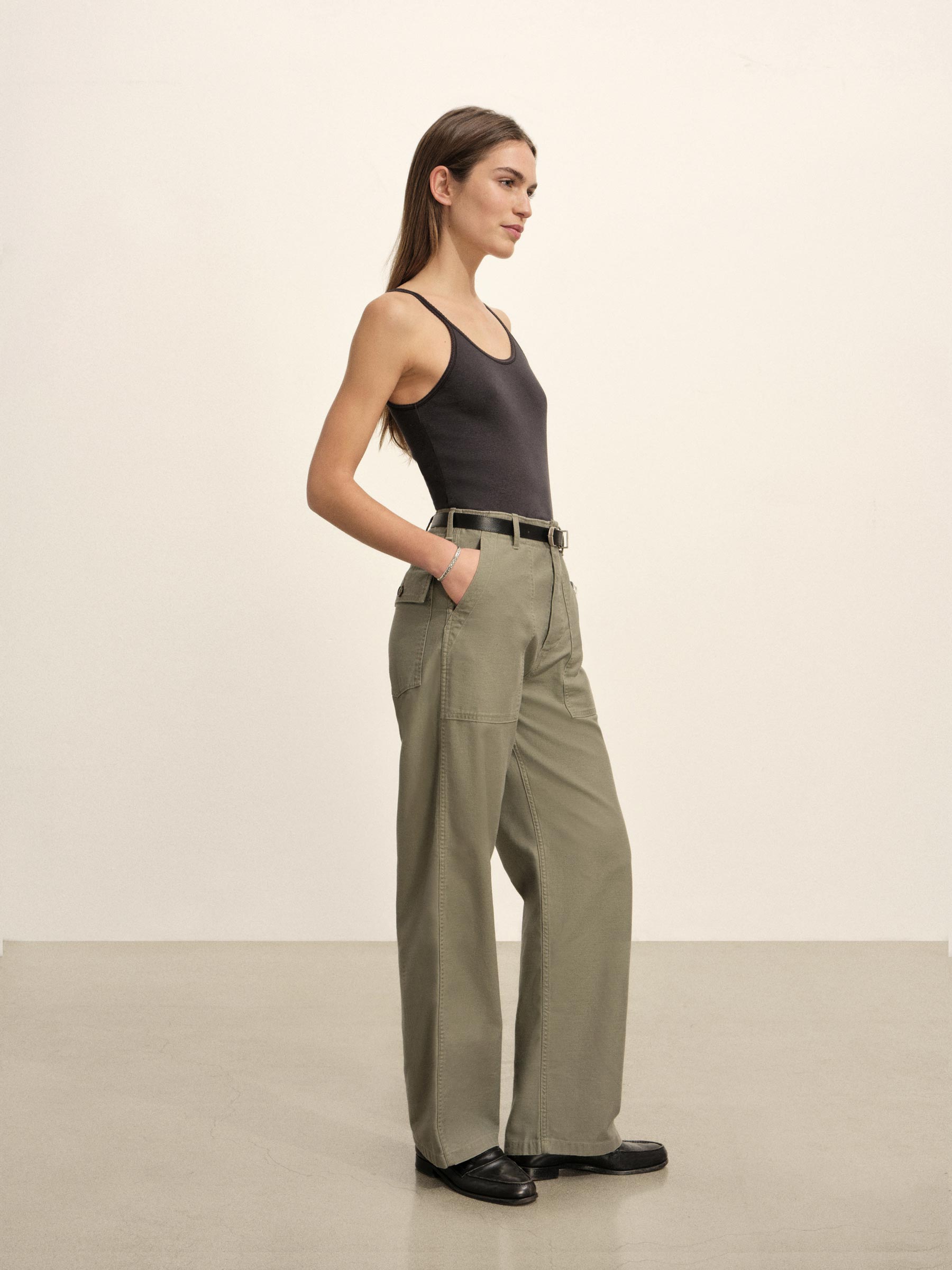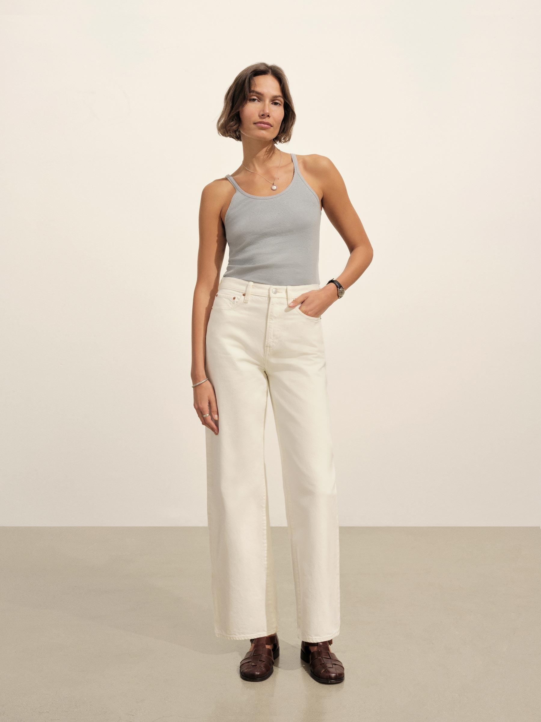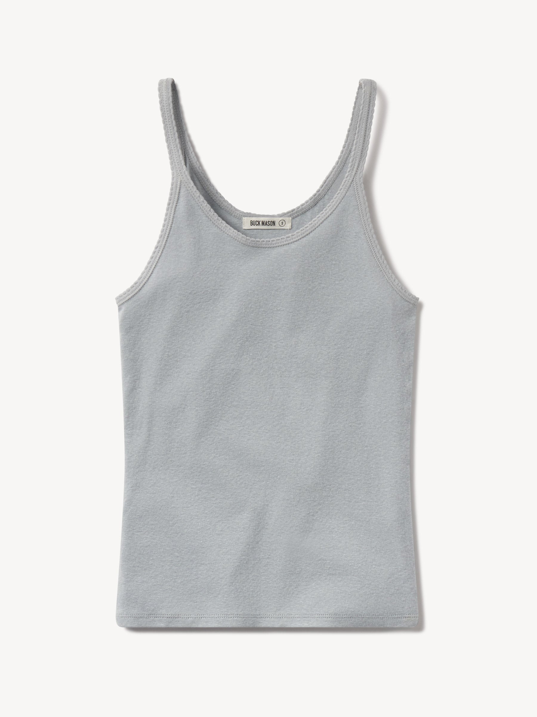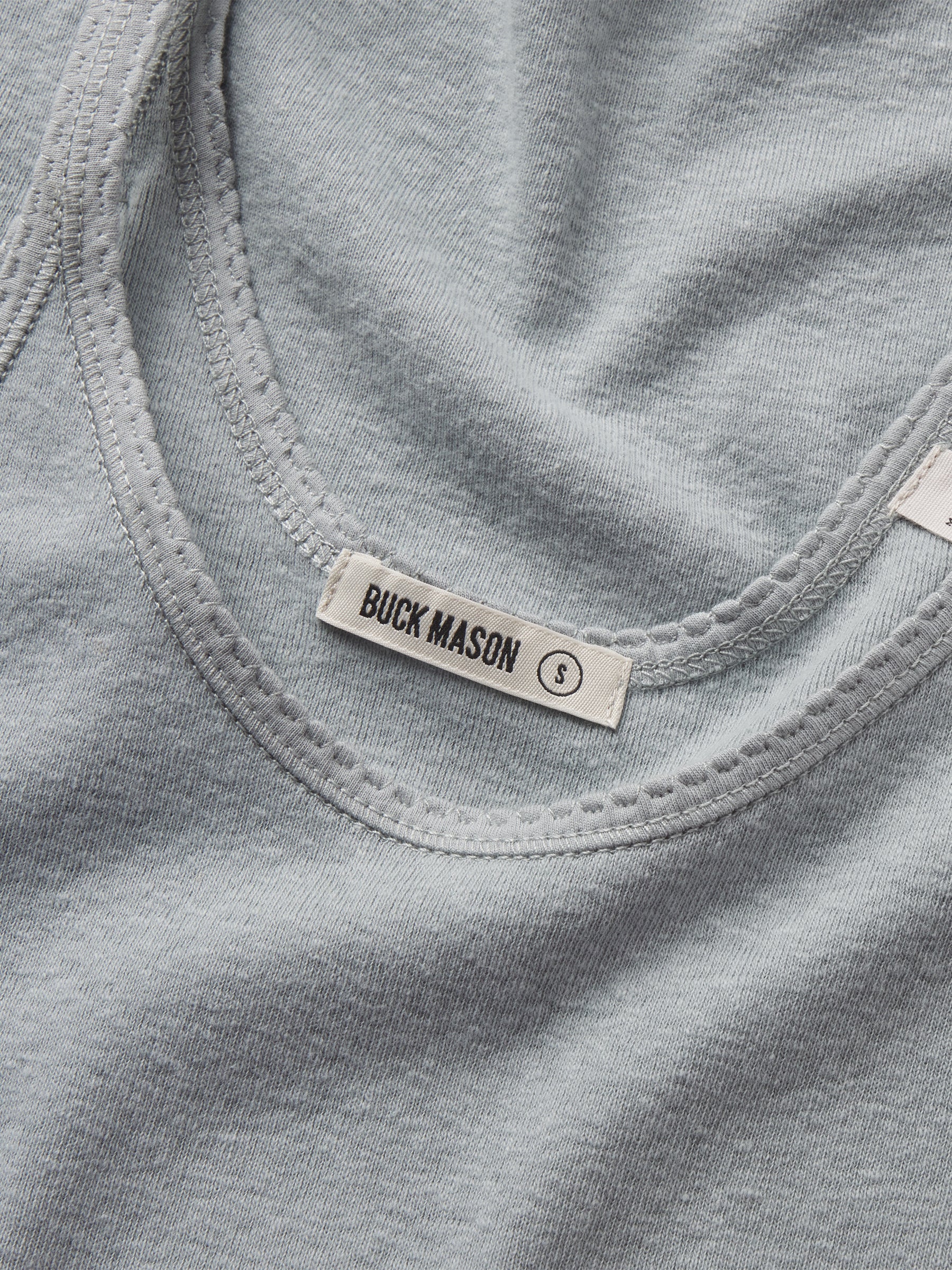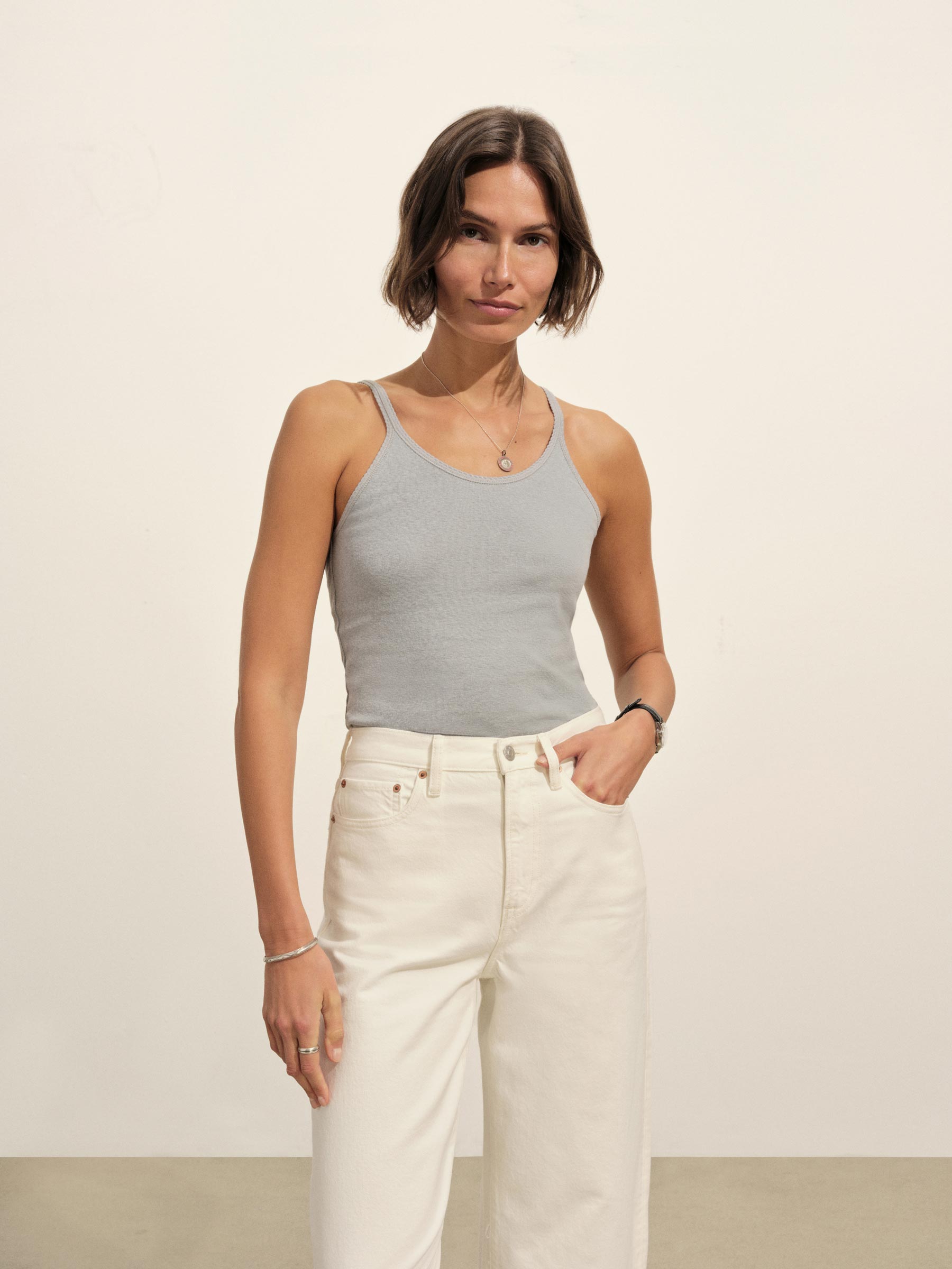 Slim fit scoop tank made from 60% recycled cotton and 40% cotton.