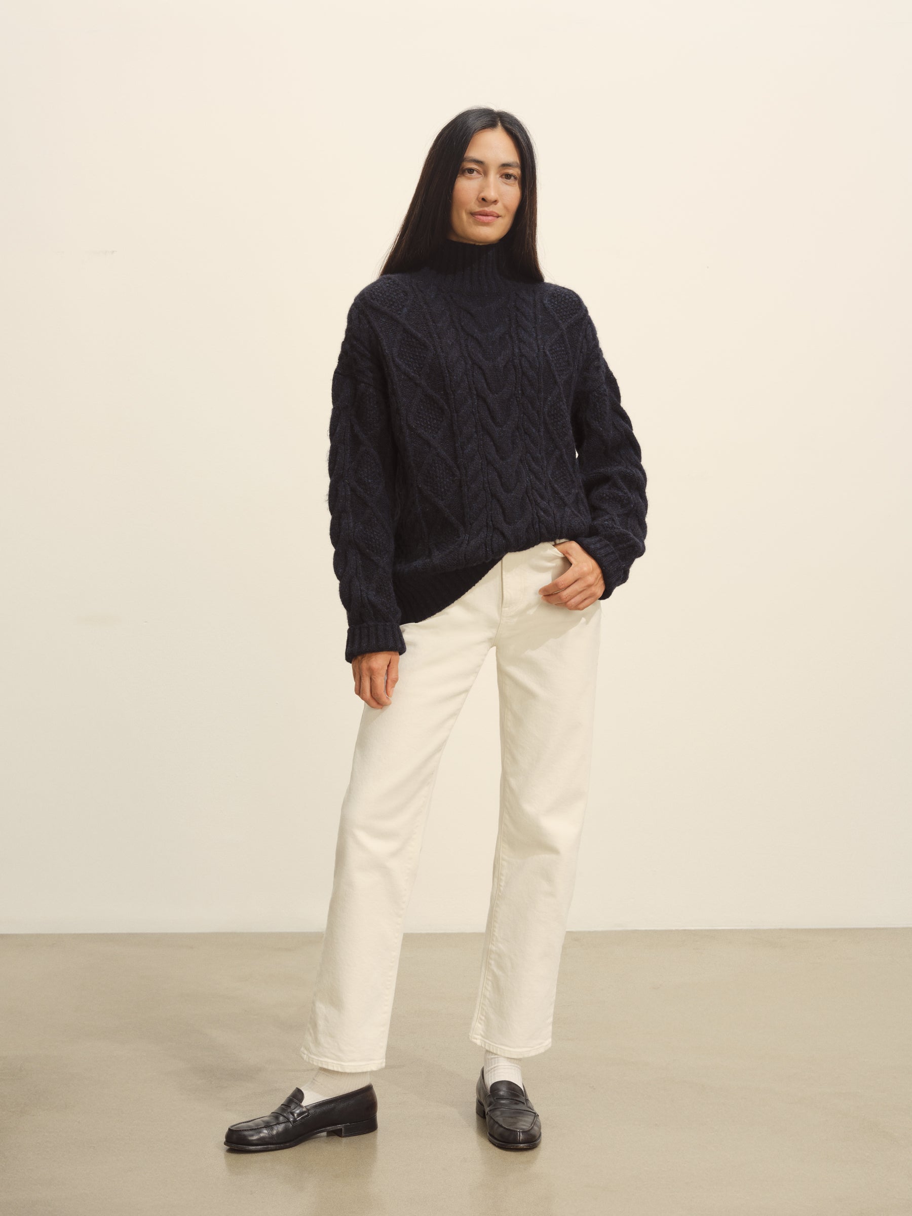 A luxuriously cozy cable-knit sweater made from superfine Peruvian alpaca and merino wool.