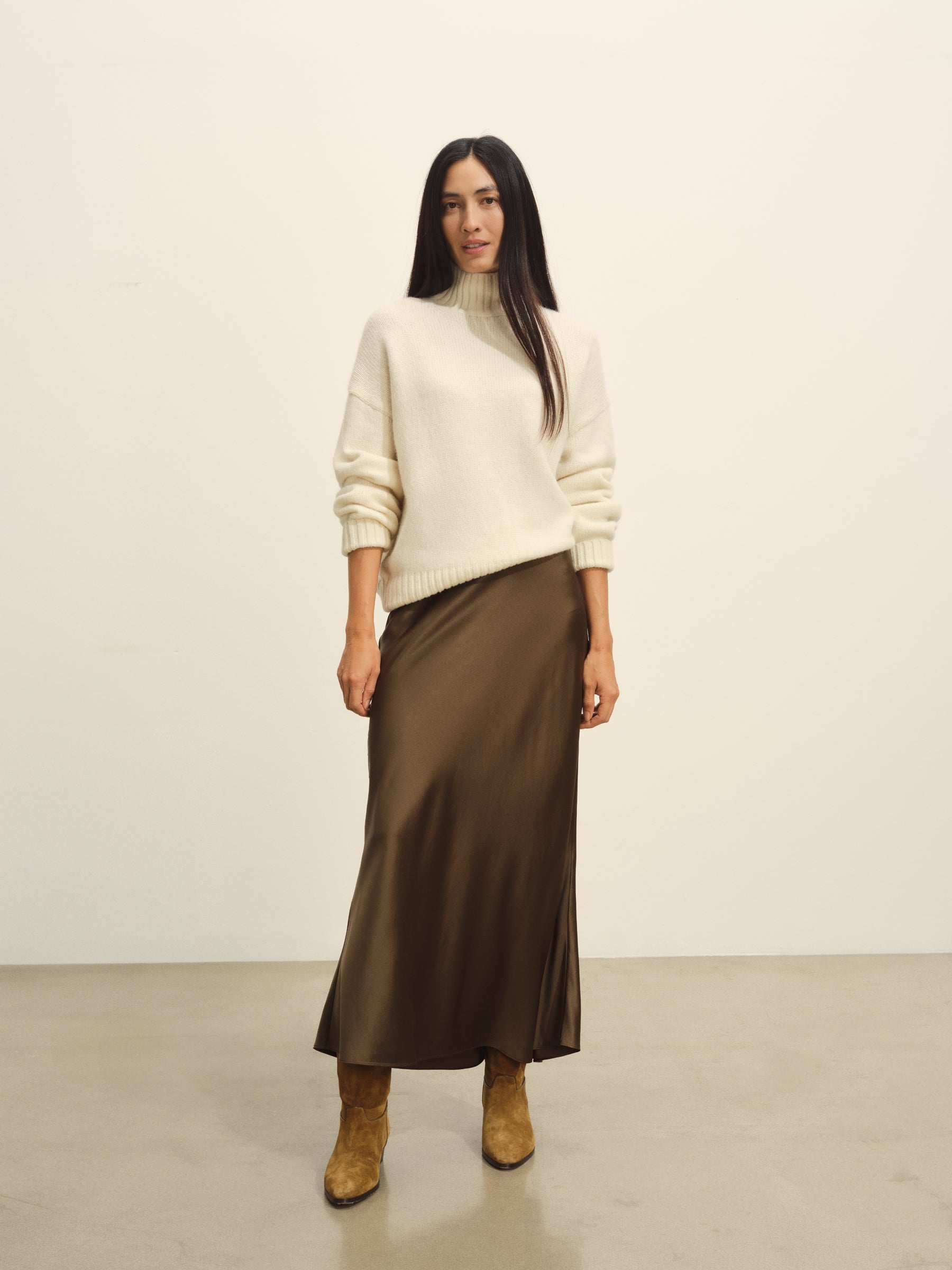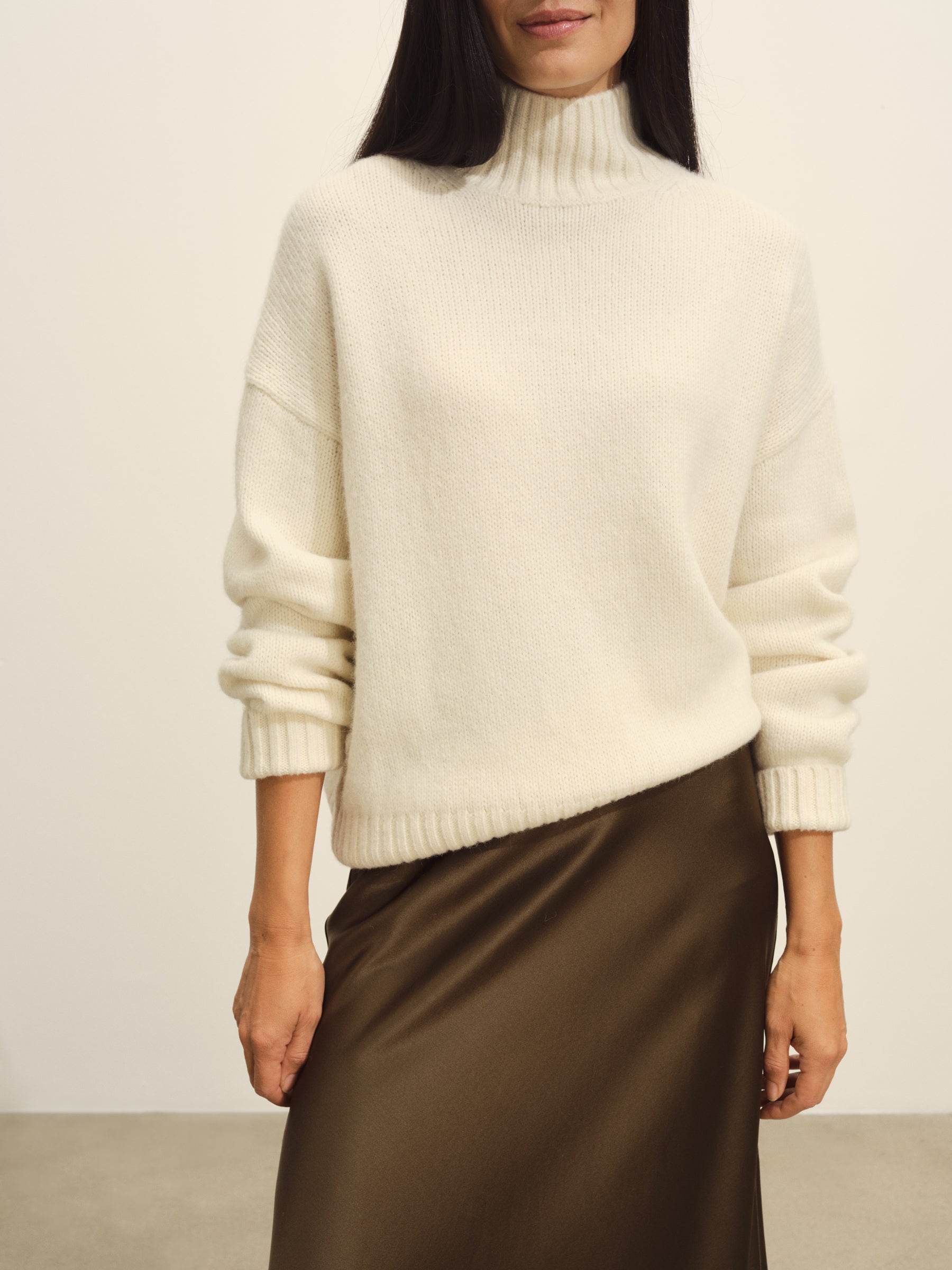 Relaxed turtleneck in a five-gauge jersey knit from an alpaca/merino wool blend.
