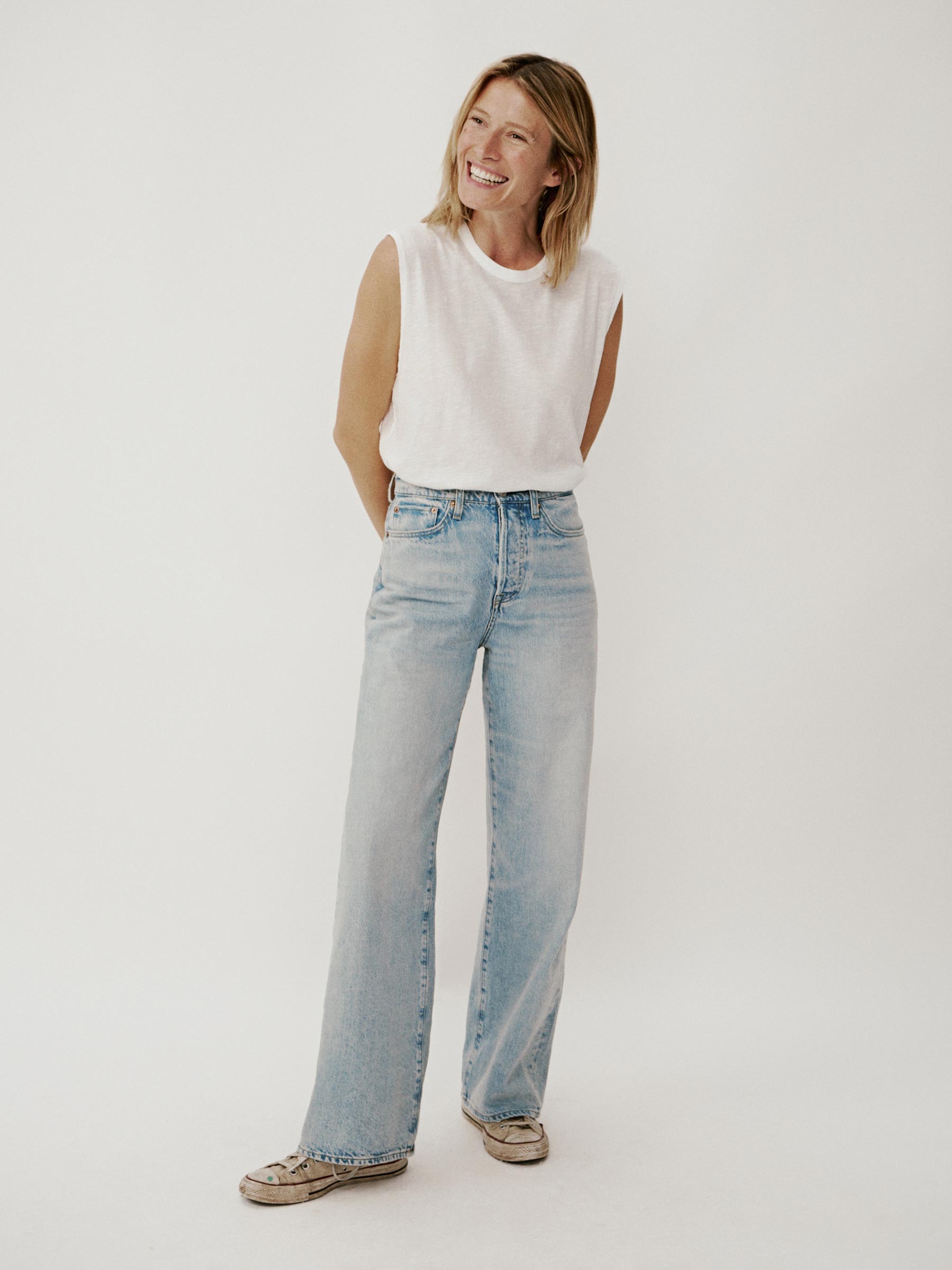 Classic wide leg relaxed fit jean.