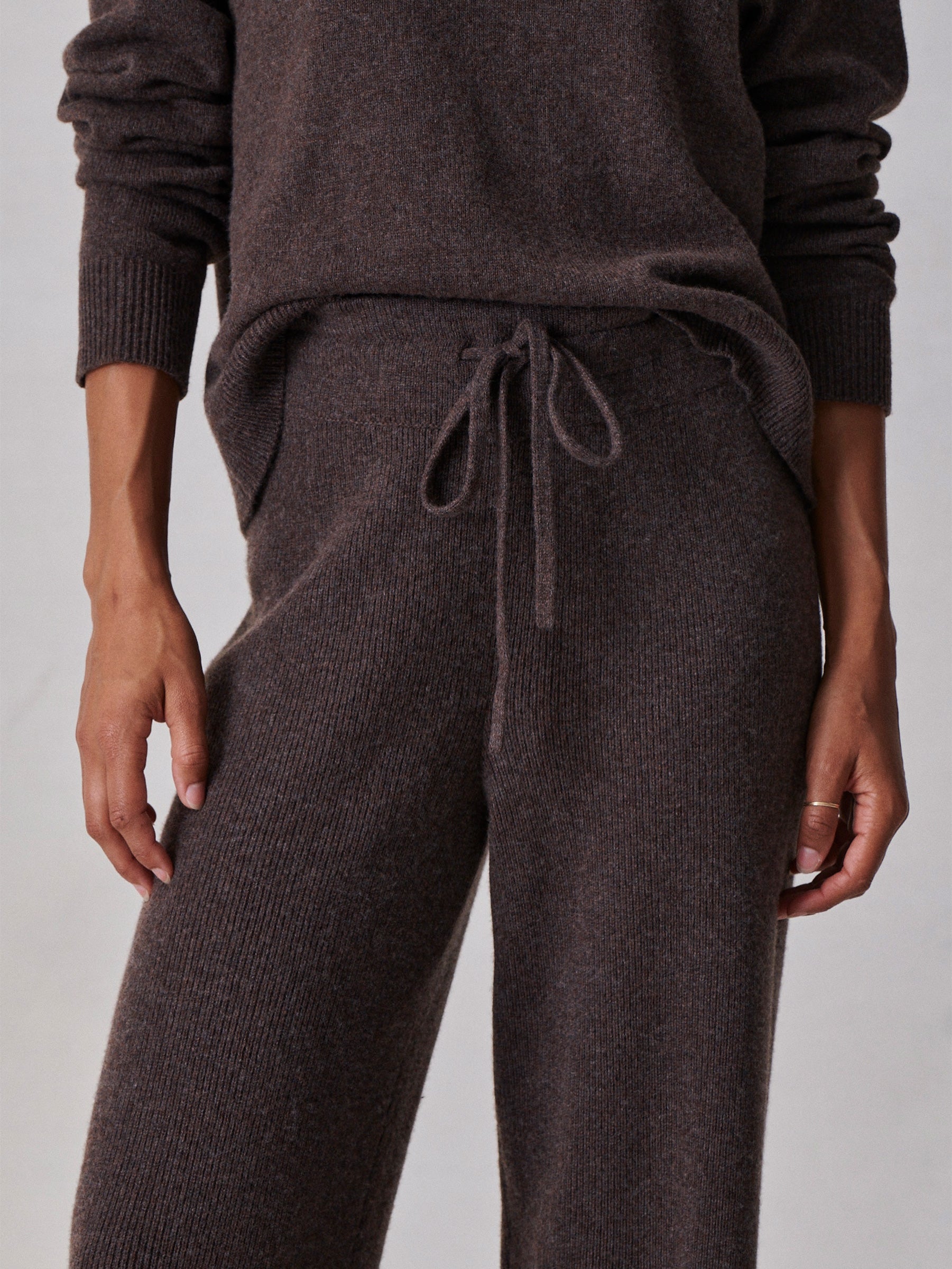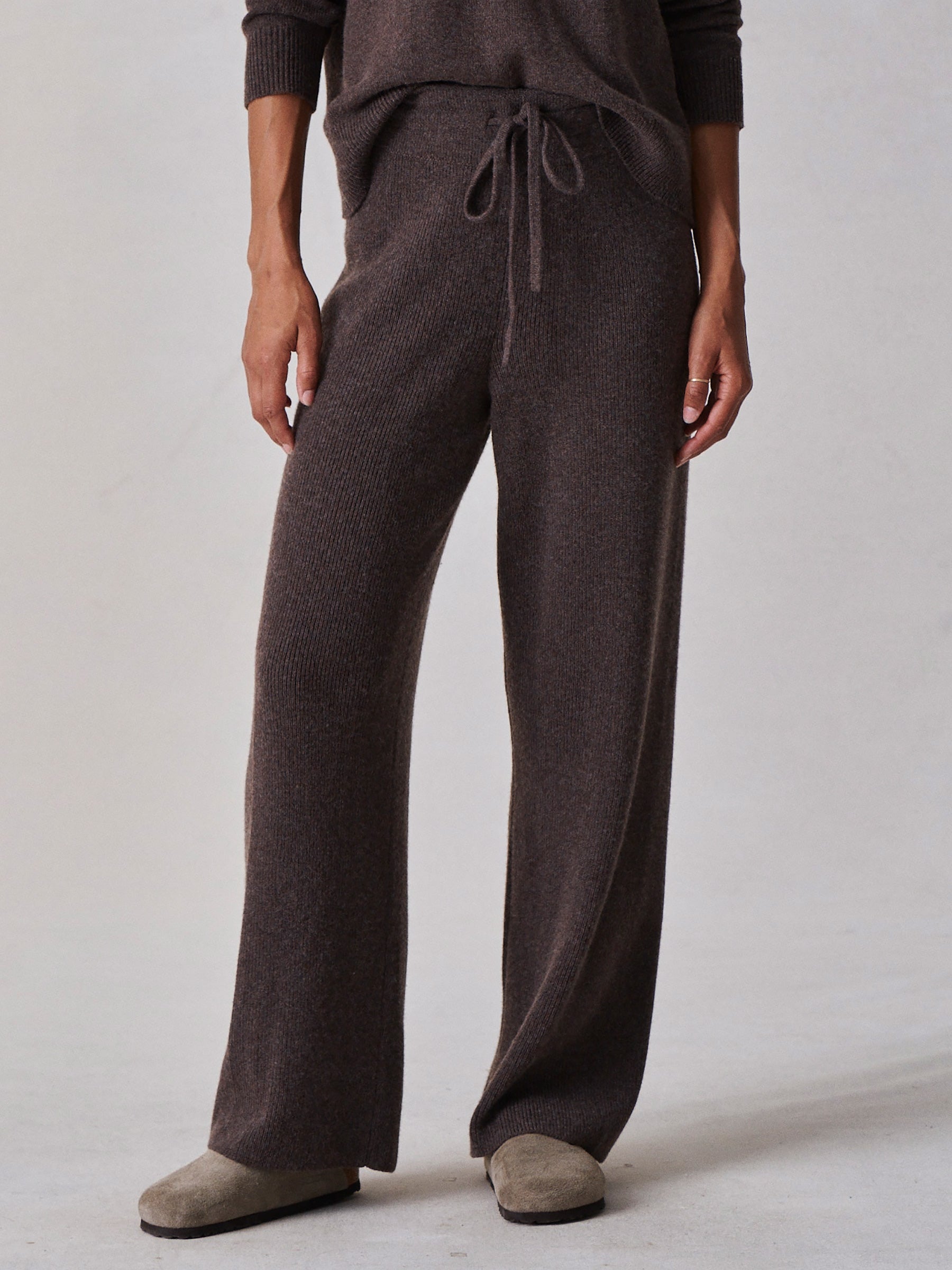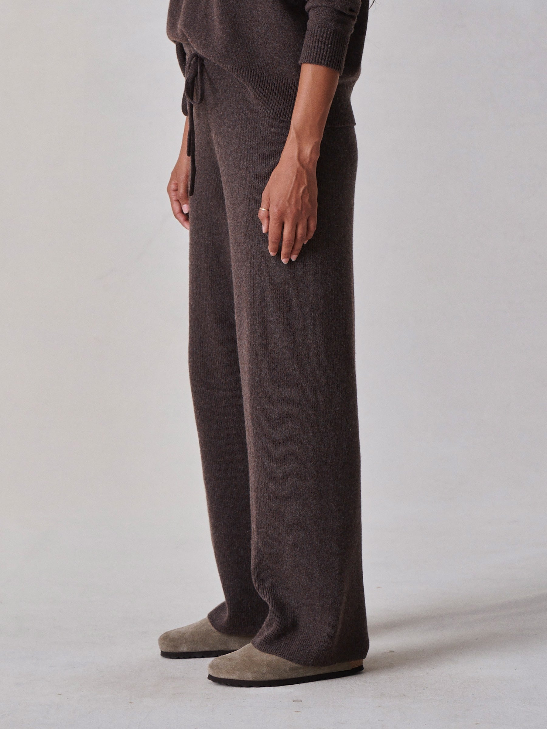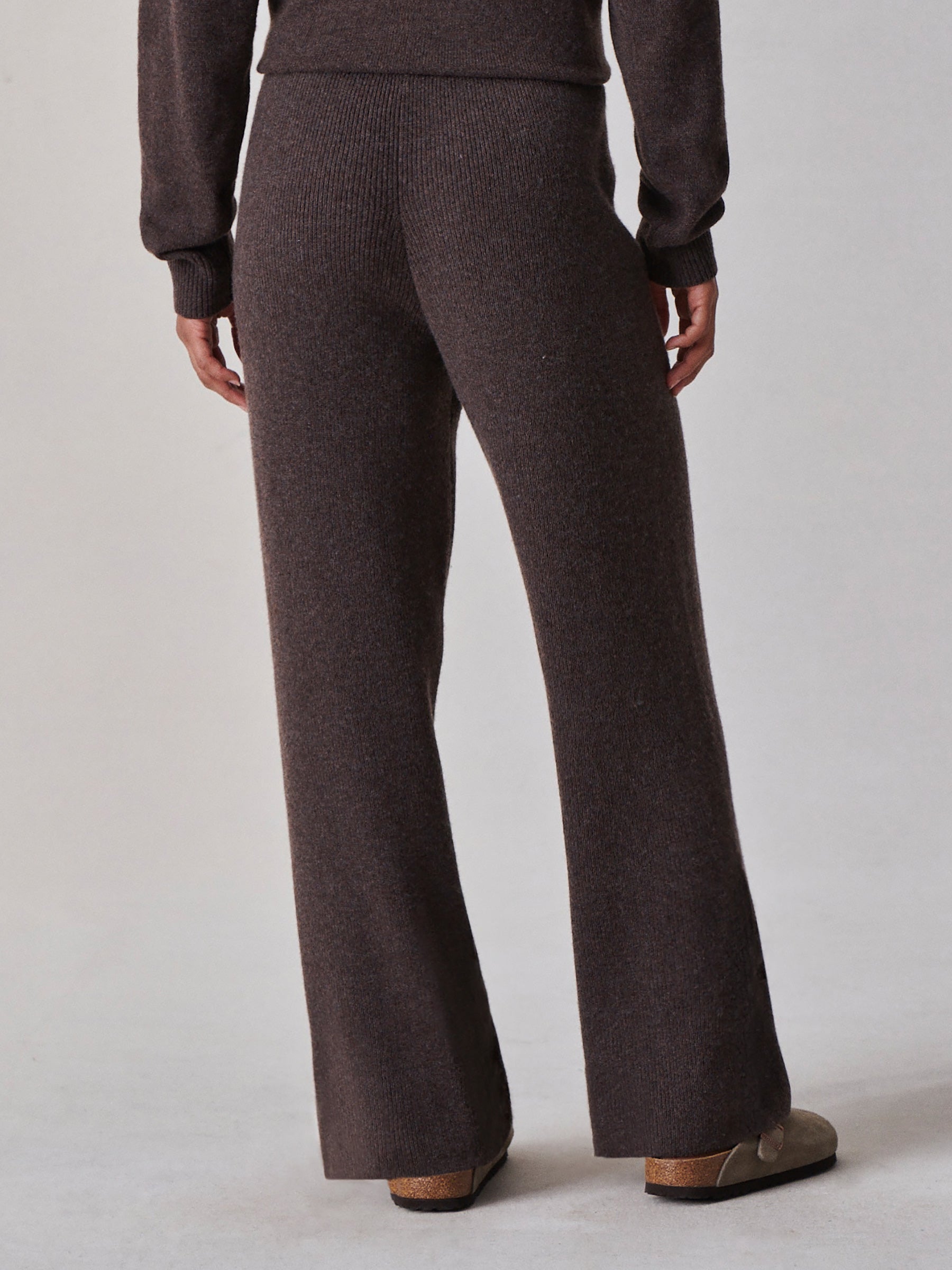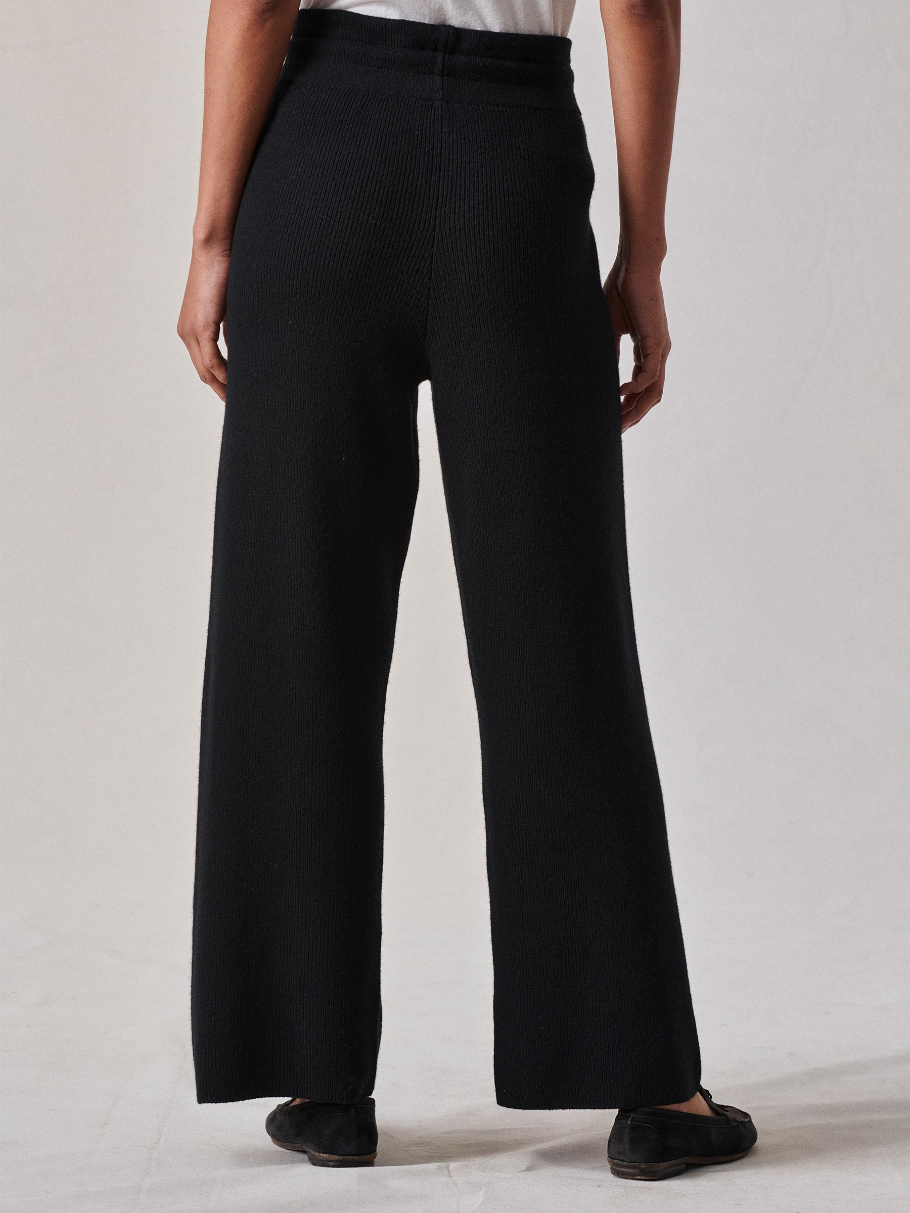 High-waisted wide leg pant knit from a 7 gauge merino wool/organic cotton blend.
