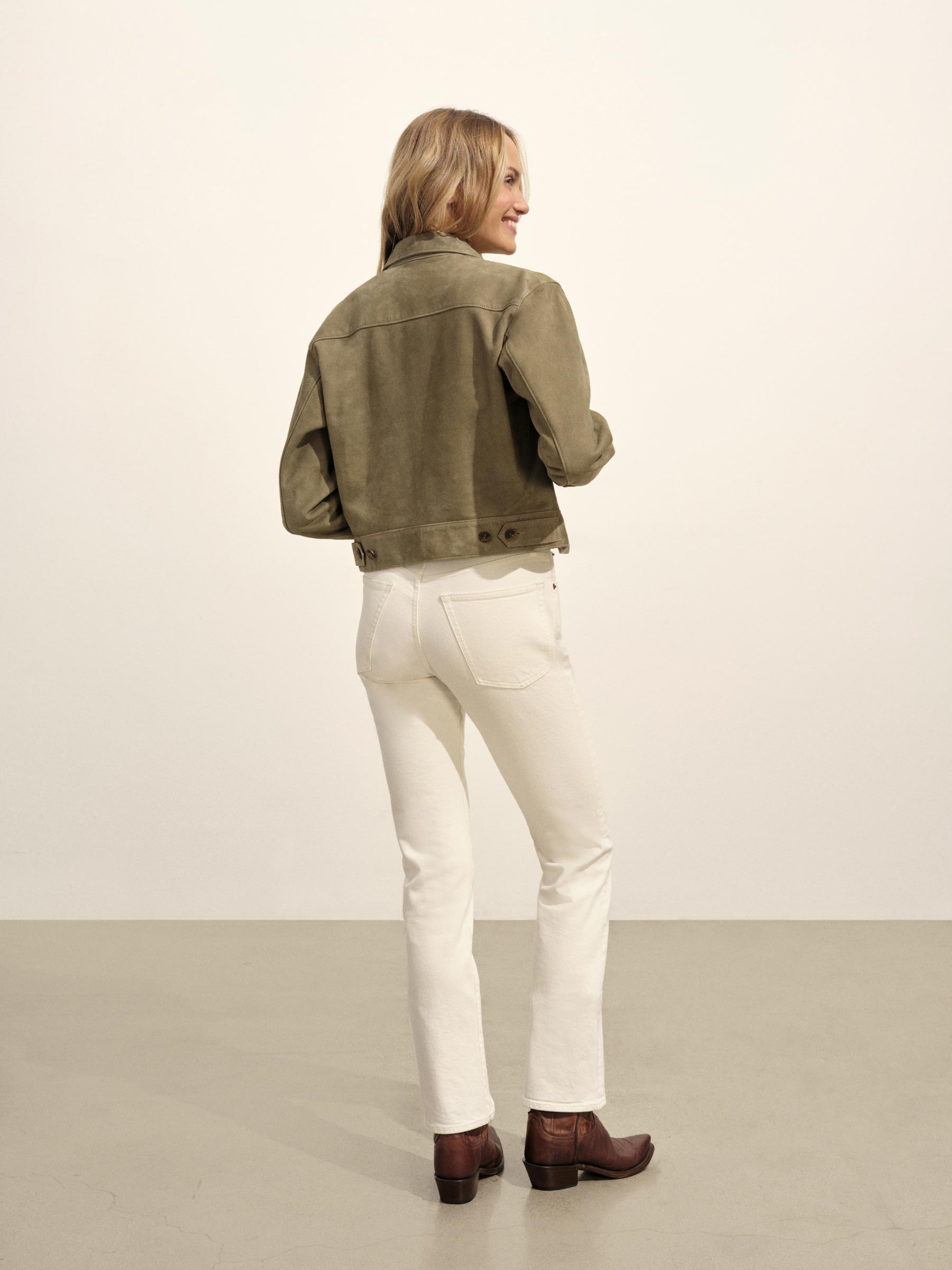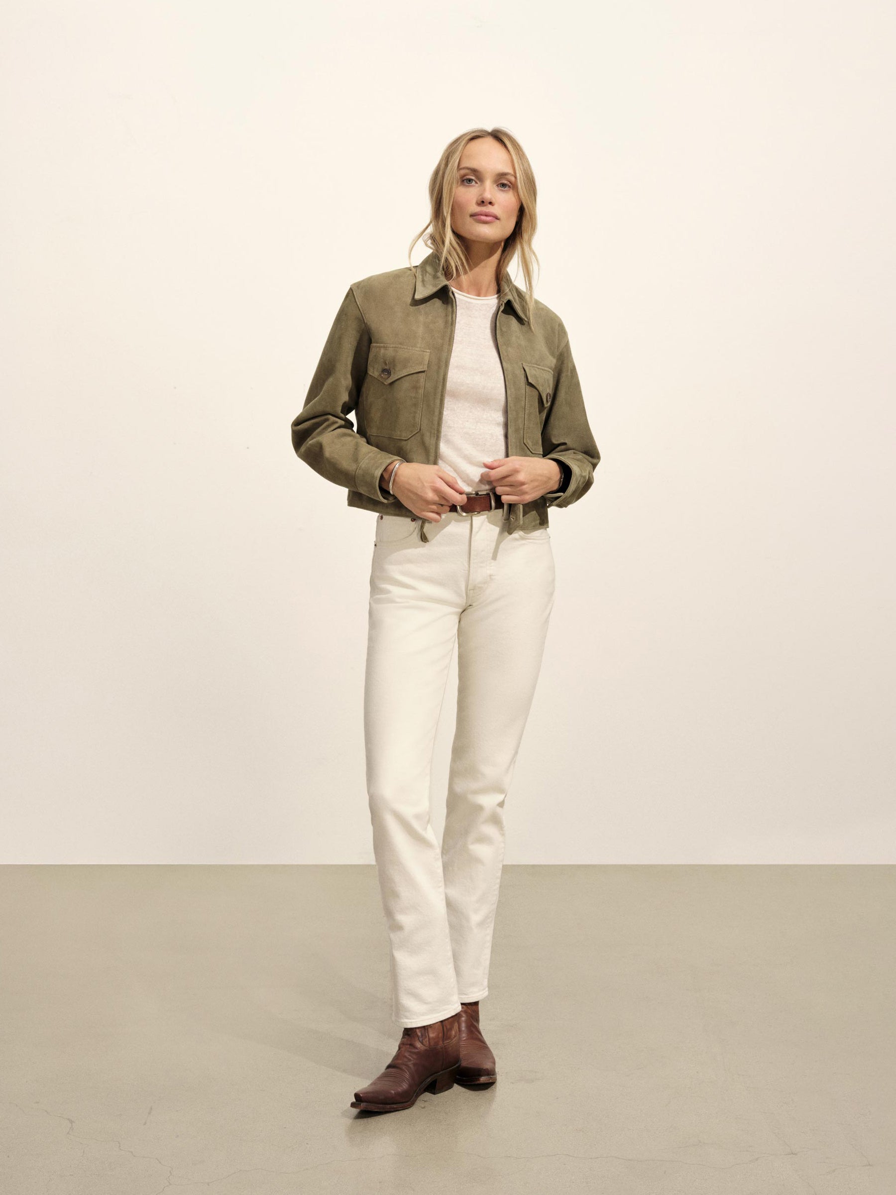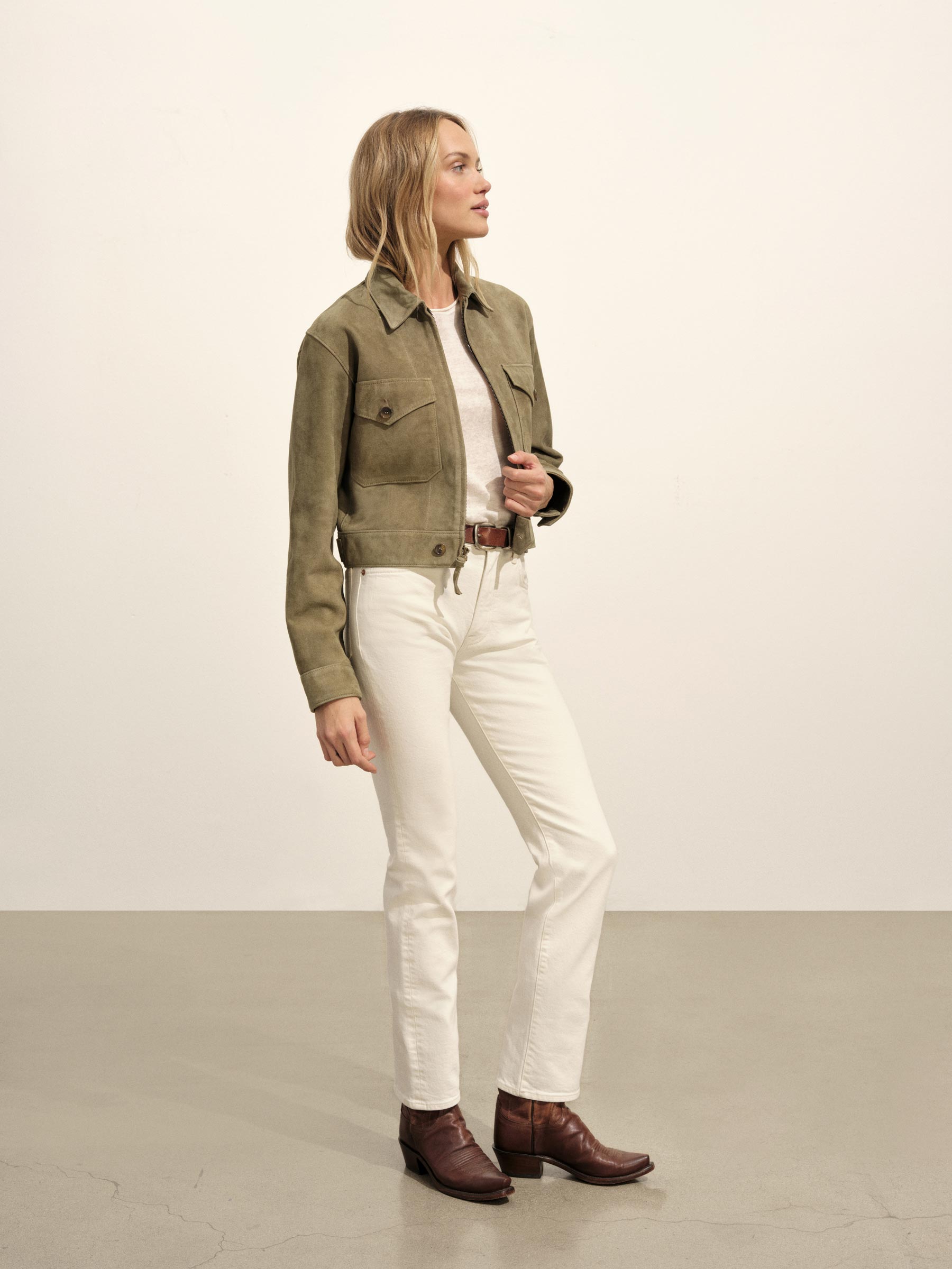 A relaxed work jacket hand-cut from full grain lambskin with a sueded face. This is an elevated statement jacket suitable for every day.