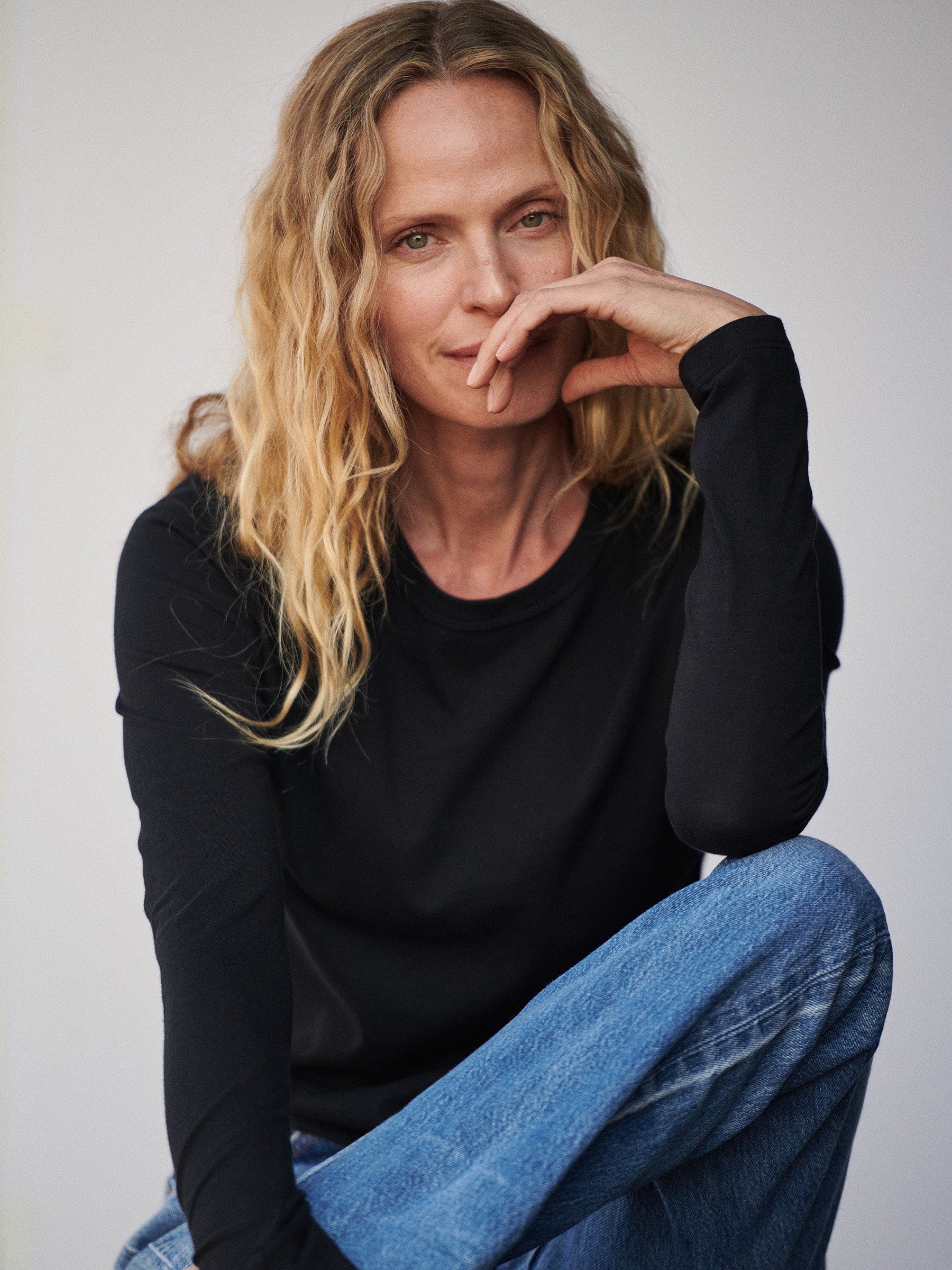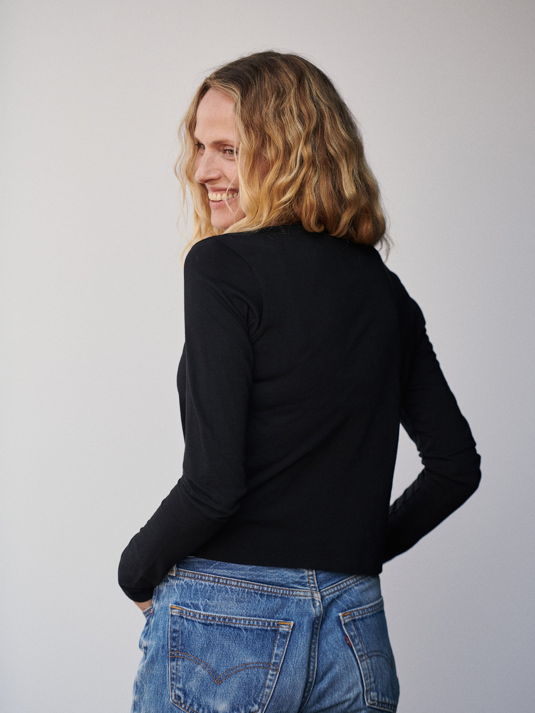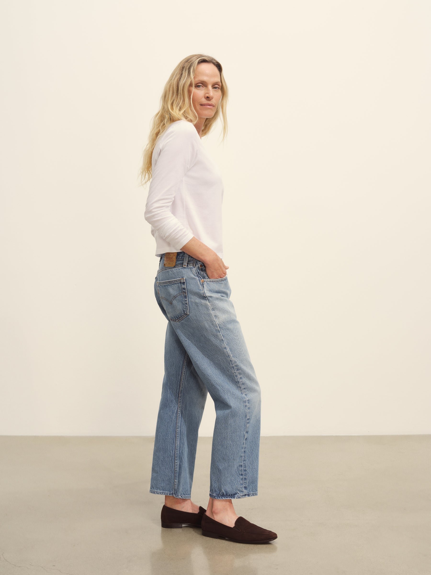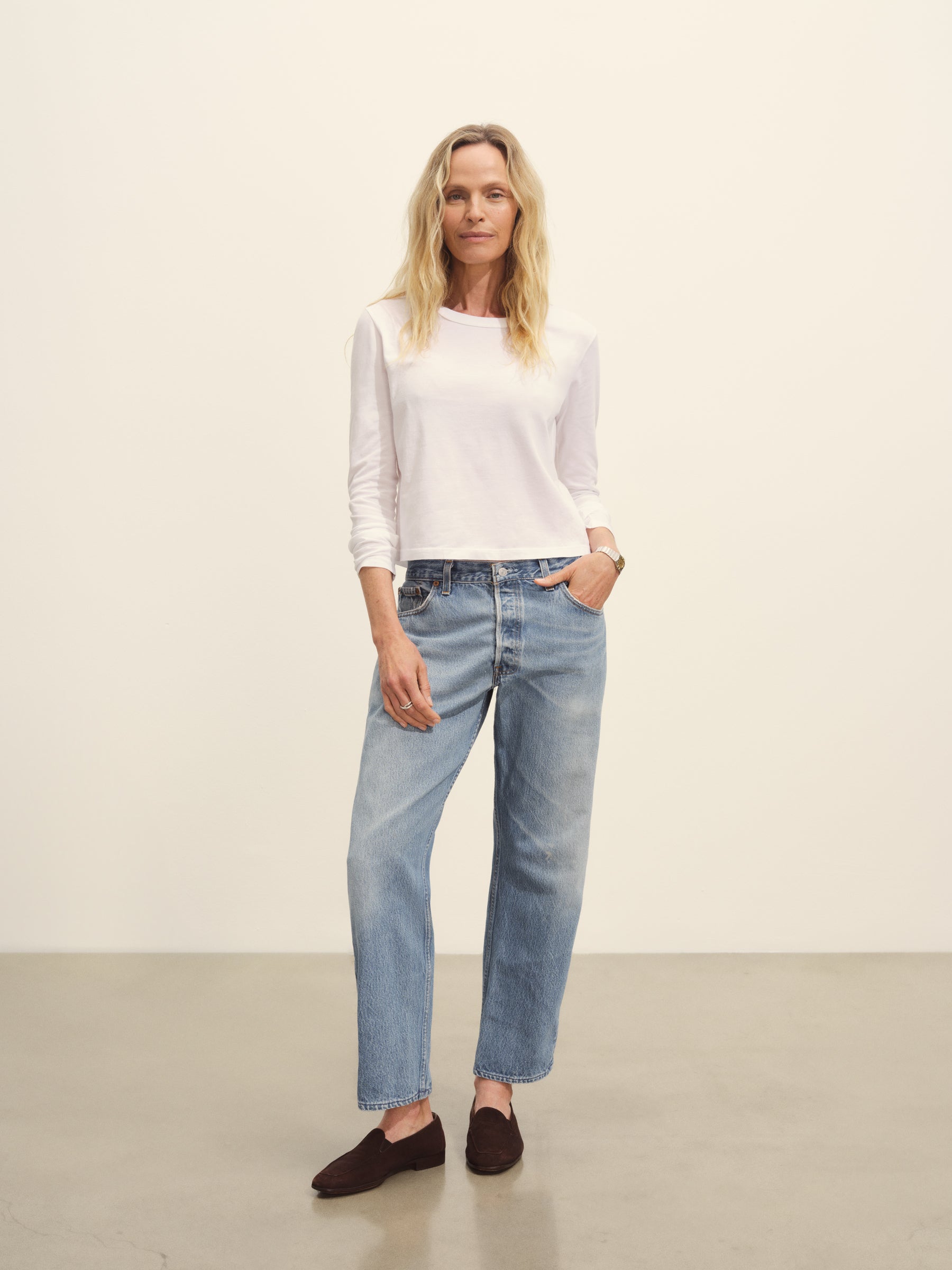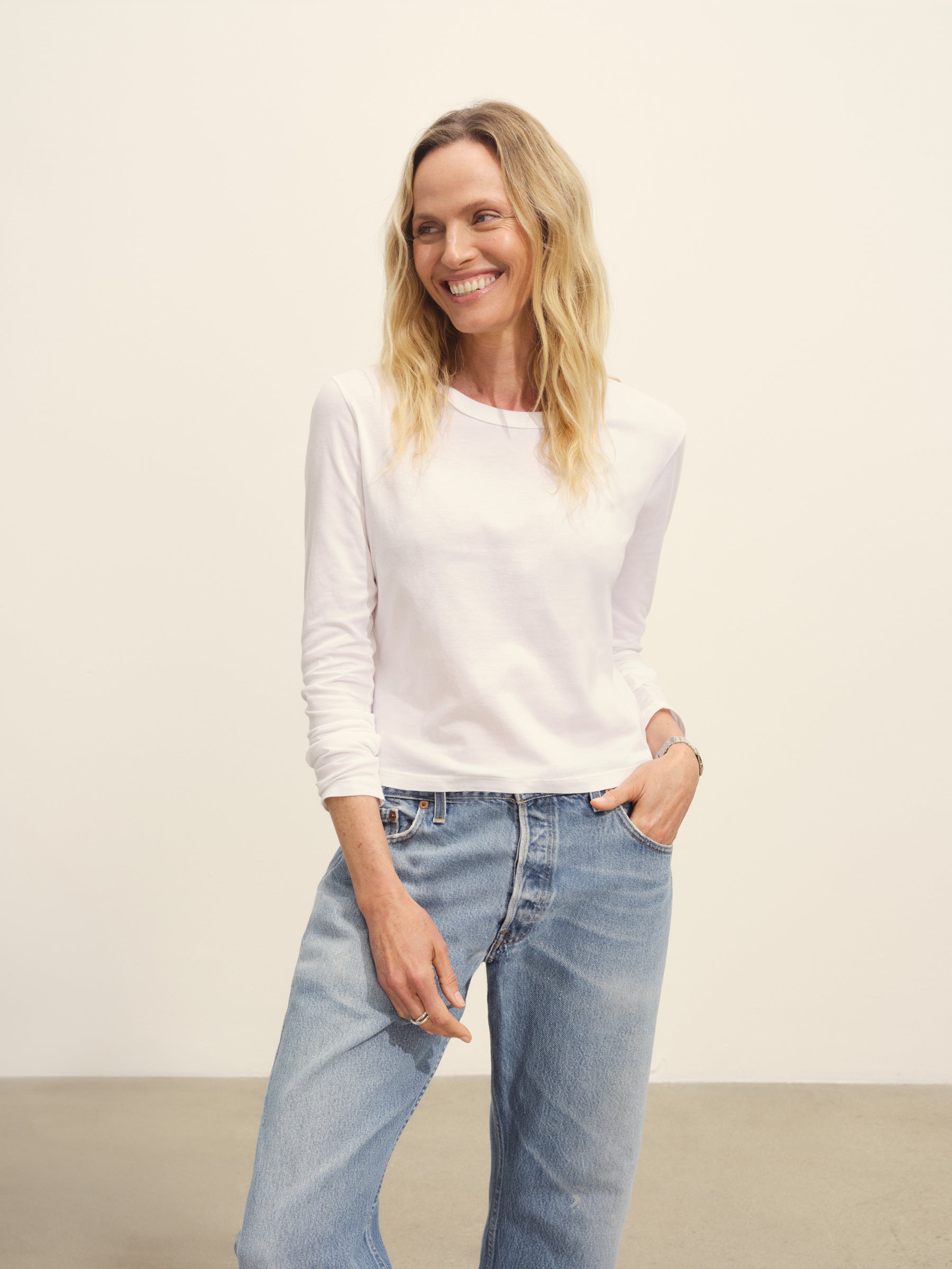 Boxy long-sleeve crewneck tee in 120 GSM jersey knit from long-staple Supima cotton.