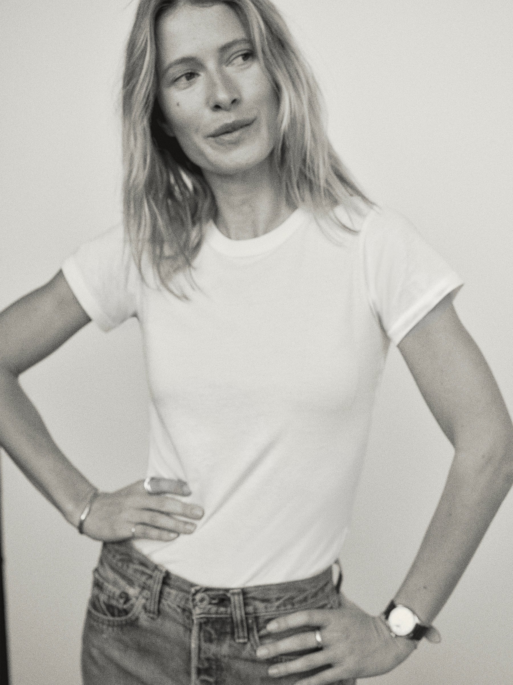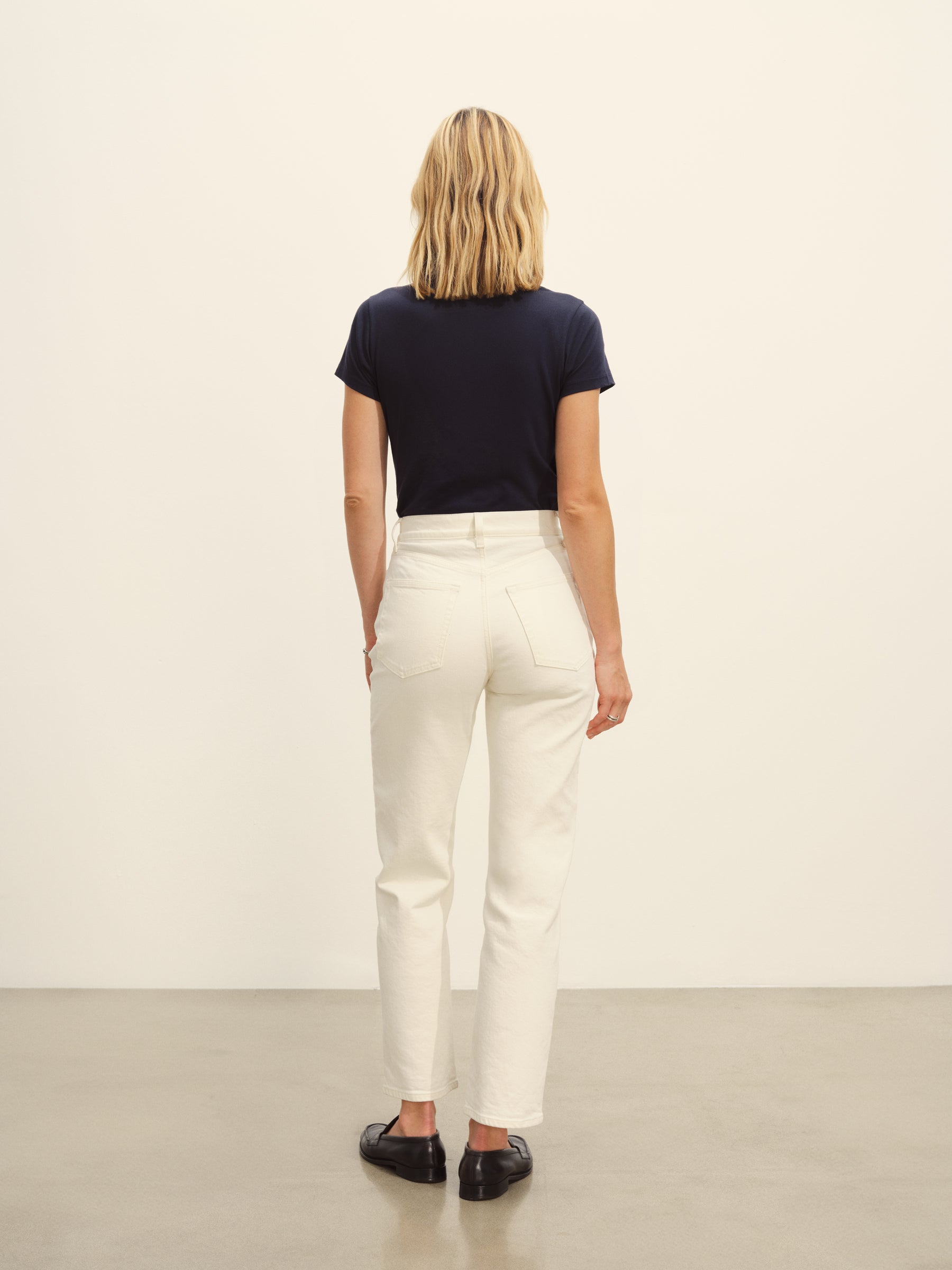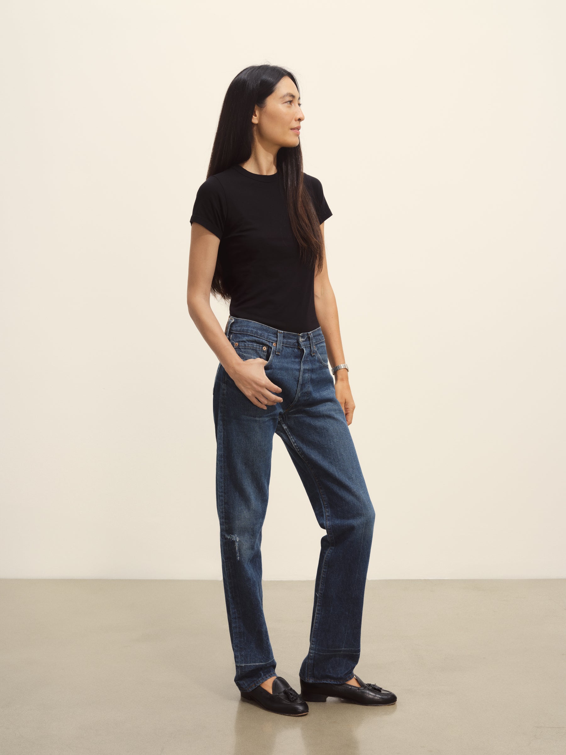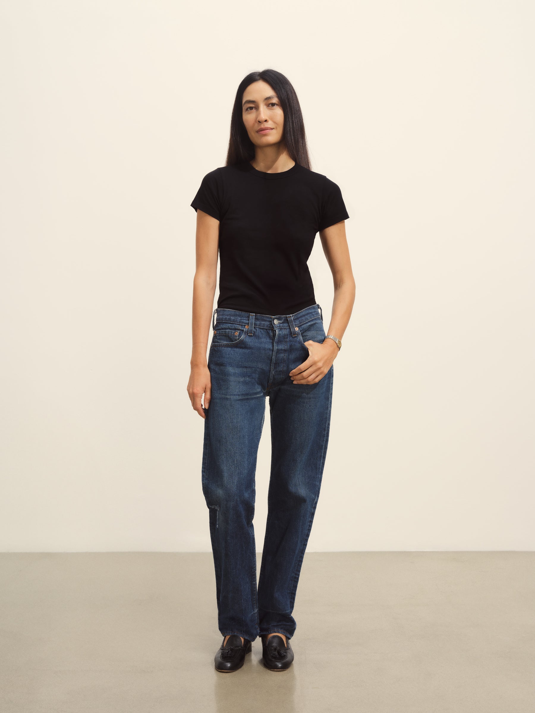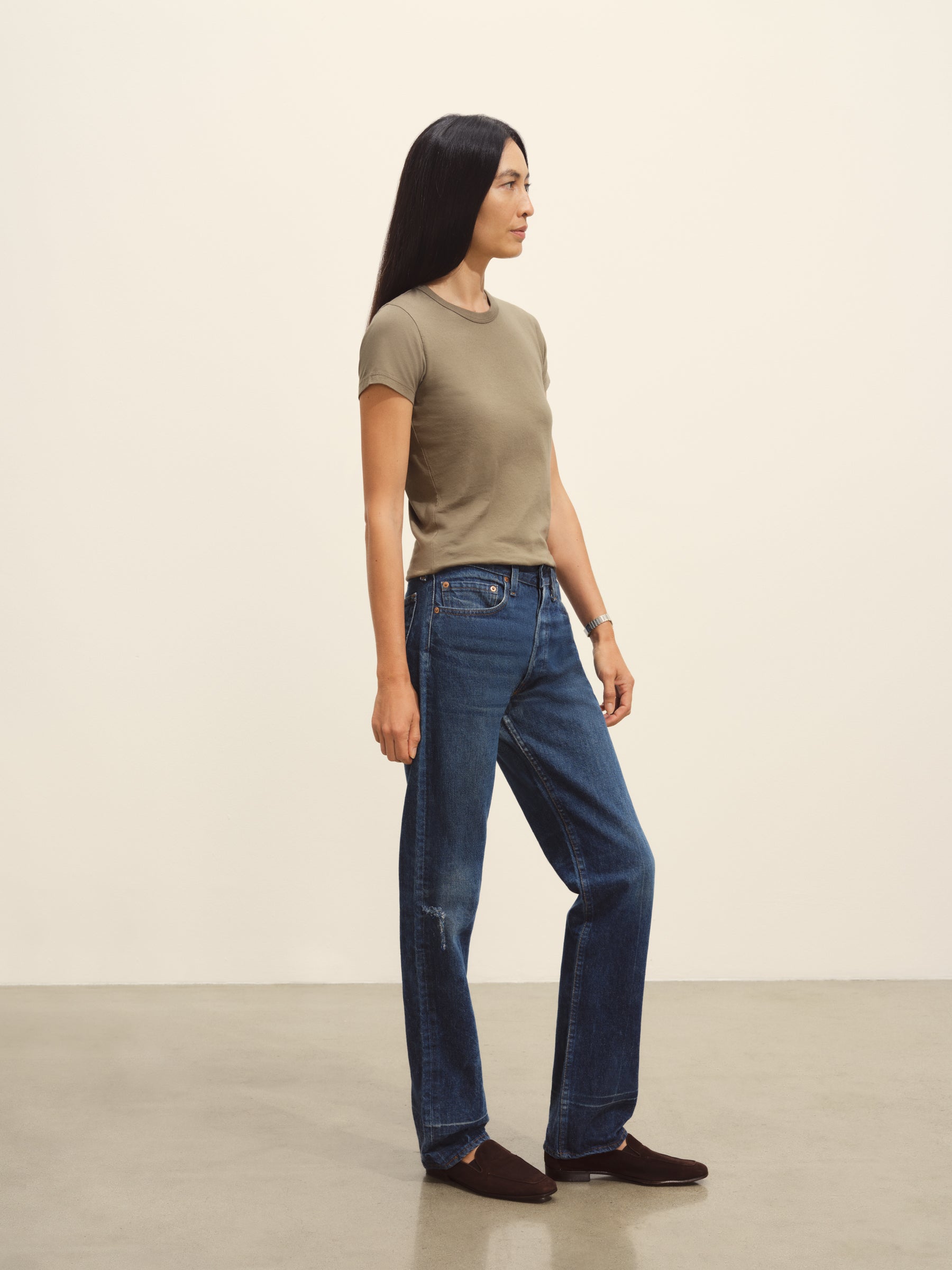 Slim fit short sleeve crewneck tee with a straight hem, cut from 120 GSM Supima cotton.