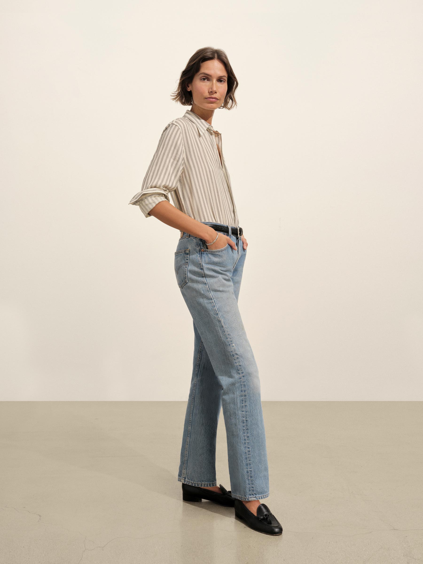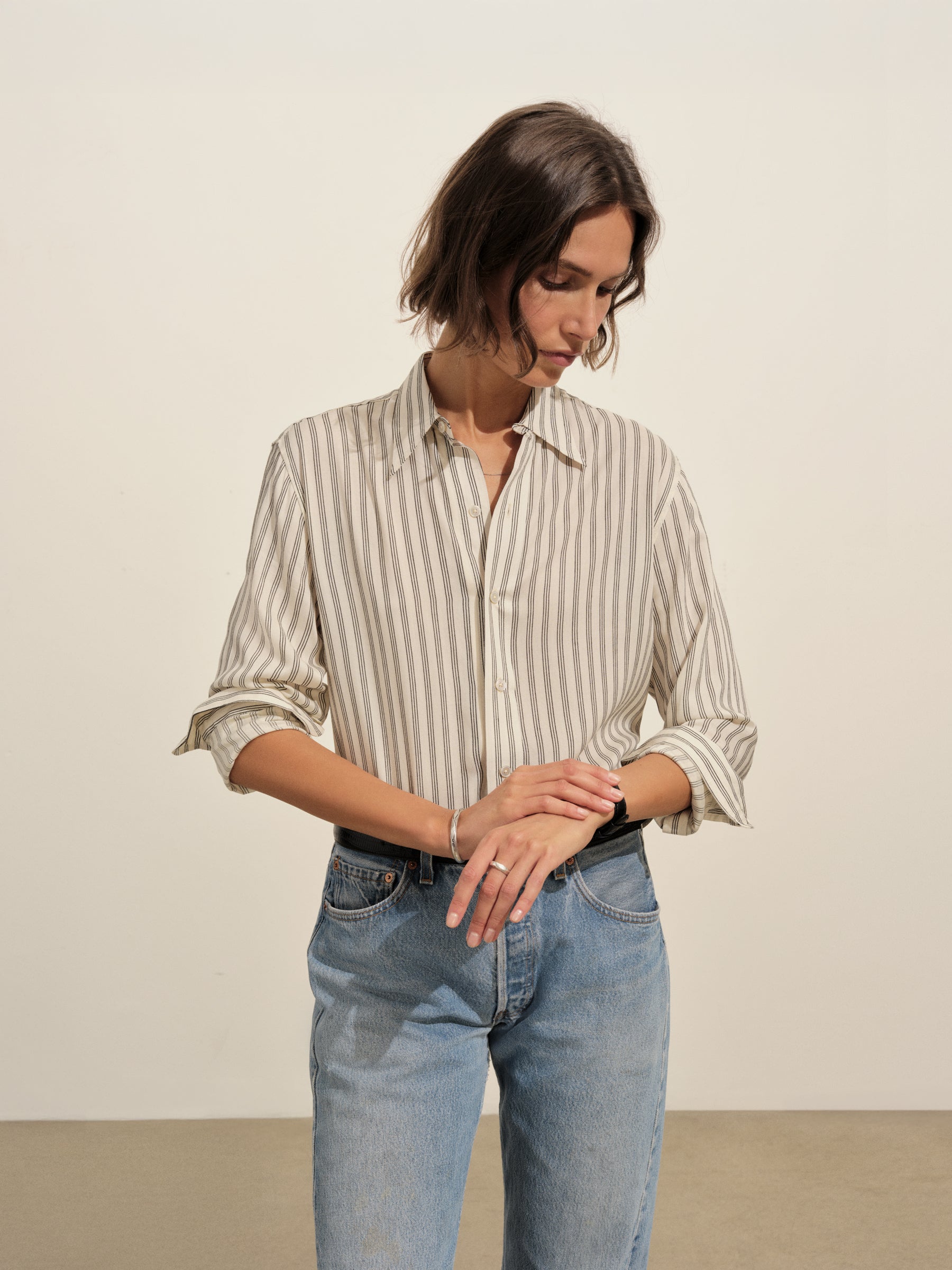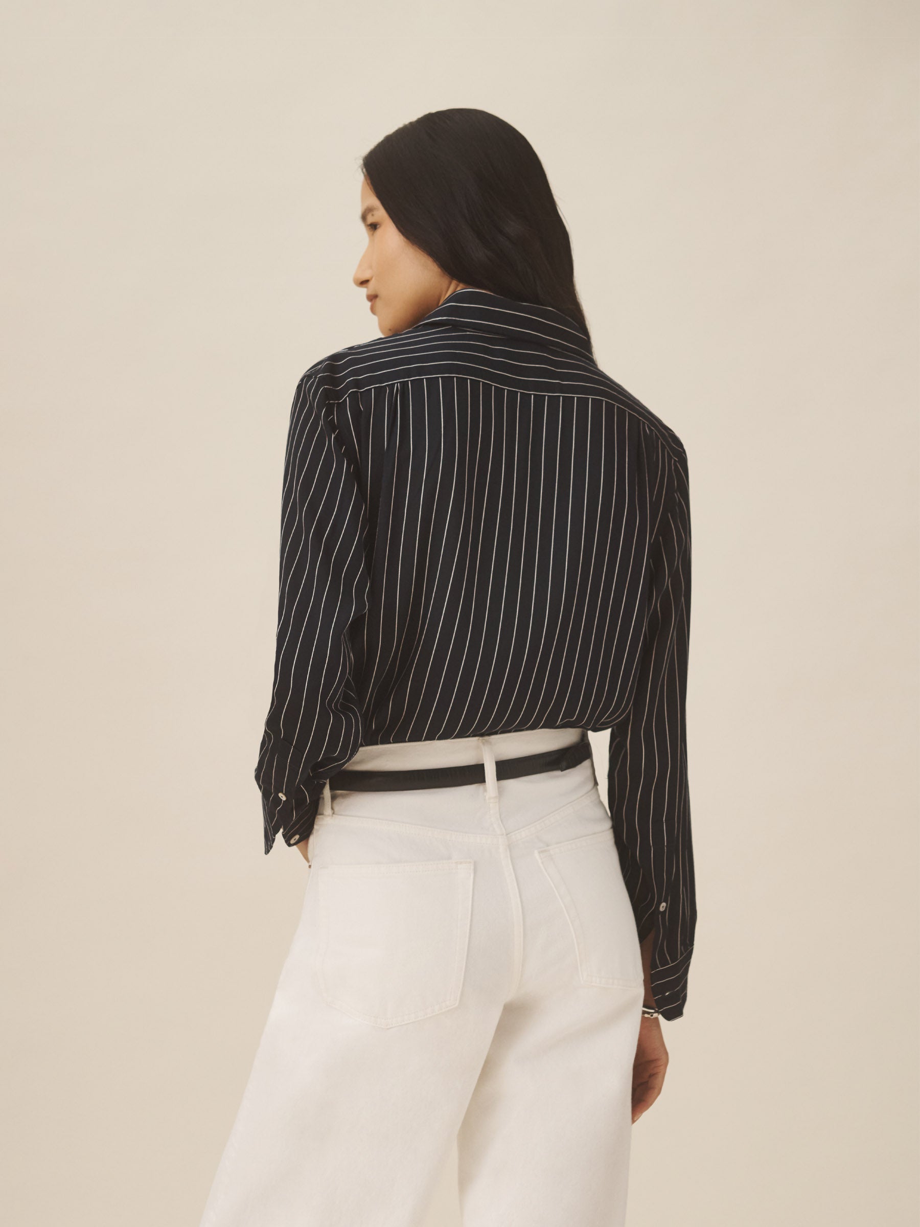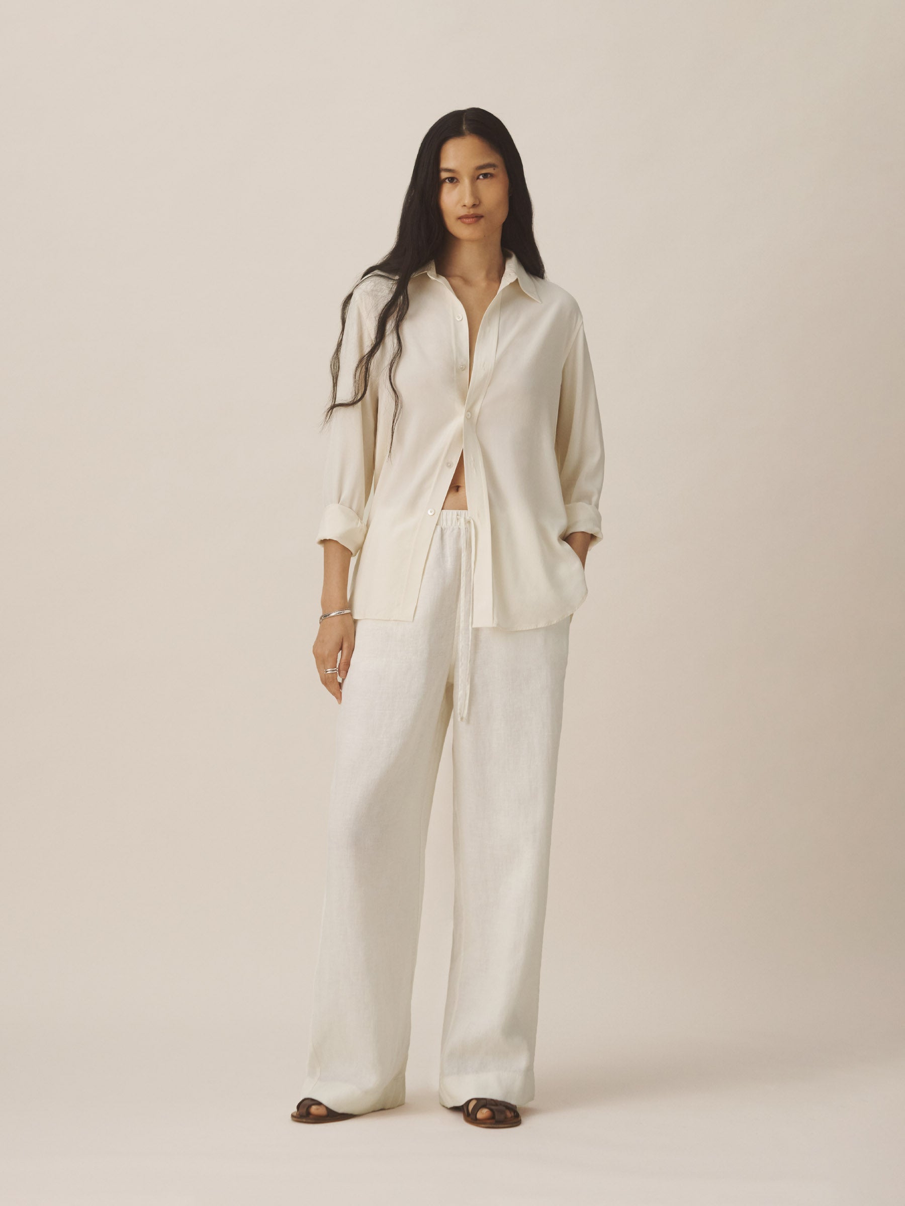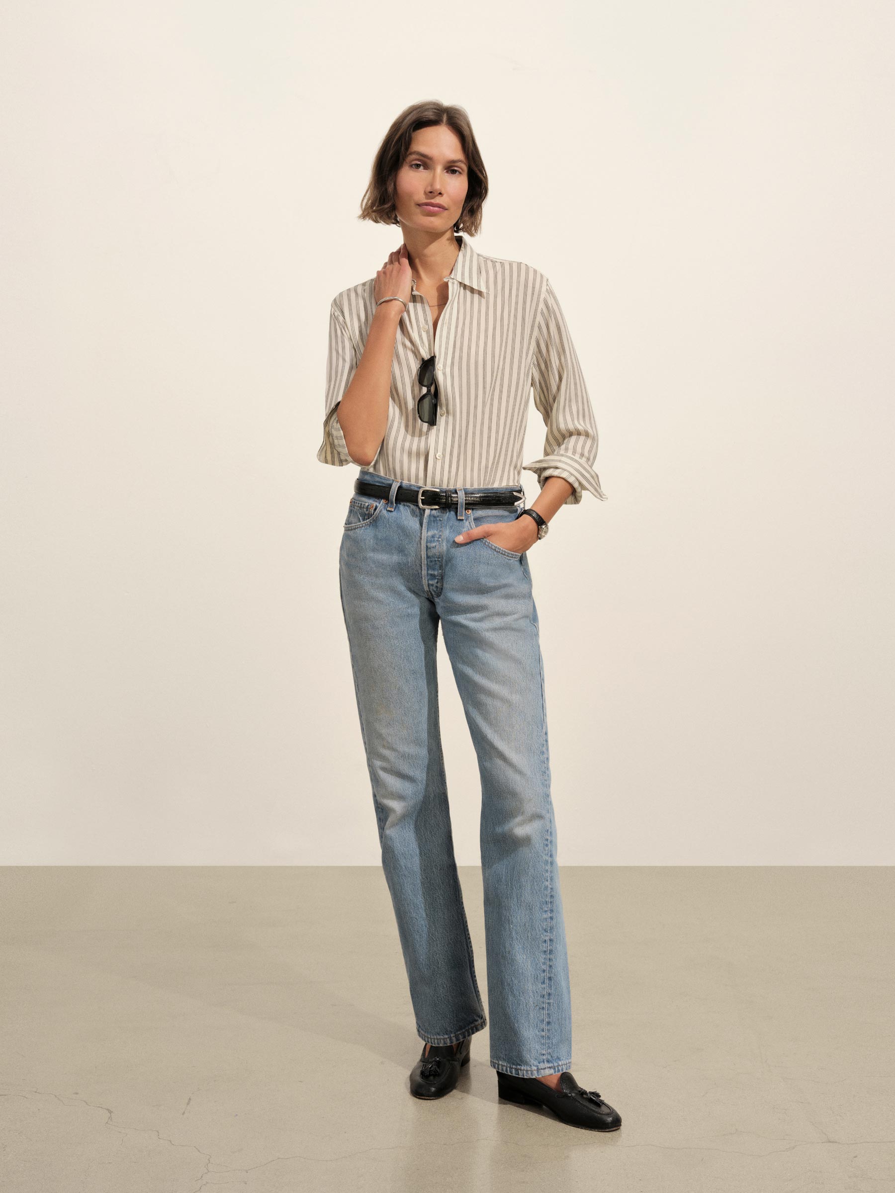 A relaxed-fit, button-down shirt in a silky rayon-jacquard weave.