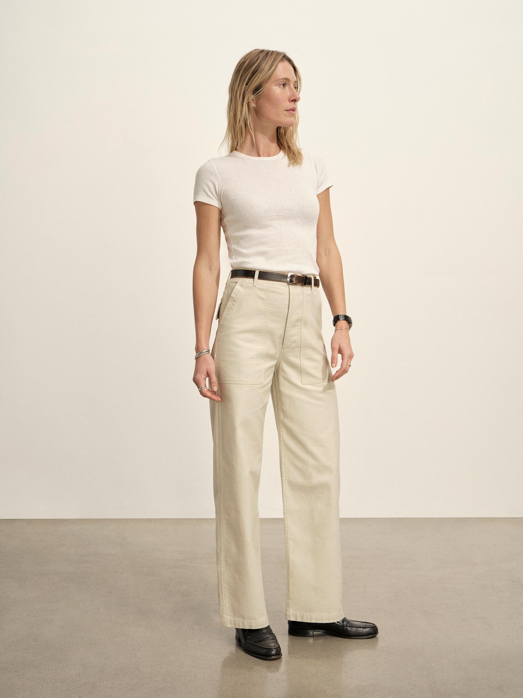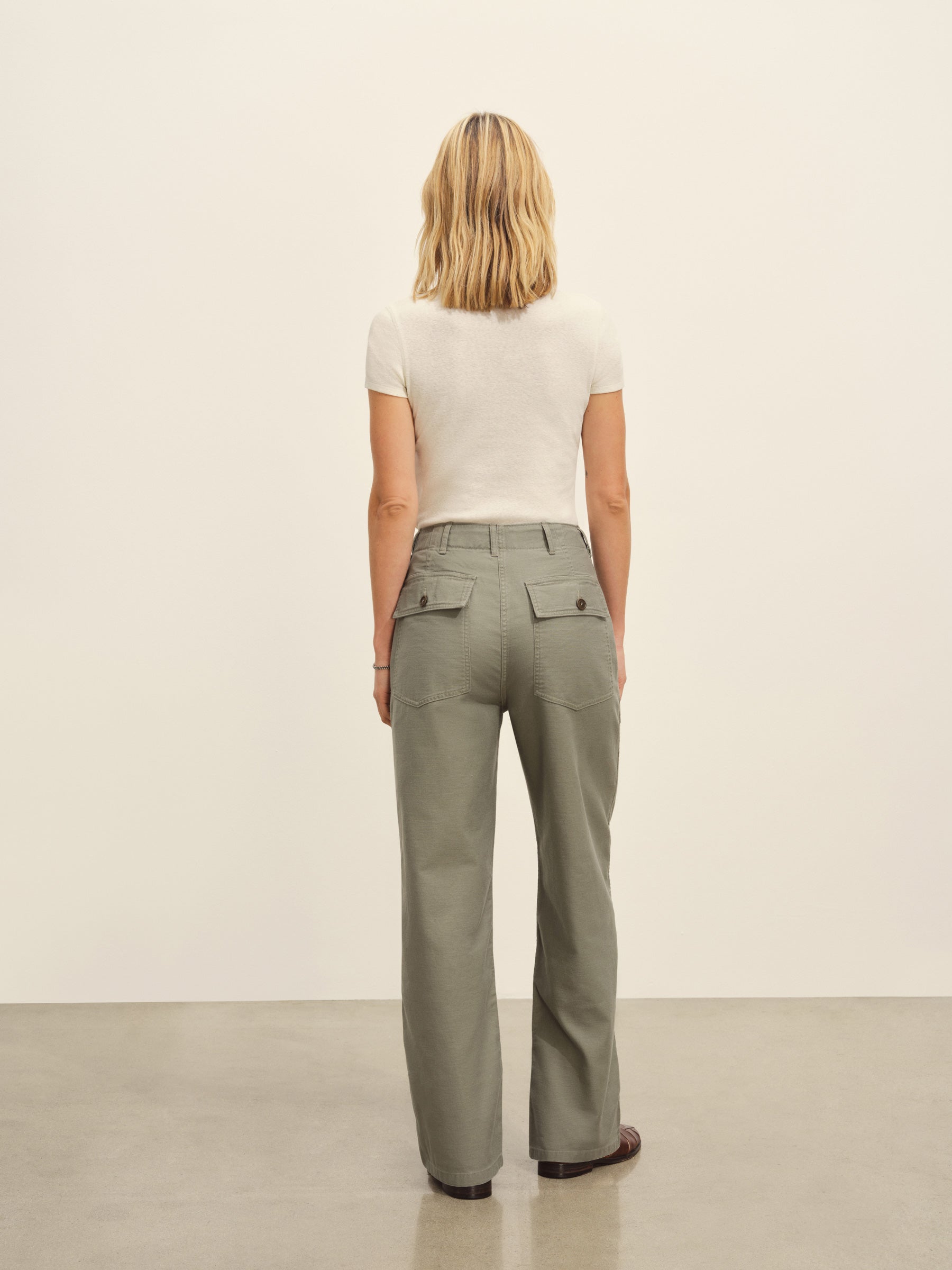Relaxed, high-waisted fatigue pant in soft, drapey twill.
