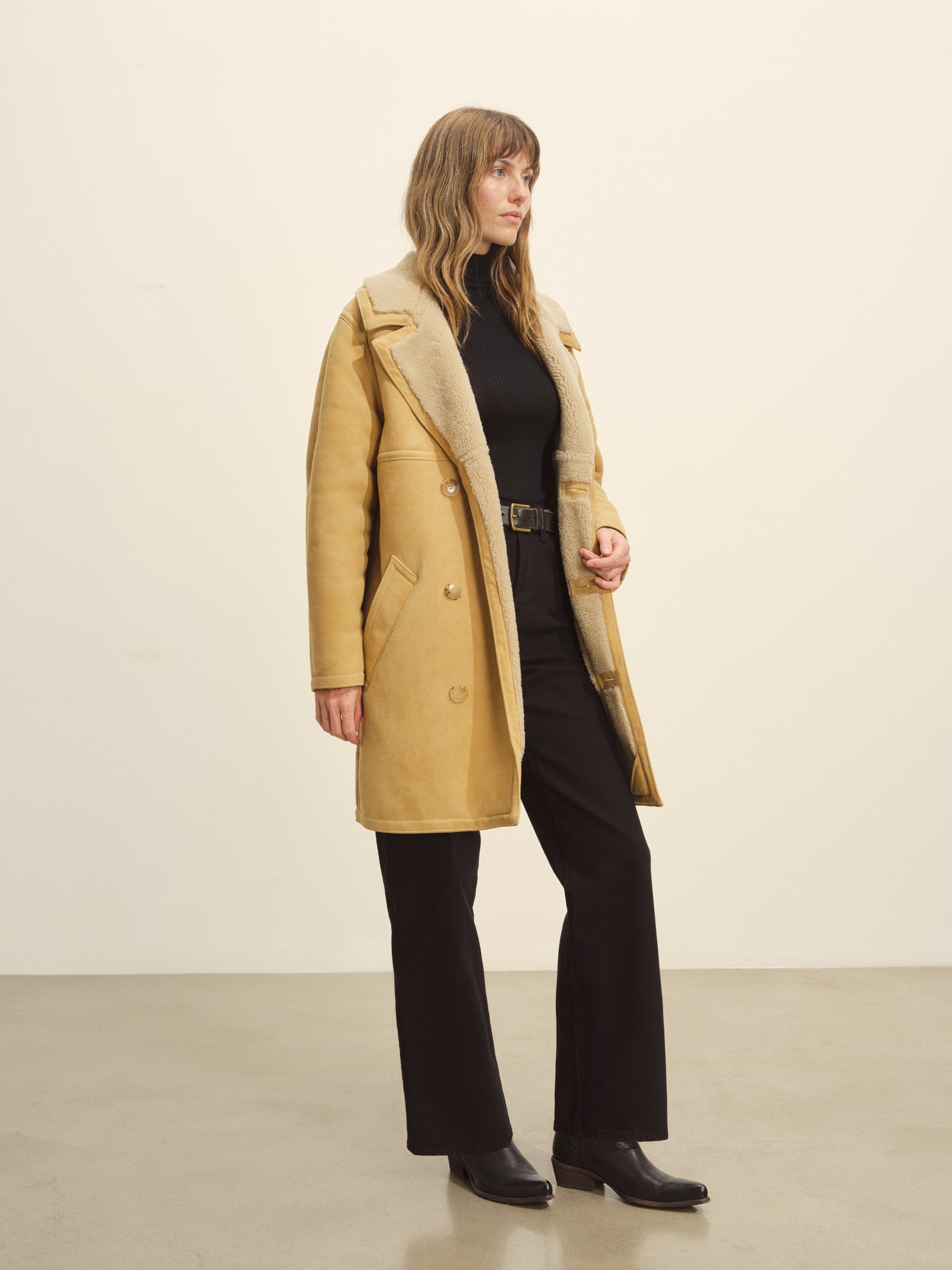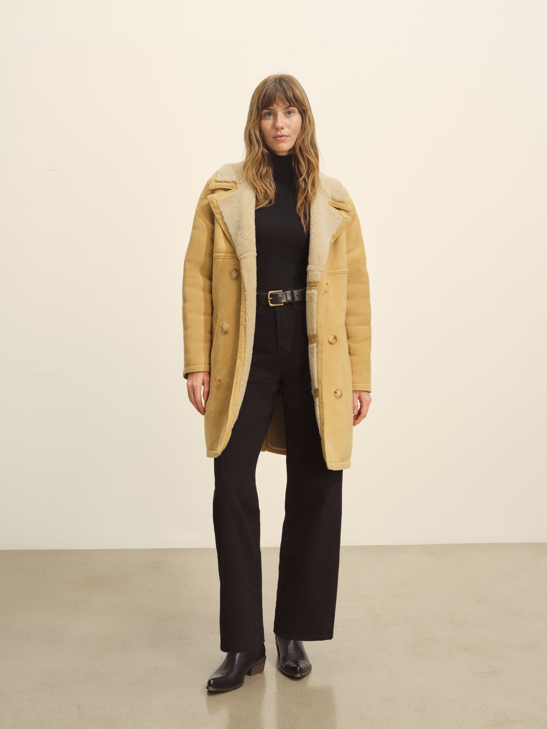 A heritage-inspired, exceptionally soft suede coat with plush shearling for added warmth and texture.