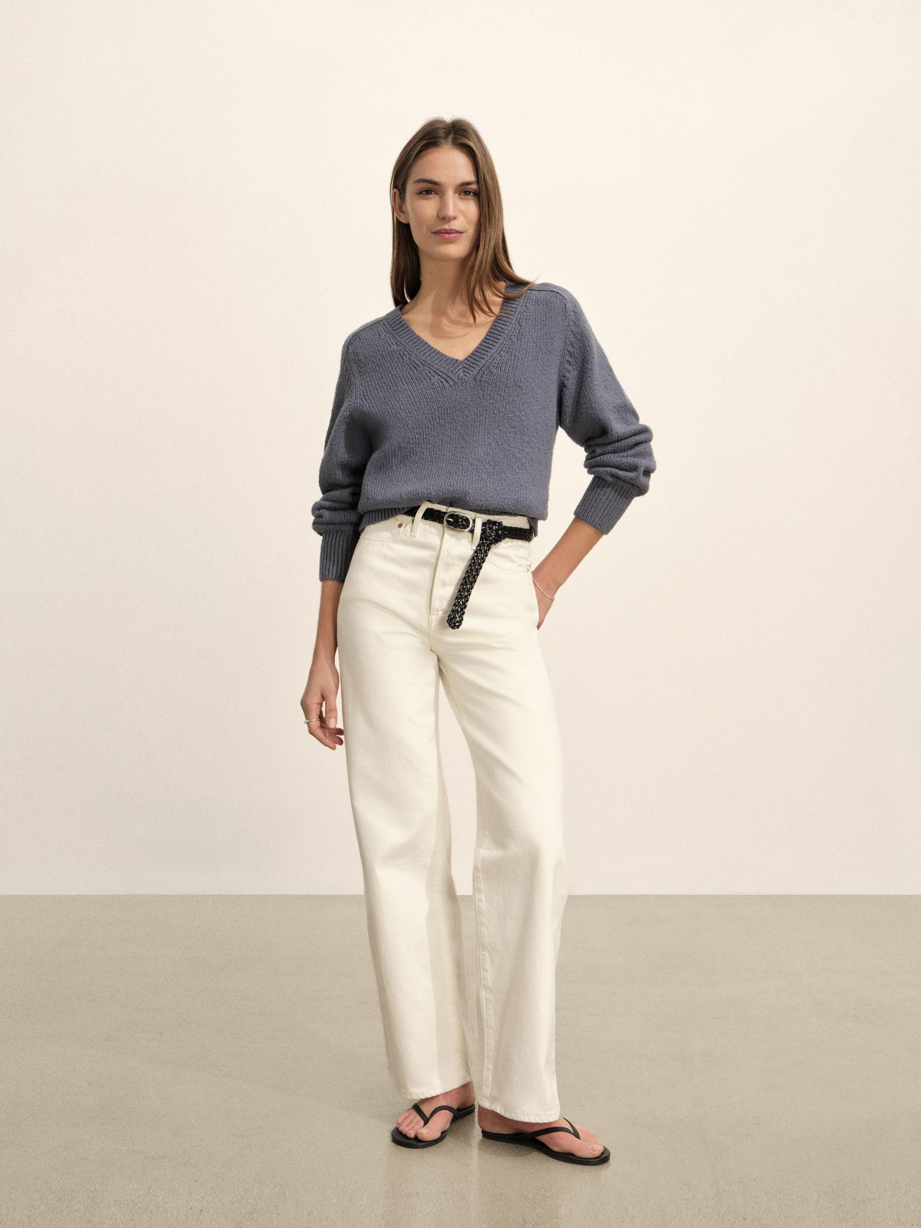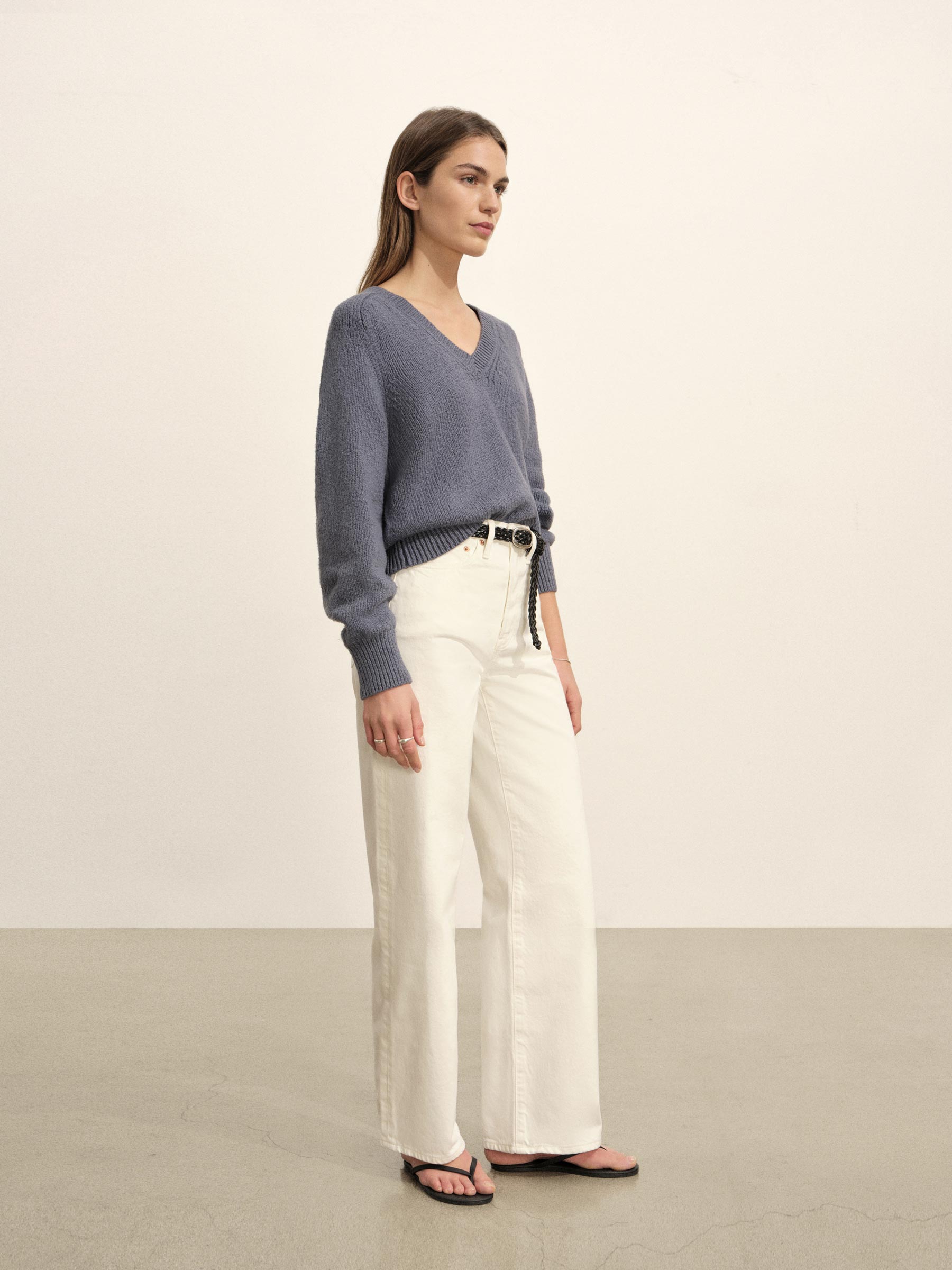 Relaxed, V-neck sweater made from a lofty 5 gauge cotton with a buttery-soft finish.