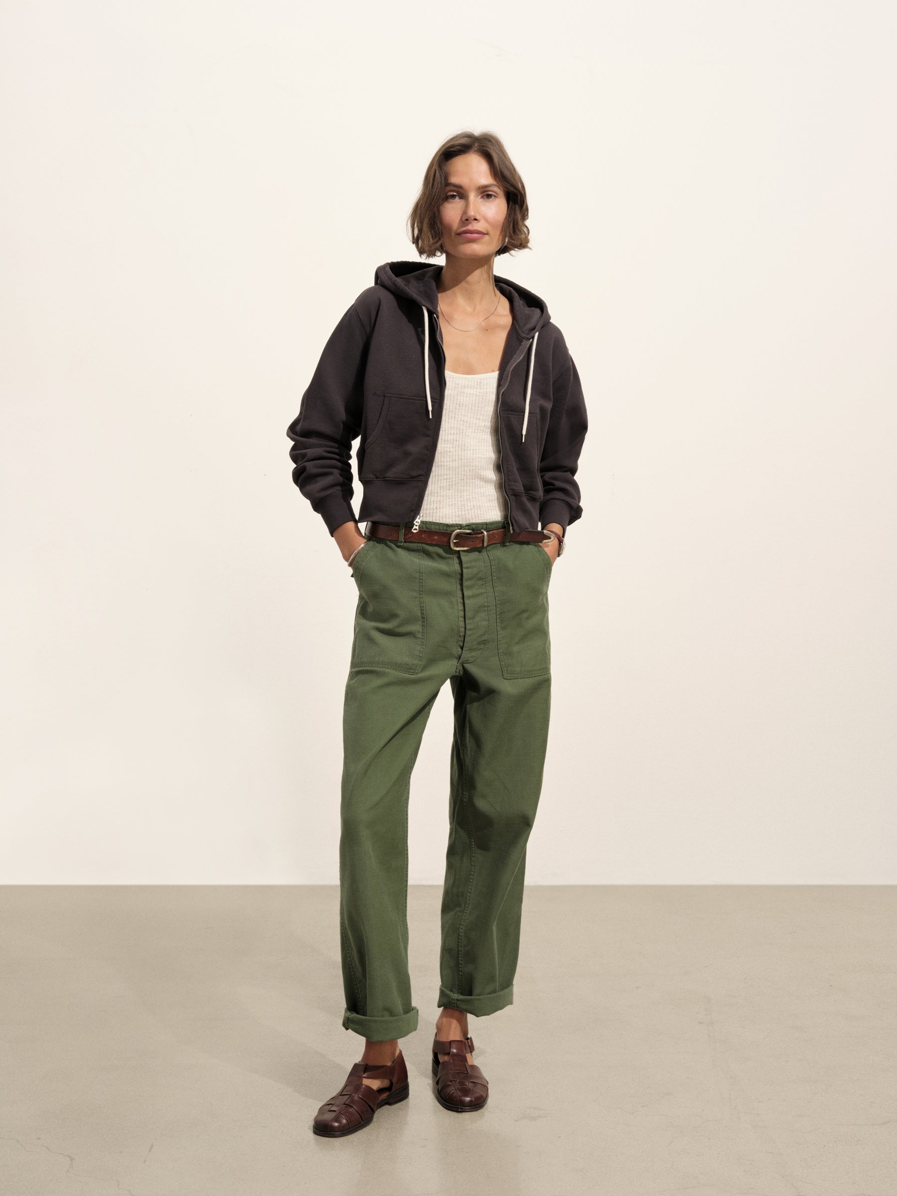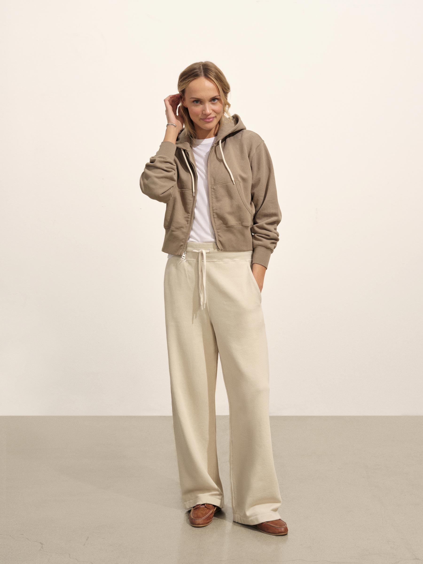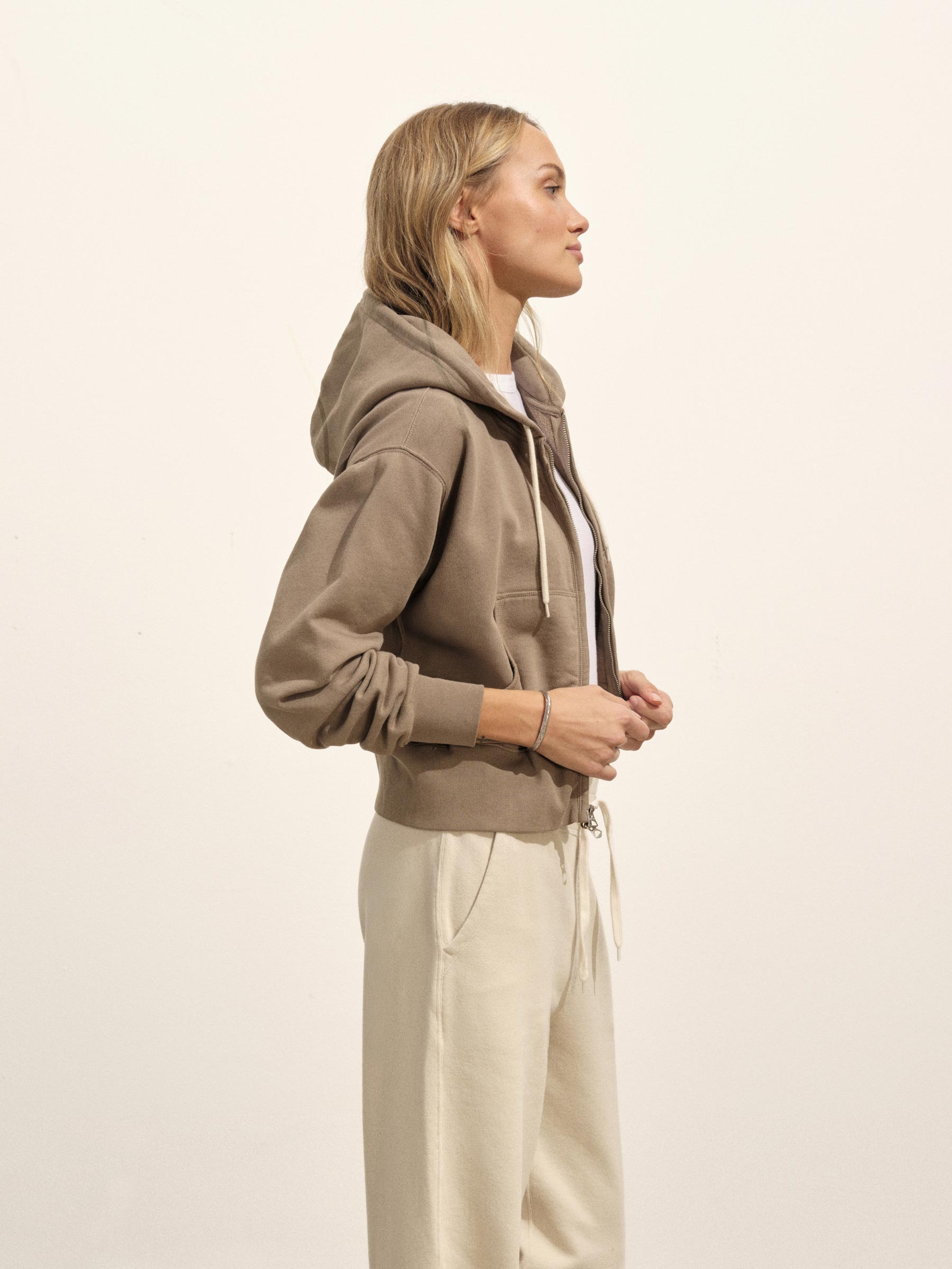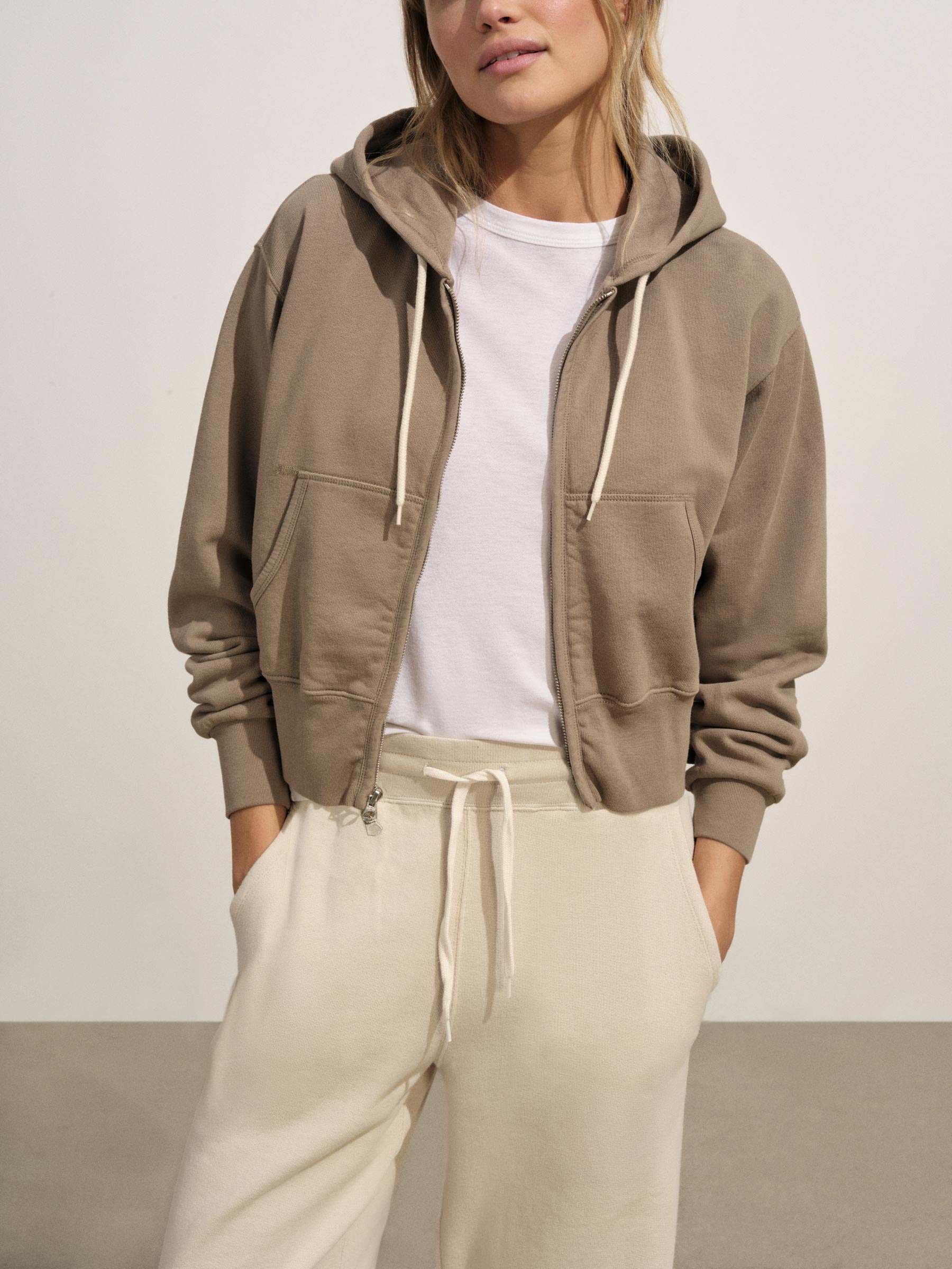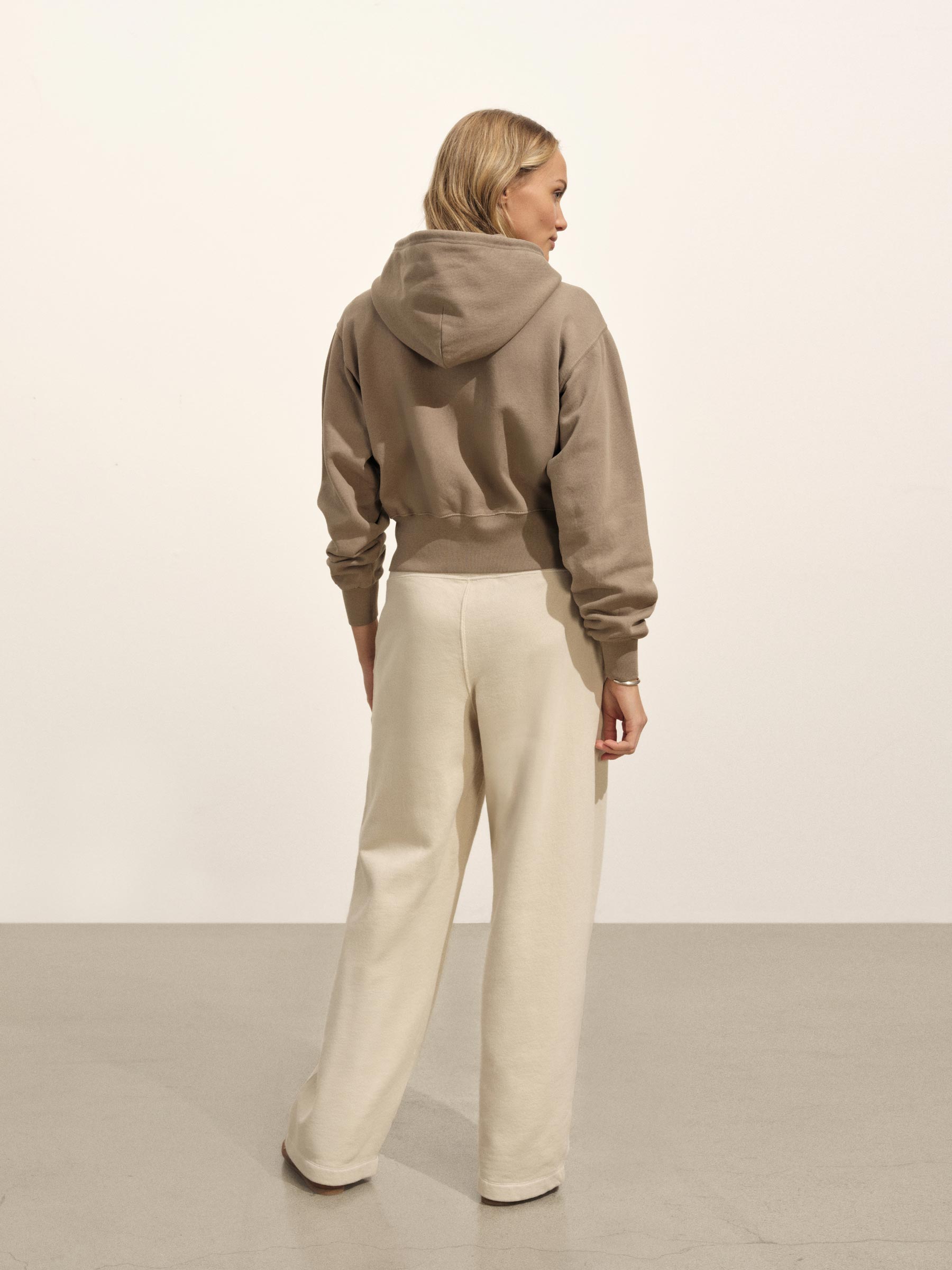 A easy fit cropped hoodie in looped French terry that’s been brushed for a soft, luxurious feel.