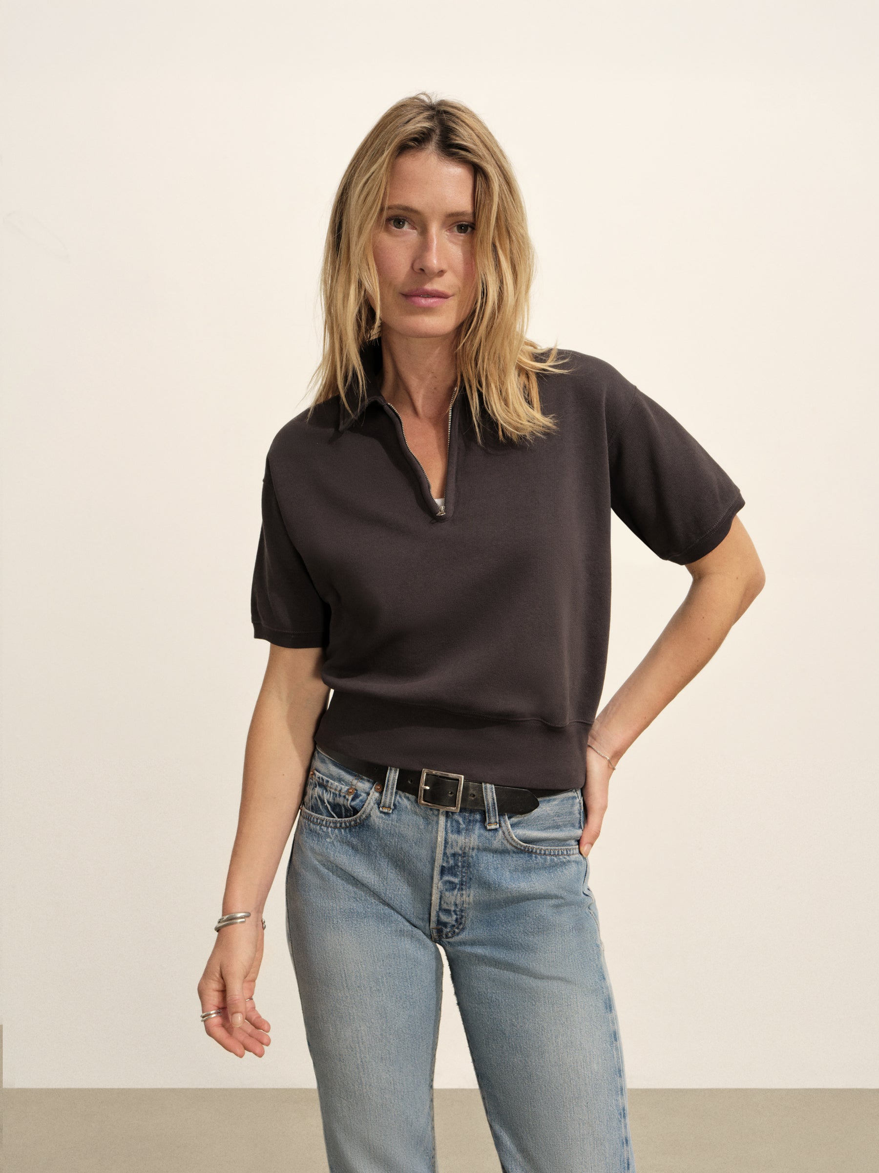 Relaxed, short-sleeve quarter-zip sweatshirt made from a soft cotton French terry.